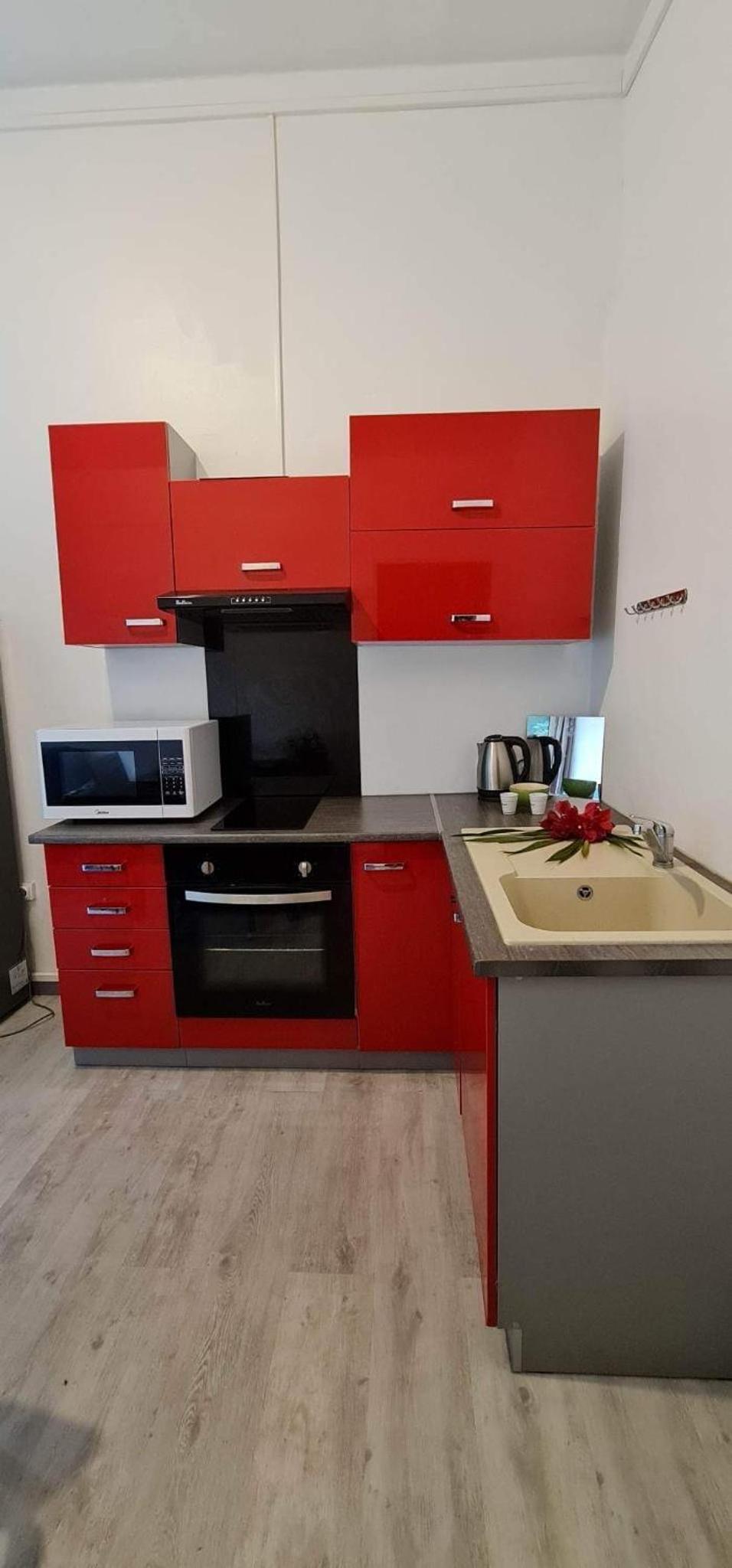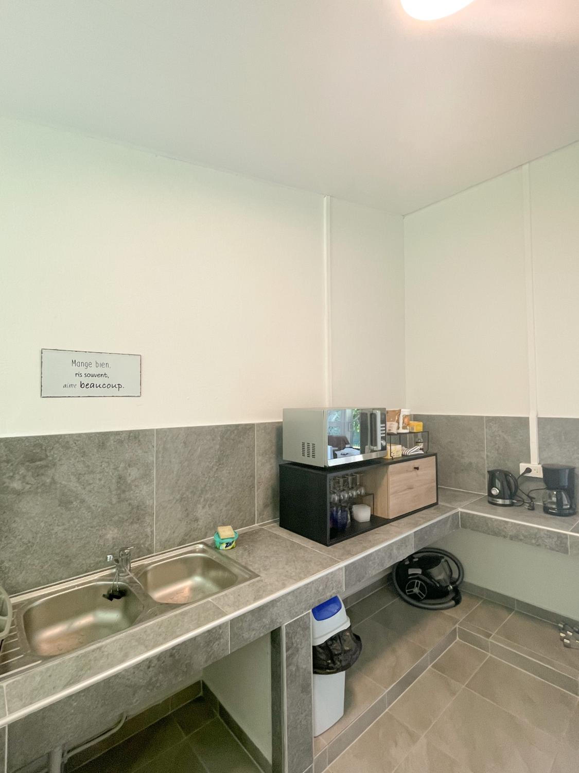 La proximité de l’aéroport. Cuisine équipée collective.