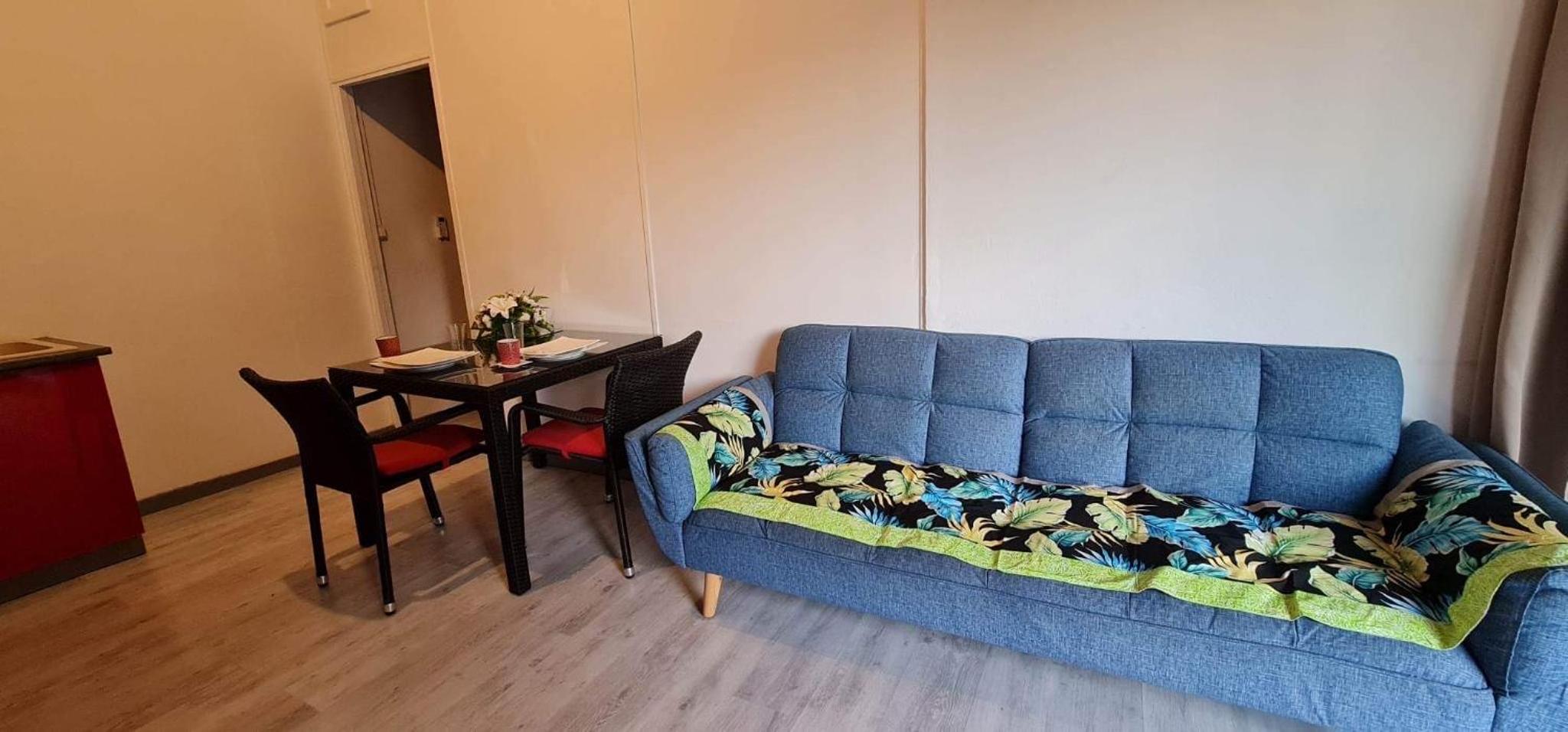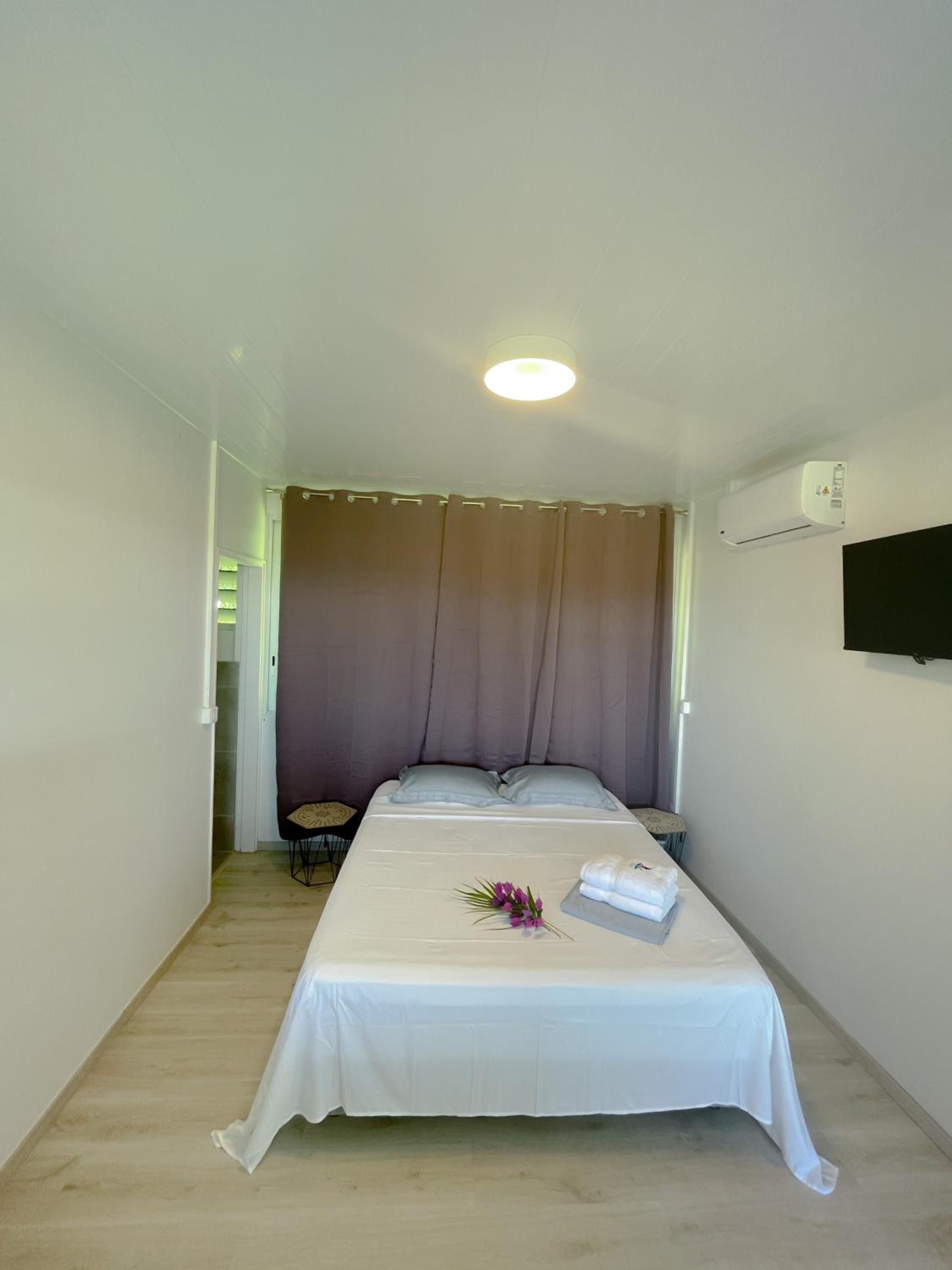 Experience breathtaking sea views and comfortable family accommodation at Temana Airport Faa'a, Tahiti. The air-conditioned units with terraces offer a fully equipped kitchen, flat-screen TV, and private bathroom for a relaxing stay.