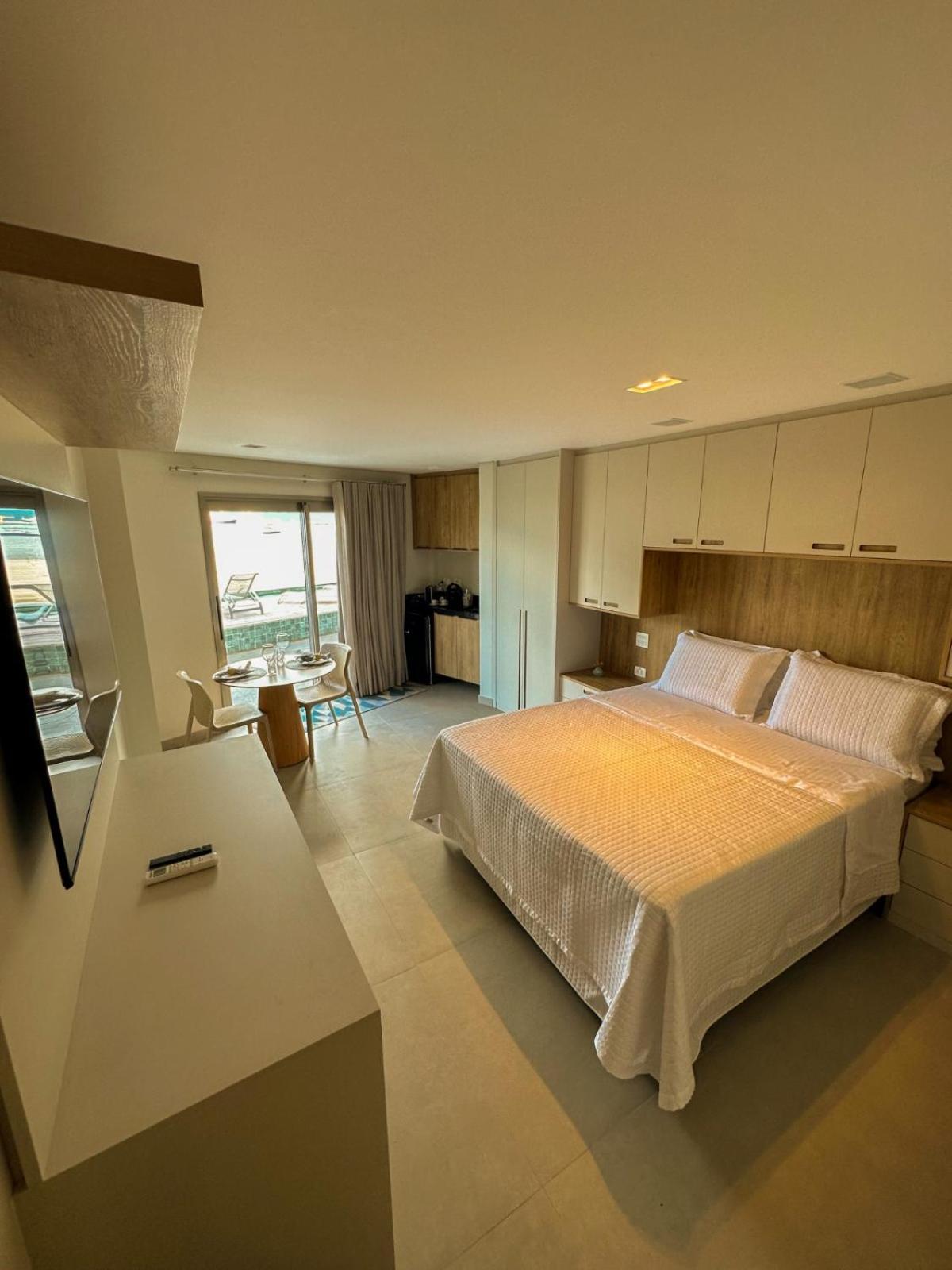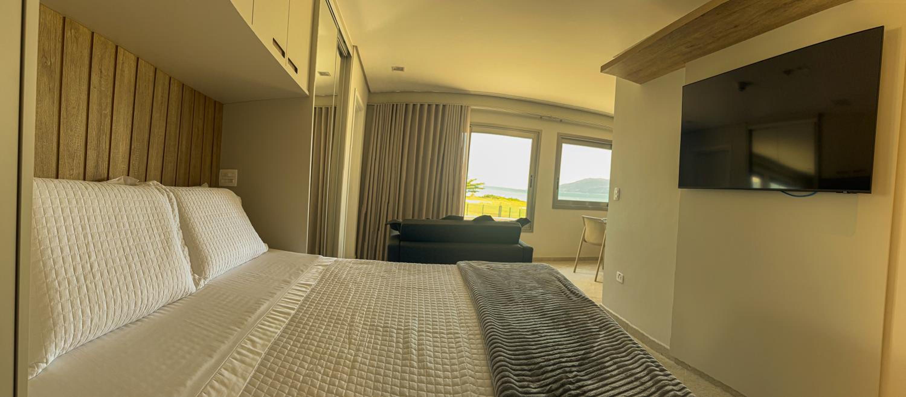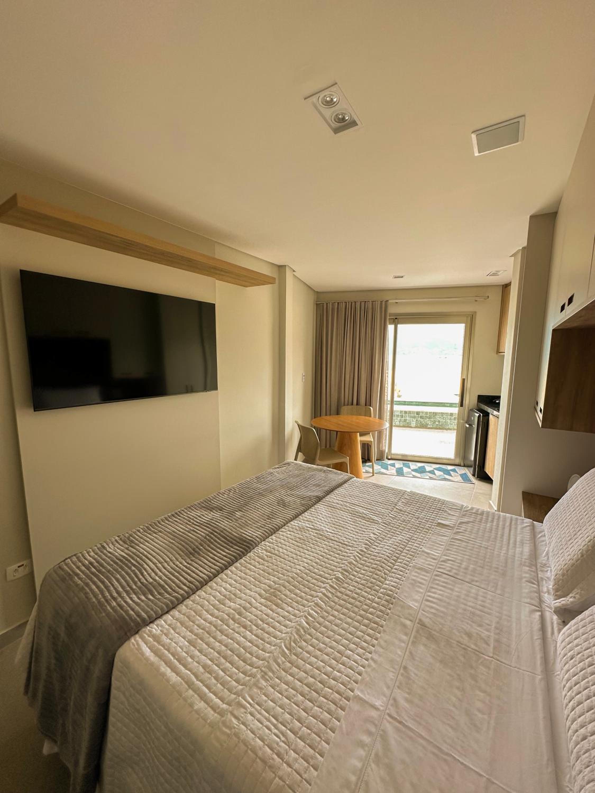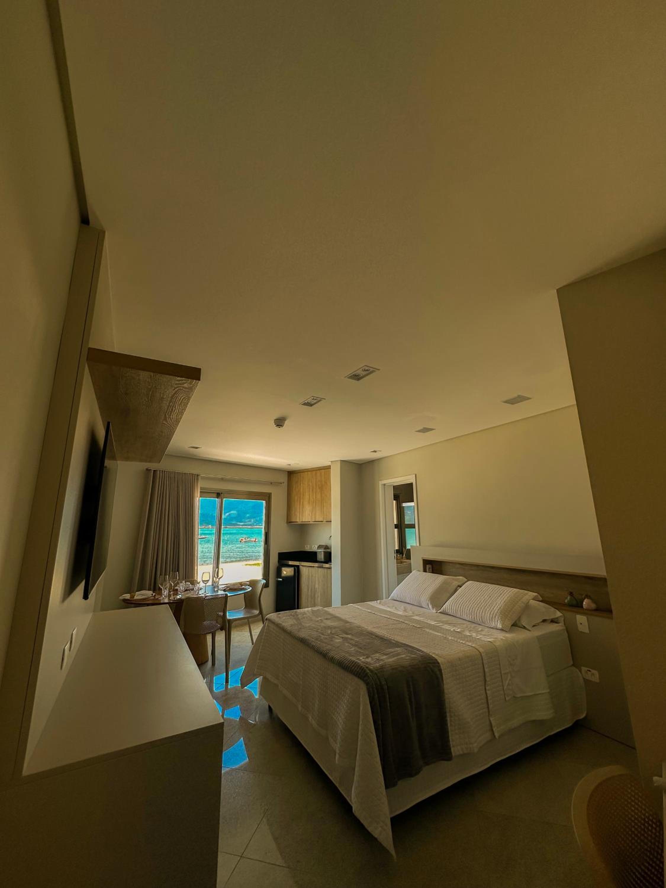Excelente acomodação, mobília e equipamentos ótimos, como ar condicionado, cafeteira no quarto, frigo bar, pia e TV Smart. O toalheiro aquecido no banheiro, um diferencial. Amei o acesso fácil a faixa de areia em frente a hospedagem. O verdadeiro pé na areia !