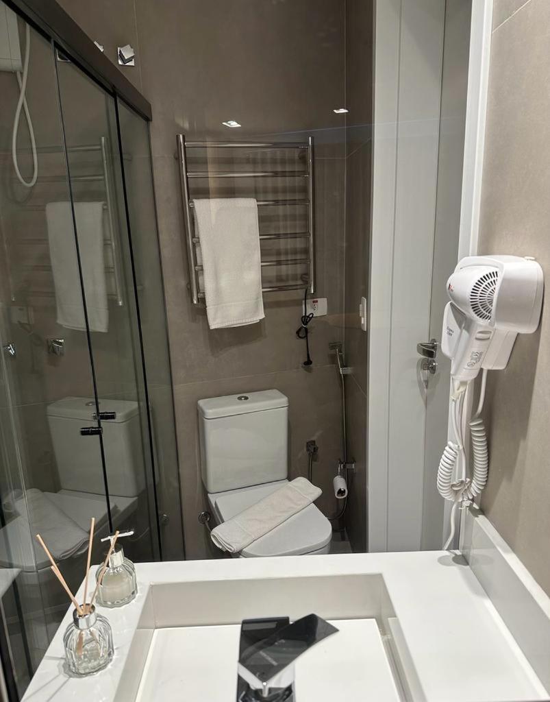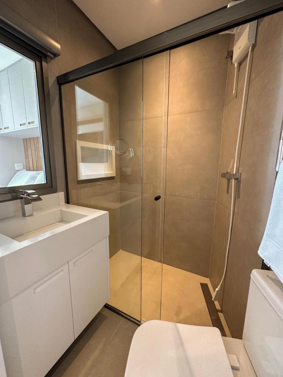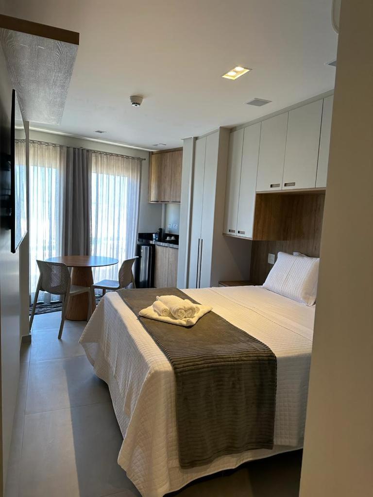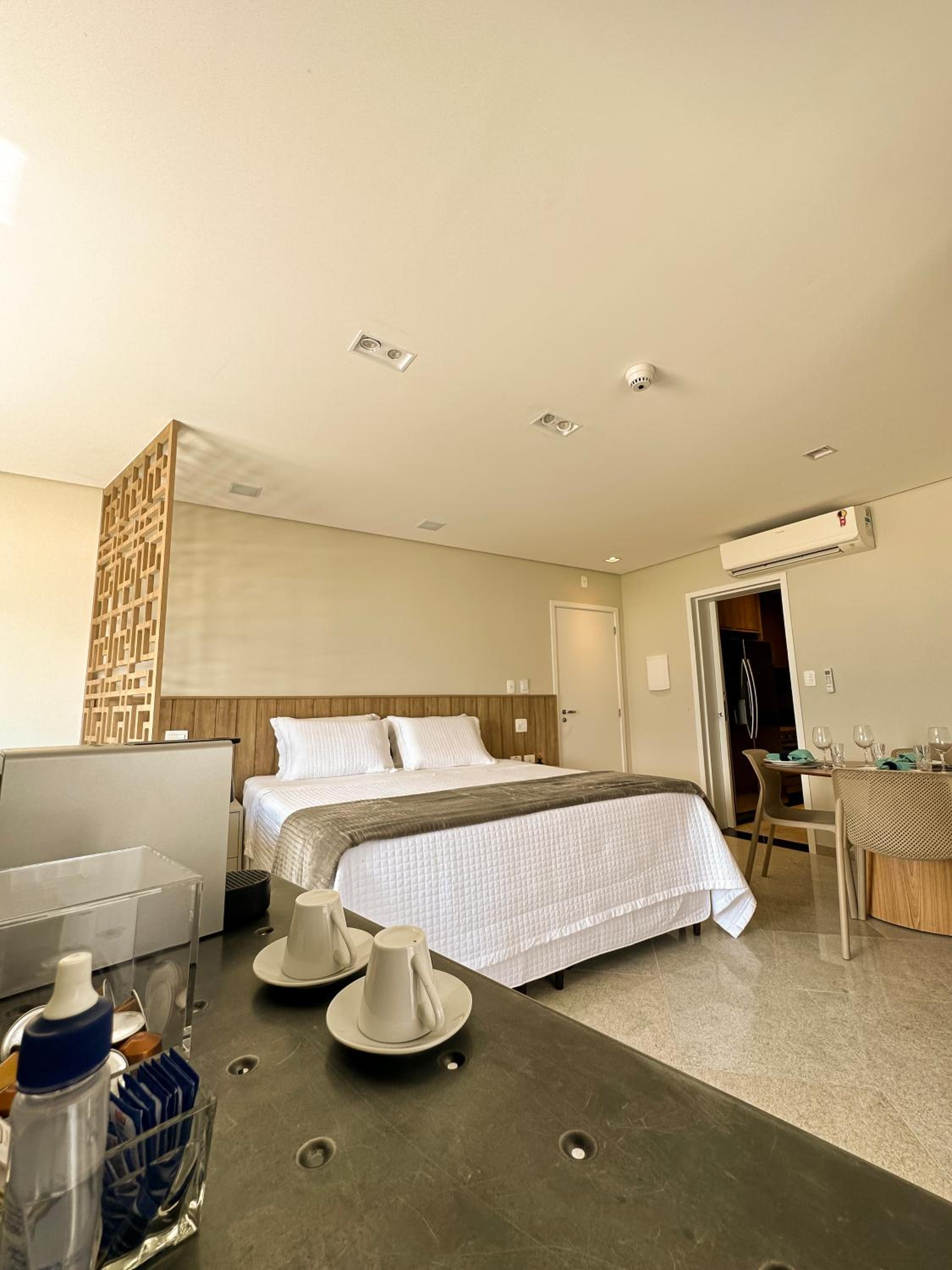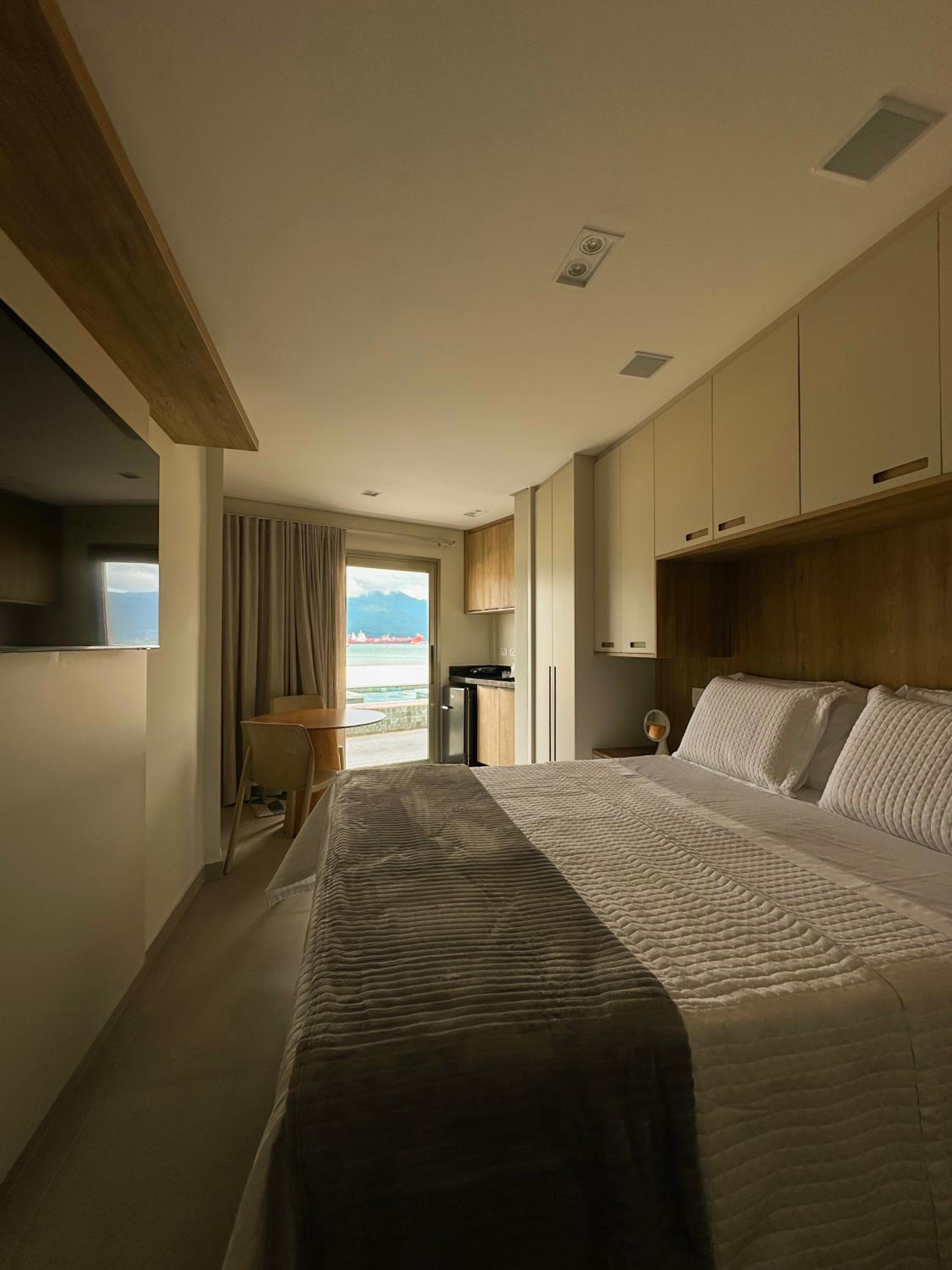 Excelente acomodação, mobília e equipamentos ótimos, como ar condicionado, cafeteira no quarto, frigo bar, pia e TV Smart. O toalheiro aquecido no banheiro, um diferencial. Amei o acesso fácil a faixa de areia em frente a hospedagem. O verdadeiro pé na areia !
