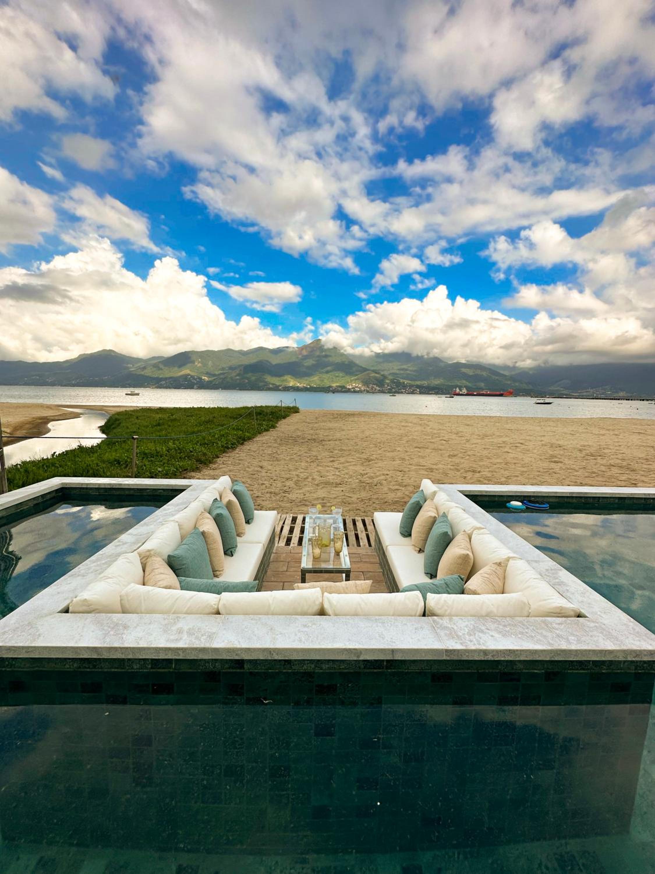 Piscina de frente pro mar deliciosa.