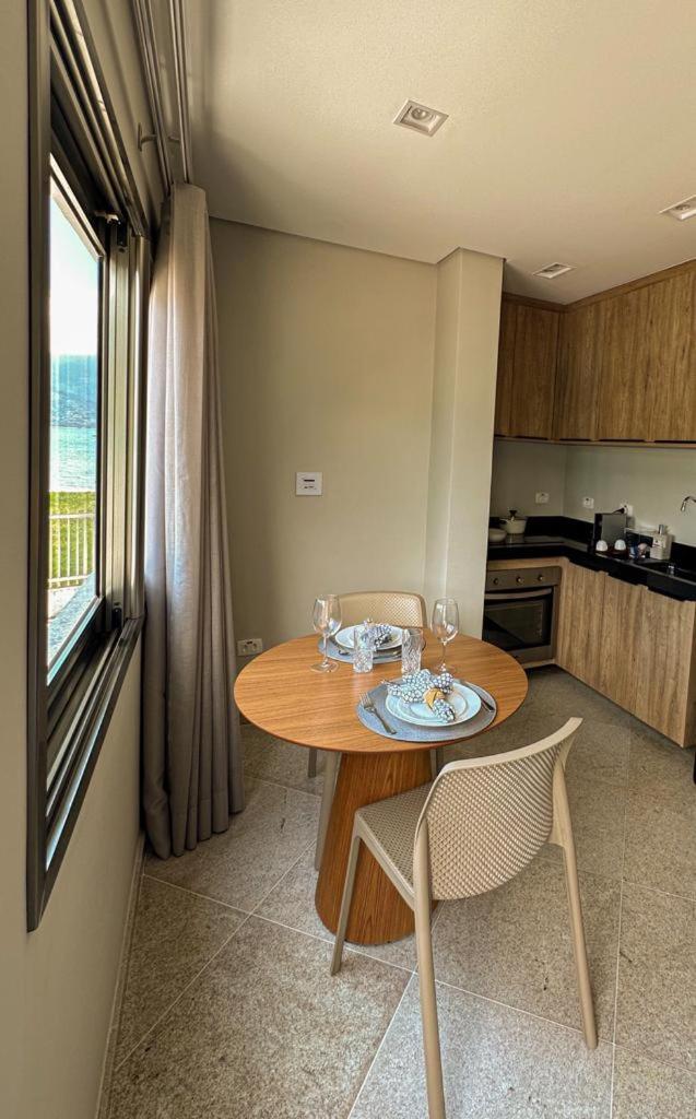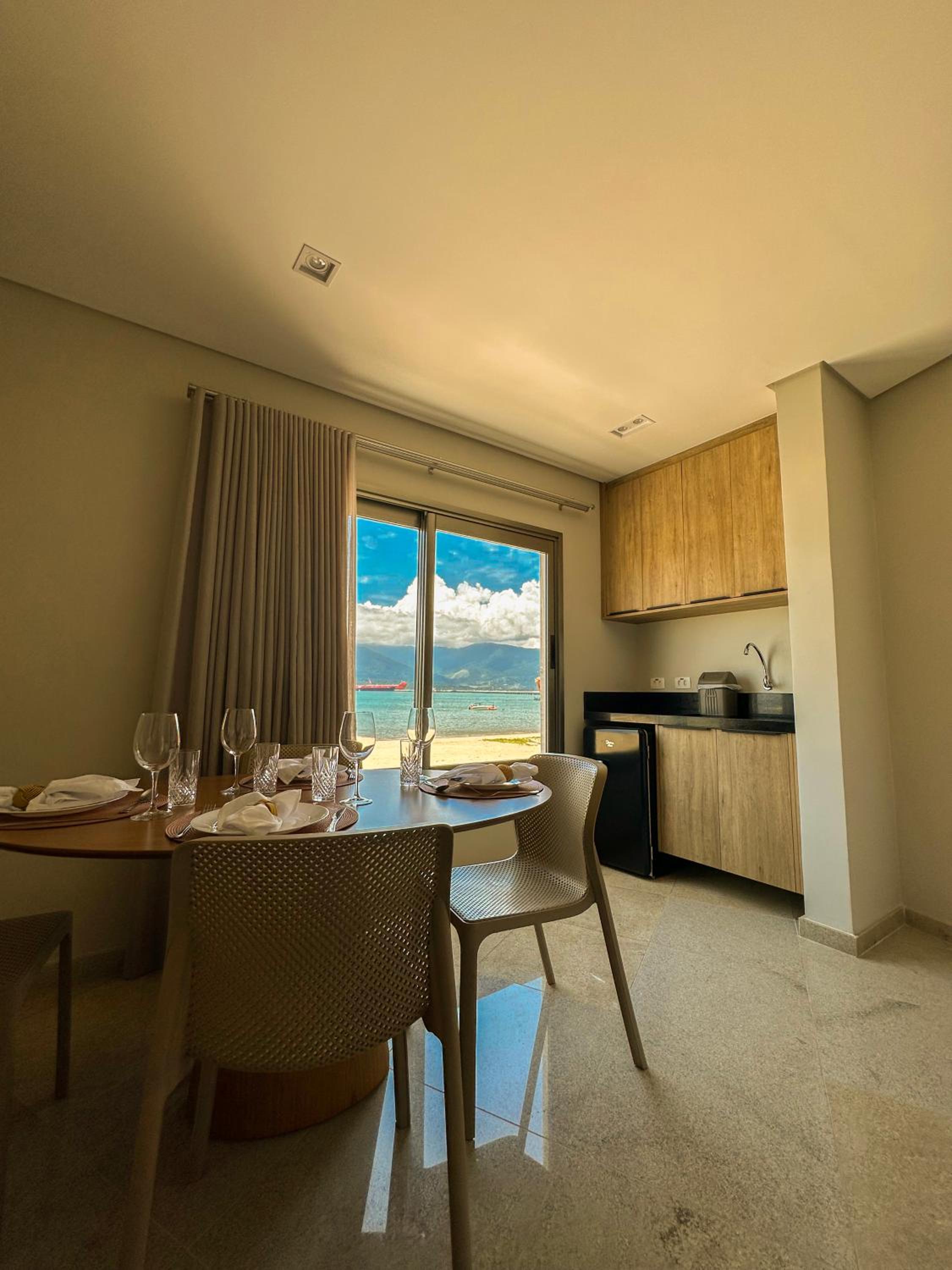 Acomodação impecável, com cozinha equipada com geladeira, forno, fogao, panelas, cafeteira nespresso (e capsulas de cortesia), alem de aguas com e sem gás na geladeira. Tudo maravilhoso. Localização incrível com uma praia "particular"na frente no hotel. Vista maravilhosa, deck e local da piscina incriveis. Amamos e com certeza voltaremos.