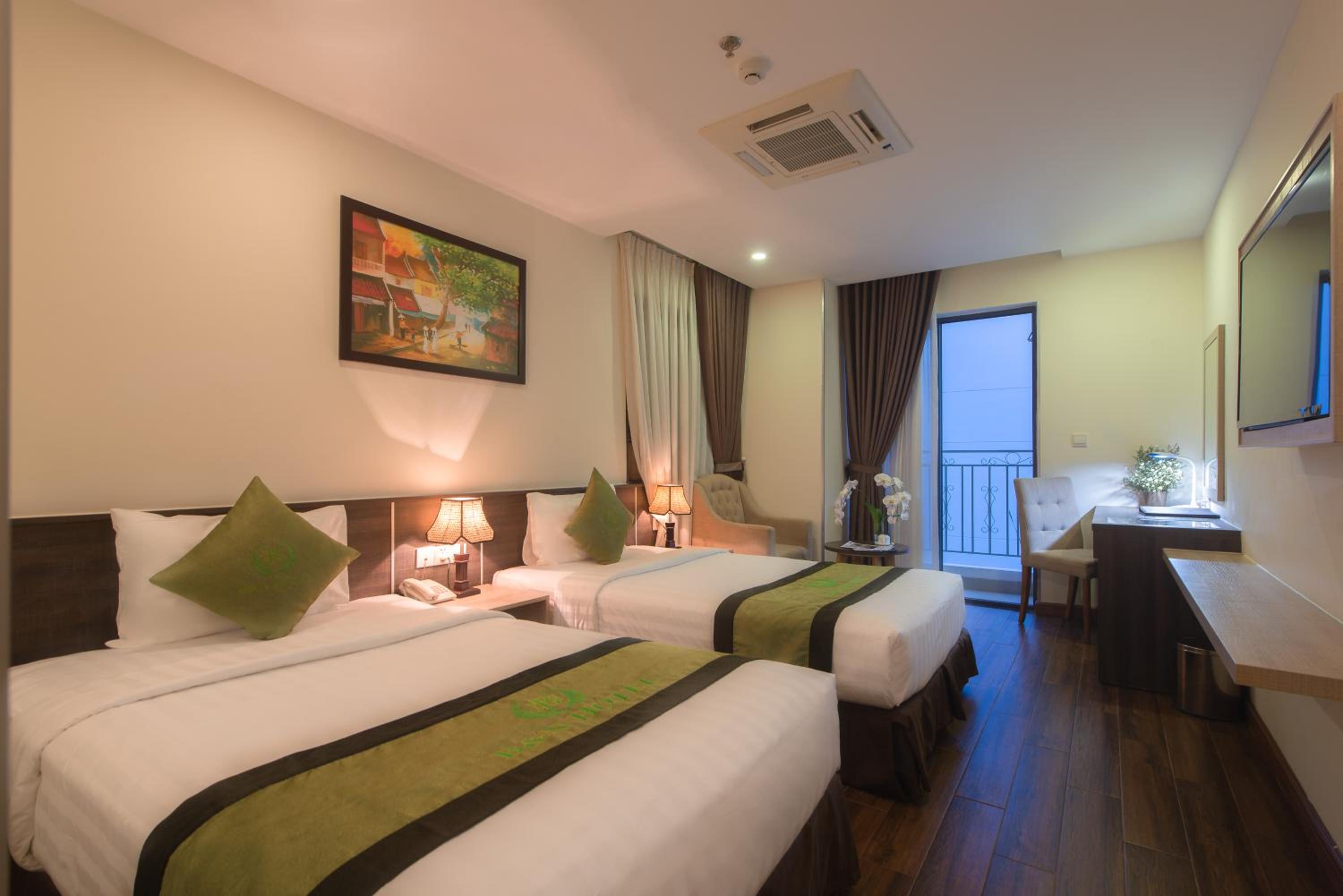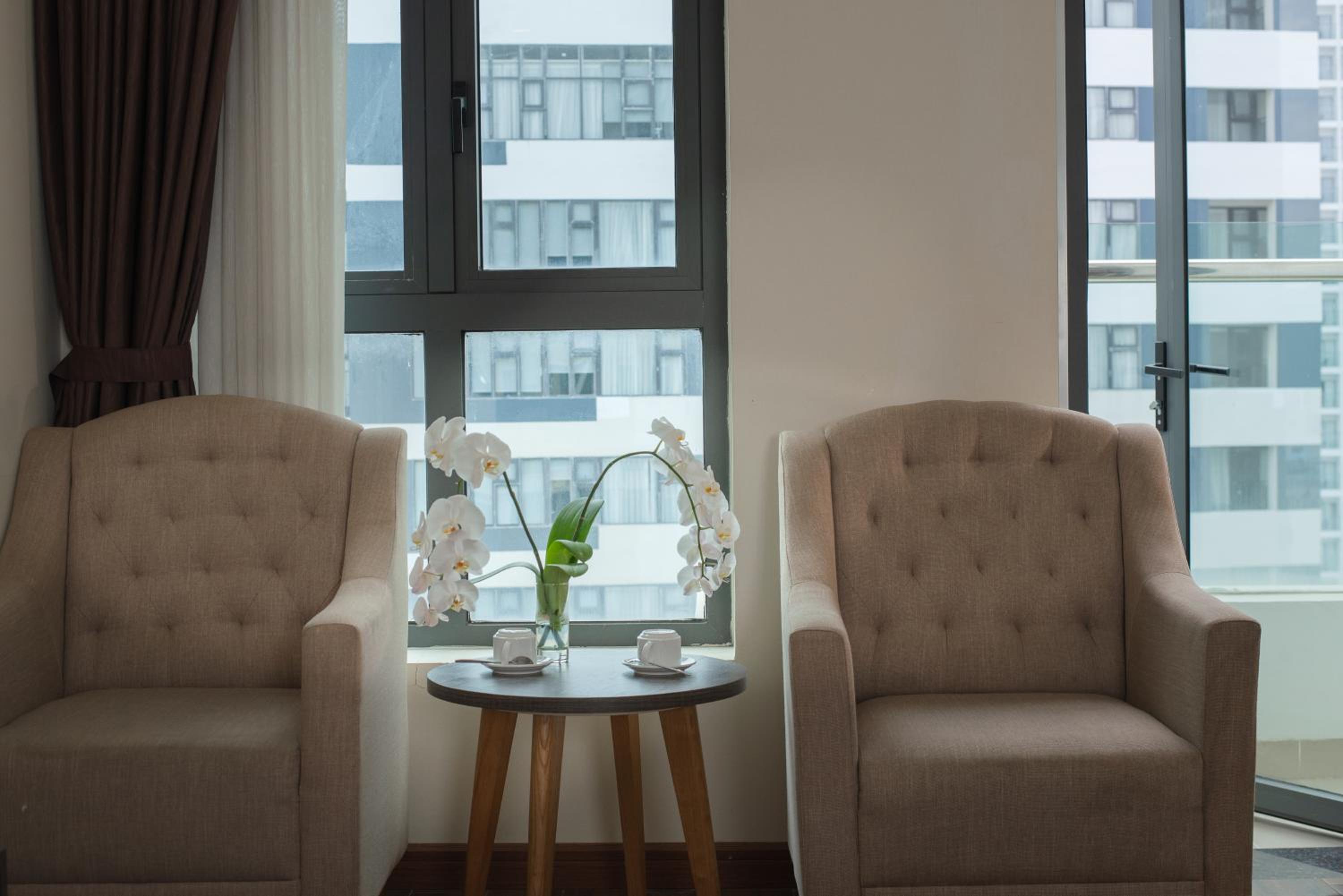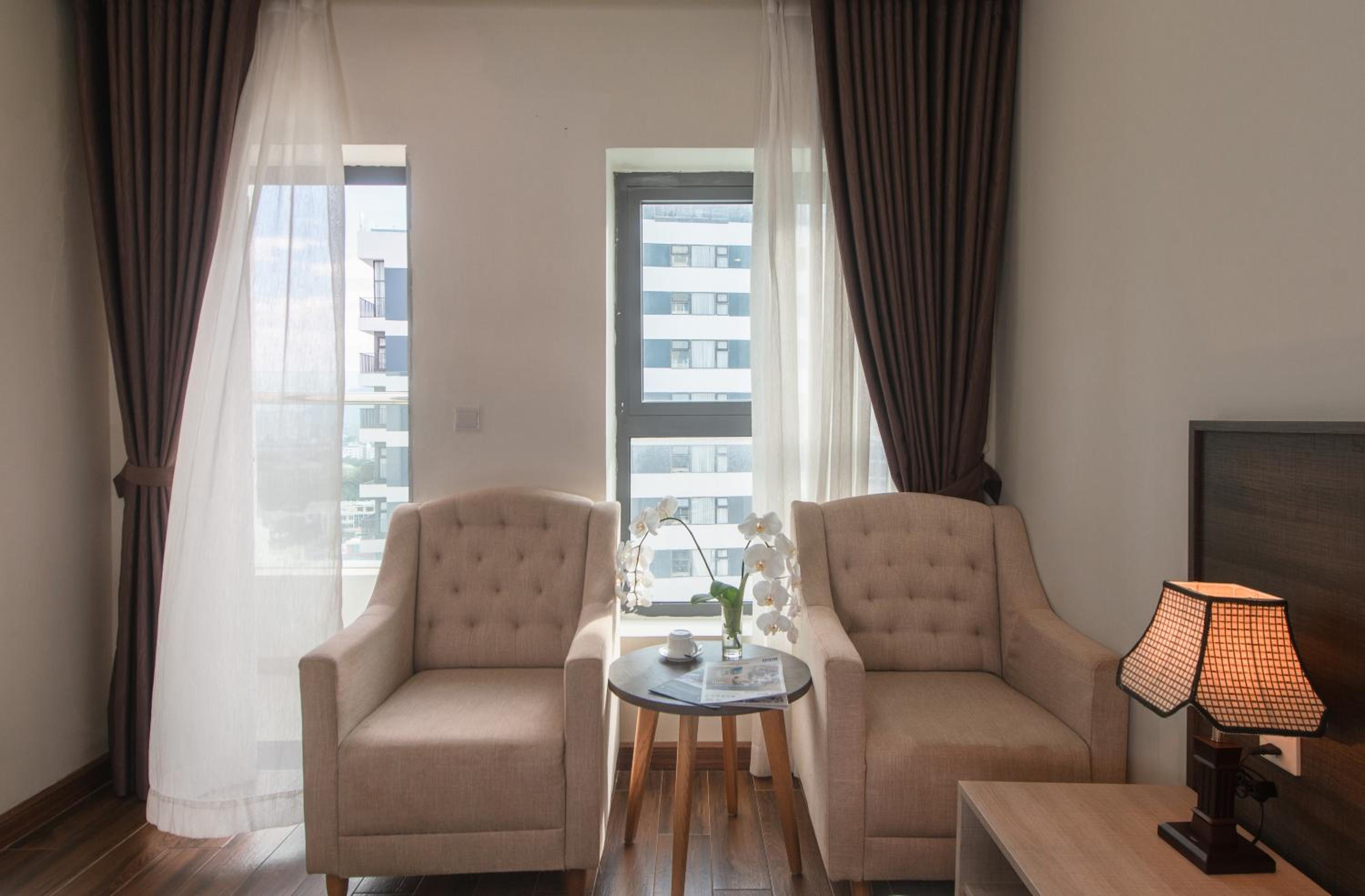 Phòng Rộng rãi 28m2, bố trí hợp lý , do mình công tác nên có bàn làm việc rất ok .