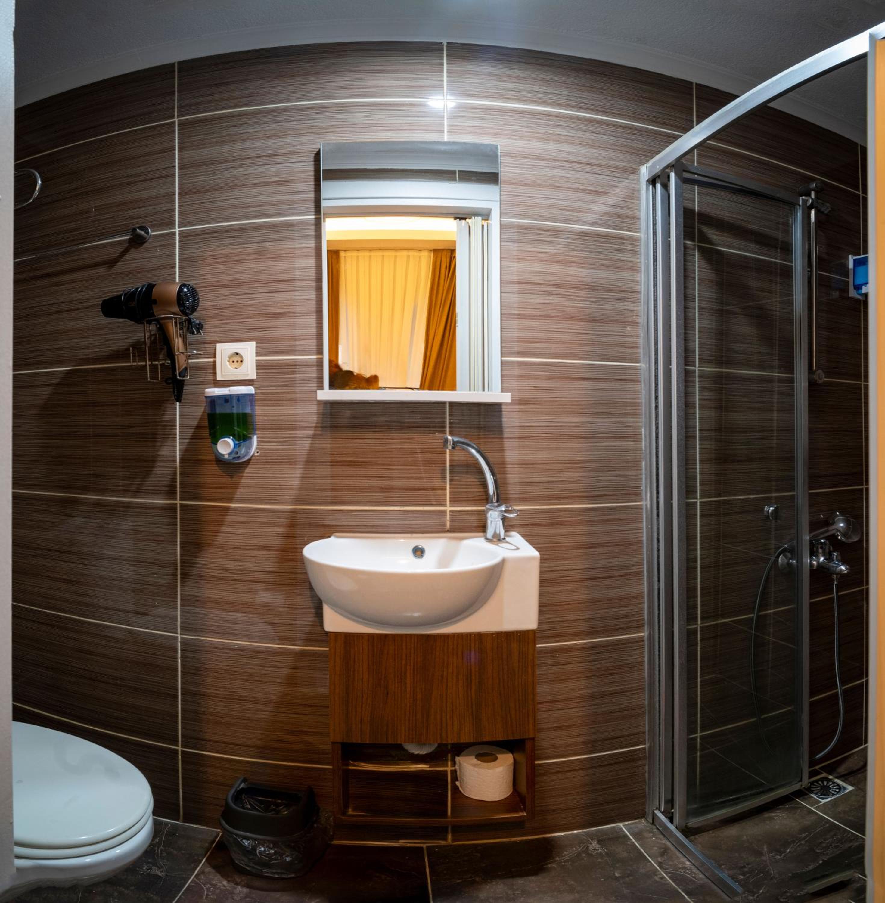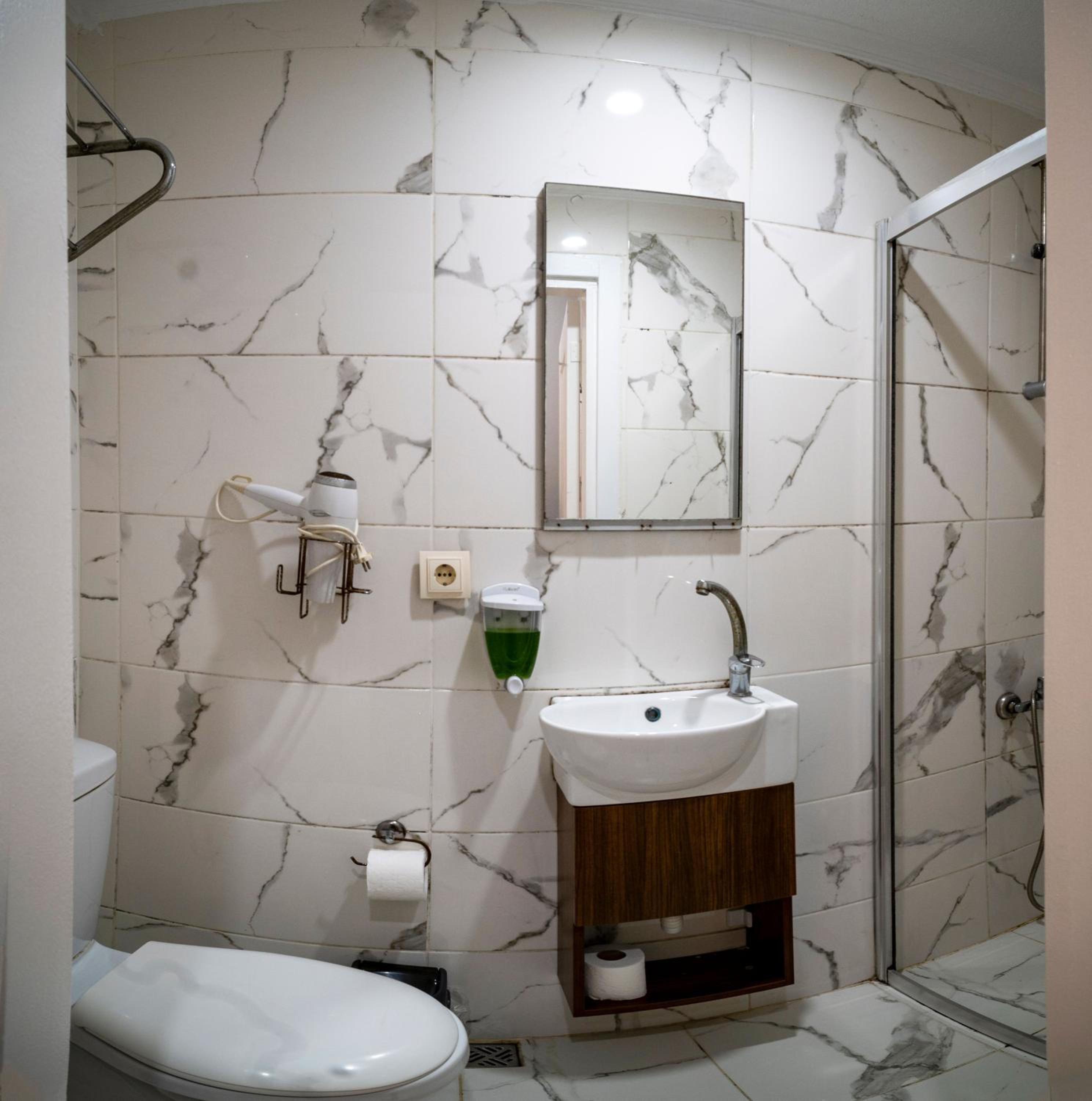 Как выяснилось, в новом отеле нам предложили комнату 8 кв. м. В ней помещалась одна кровать, малюсенький столик, закуток с душем и туалетом. Из апартаментов остались только холодильник и электрический чайник:))