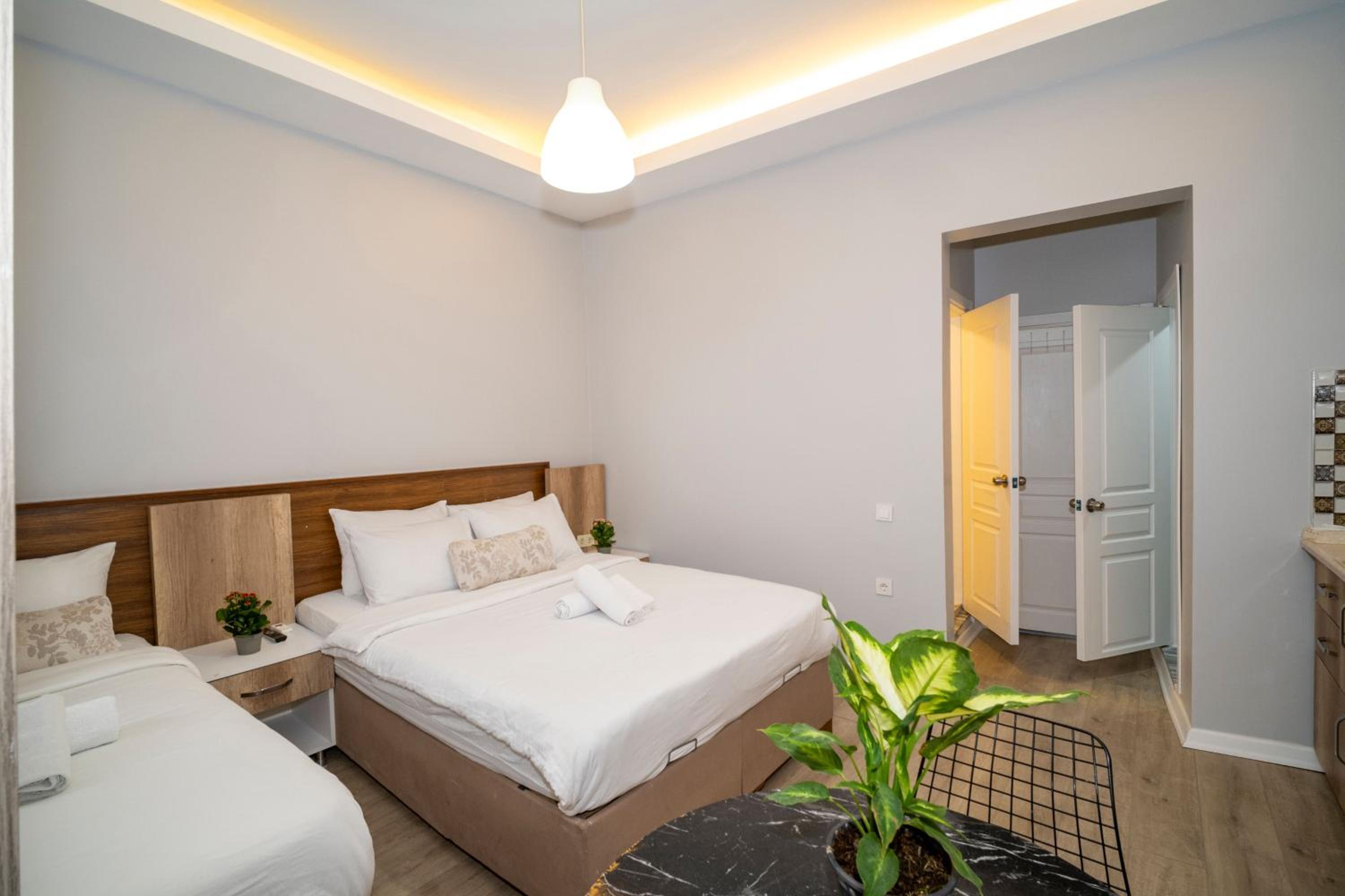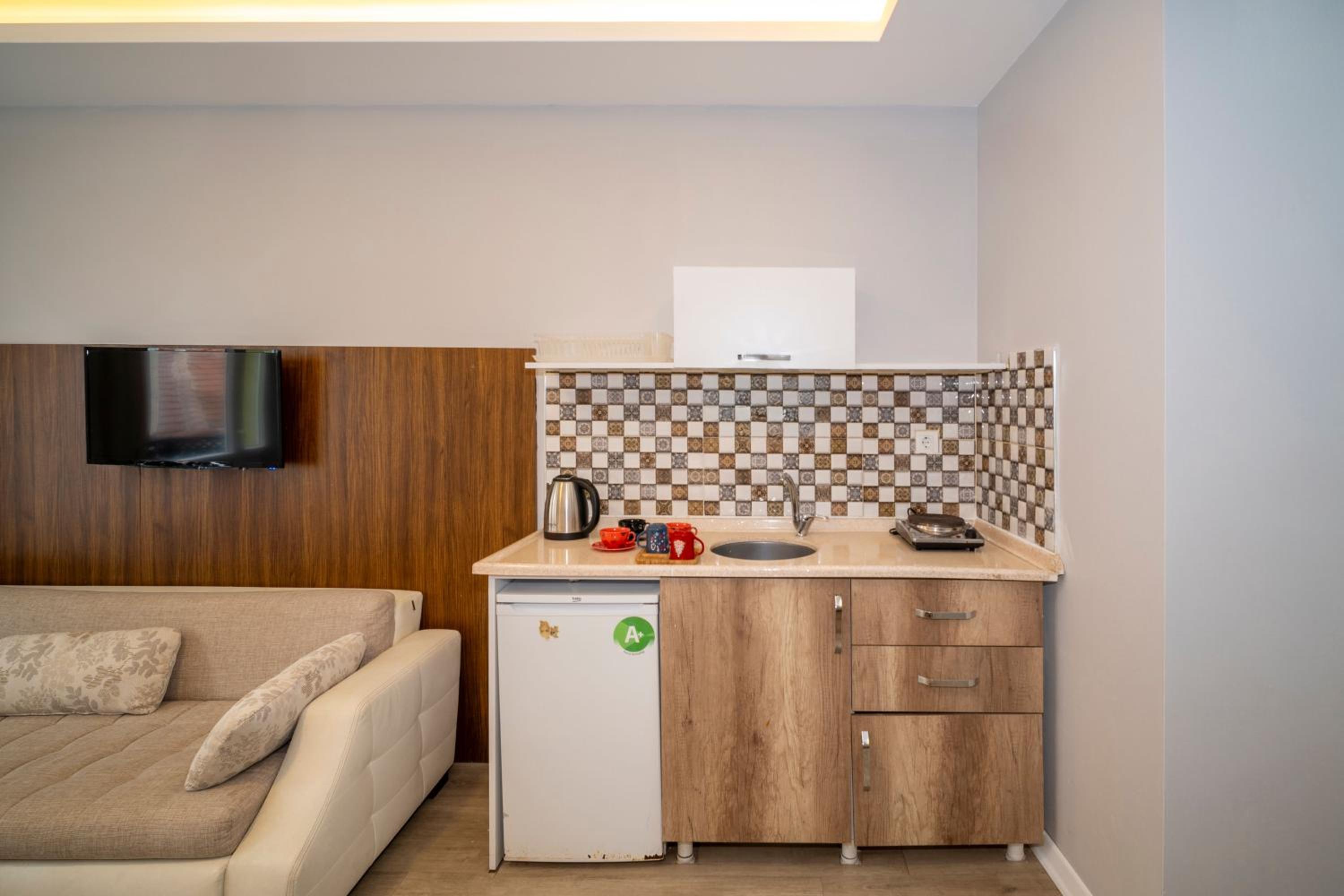 Для нас по разным причинам было важно наличие кухни. Мы специально бронировали апартаменты поэтому. Я спросила хозяина, апартаменты ли новый отель. Он ответил, что да.