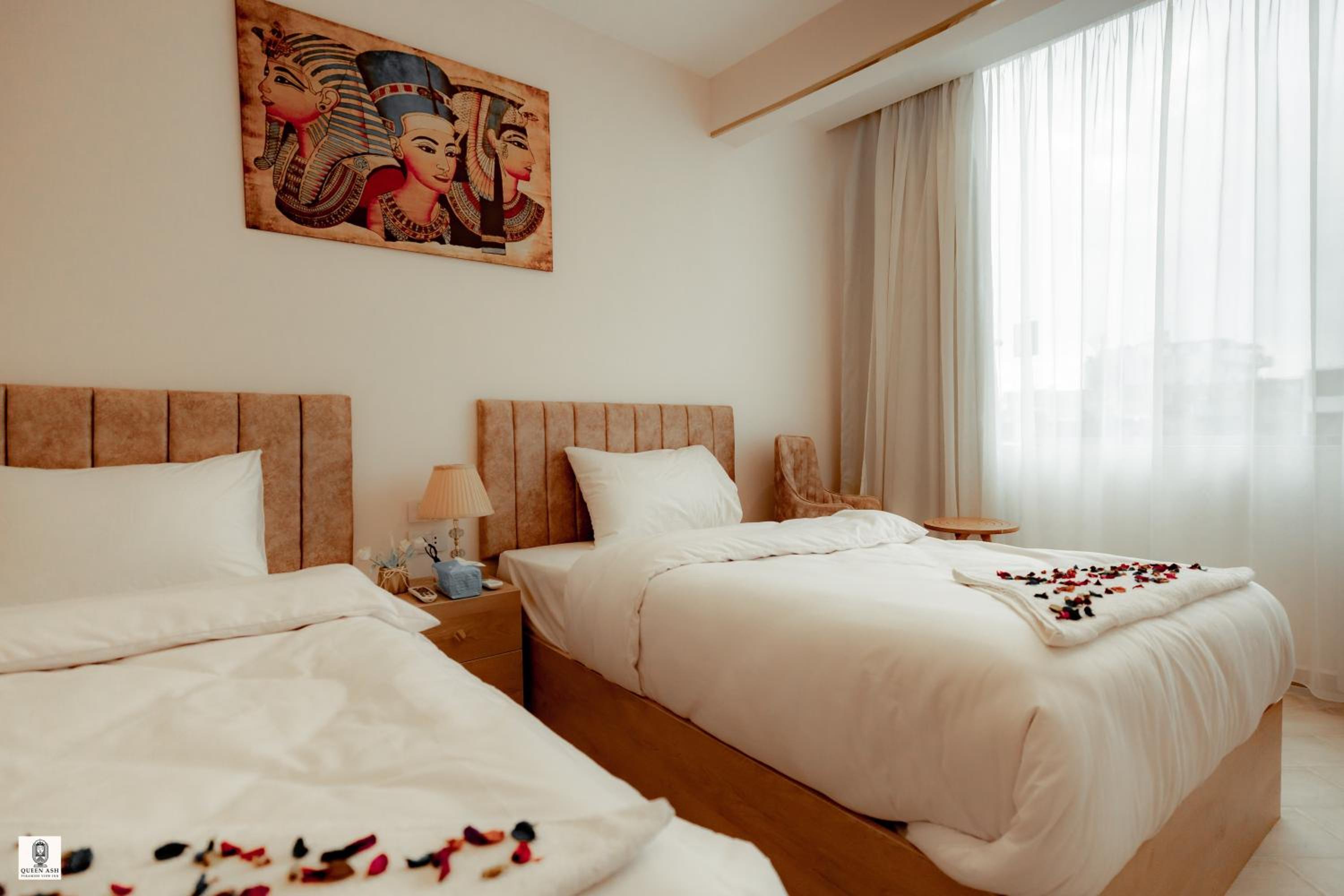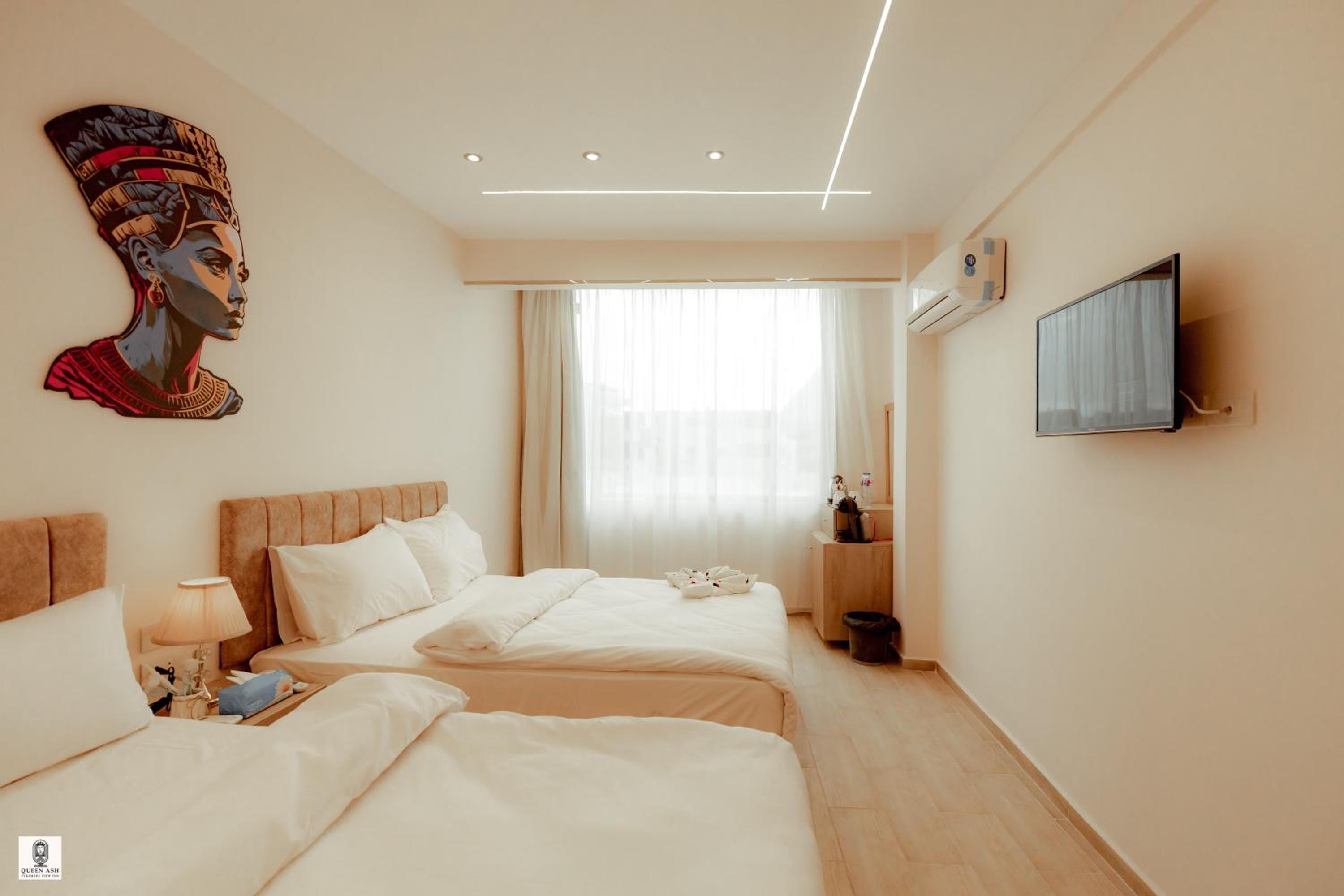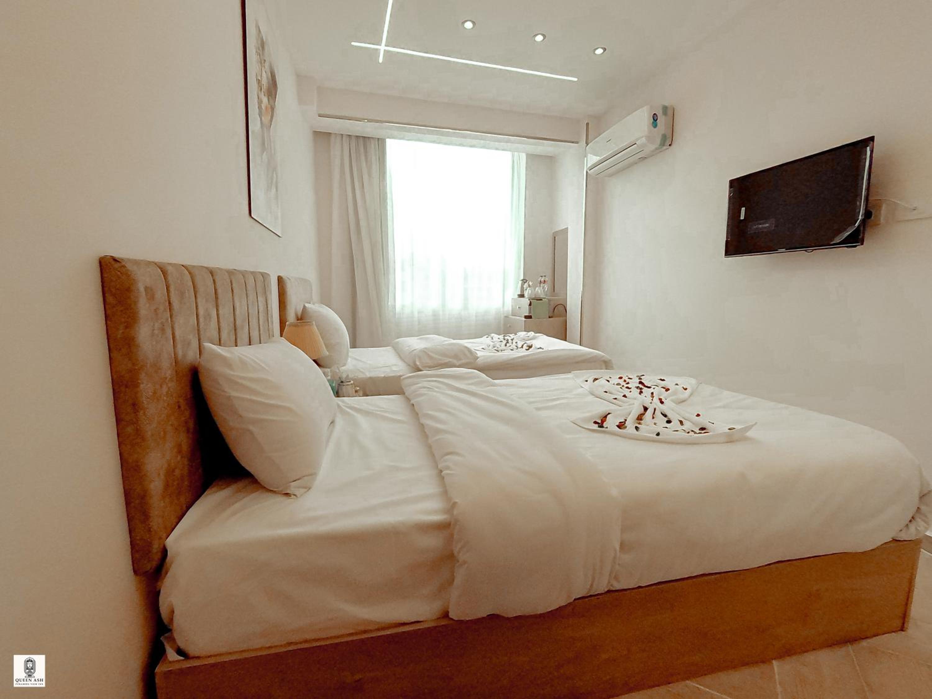 Enjoy breathtaking views of the iconic pyramids right from your room at Queen Ash Pyramids View Inn. Certain rooms even offer panoramic city views for a memorable stay.