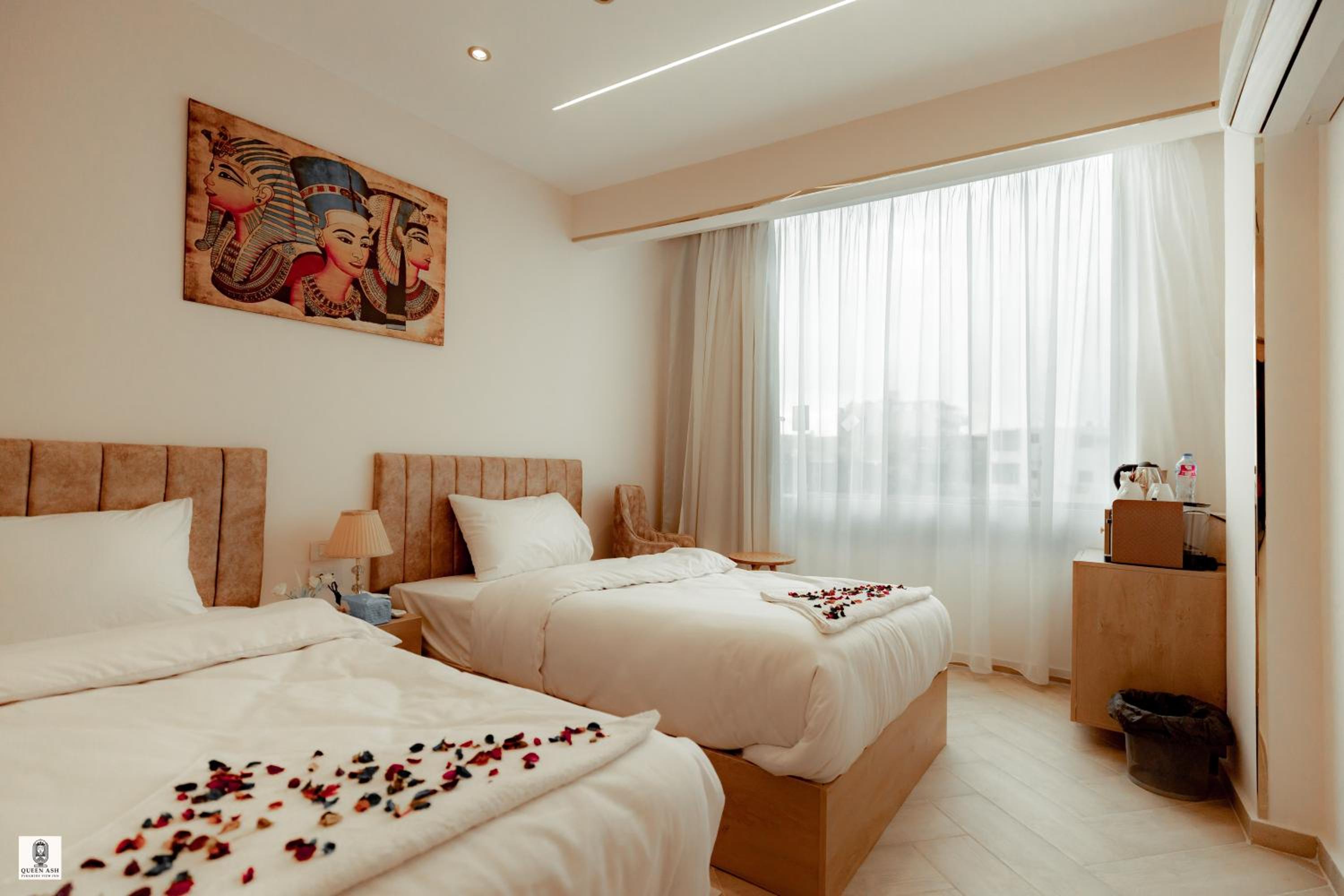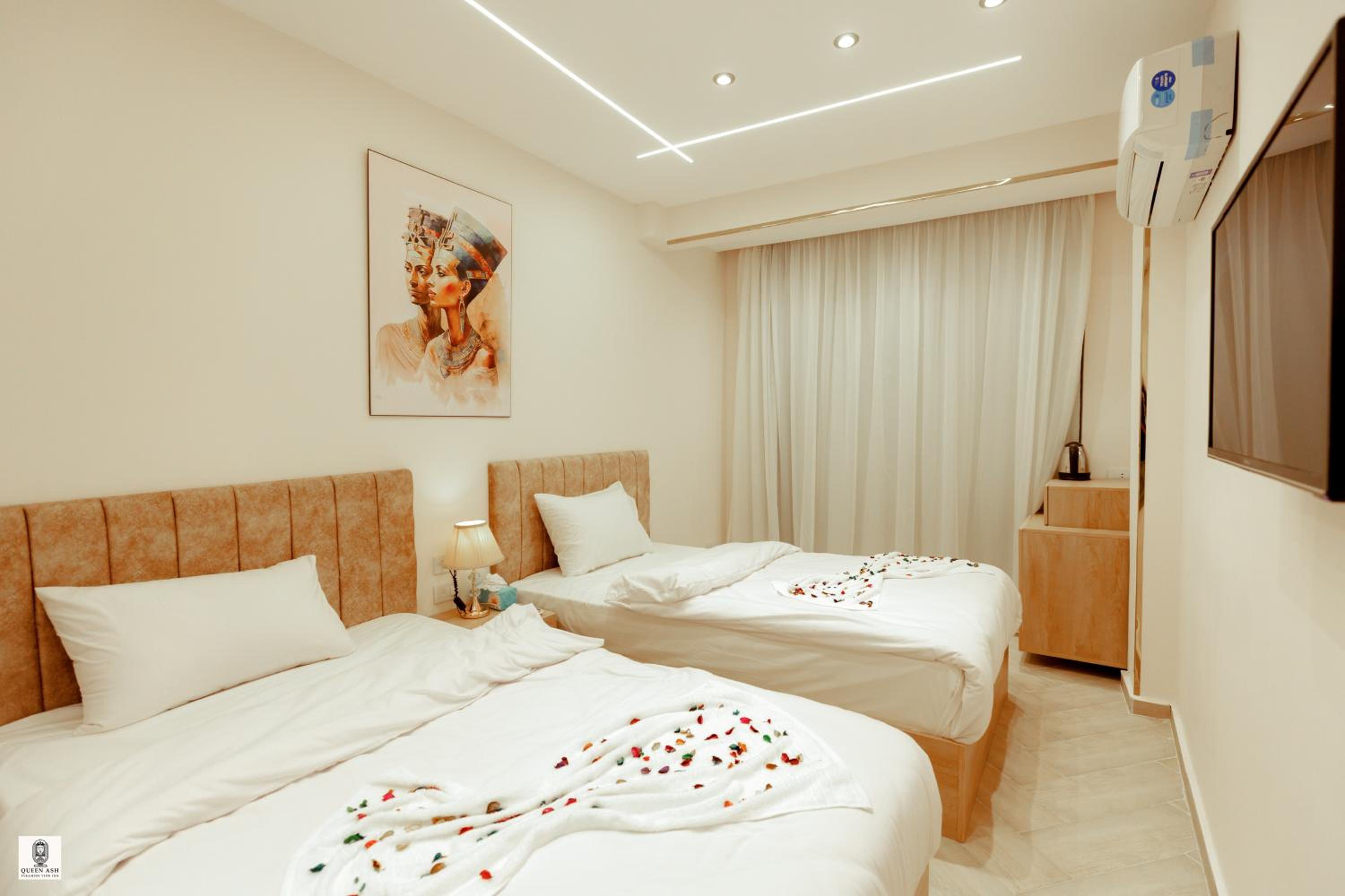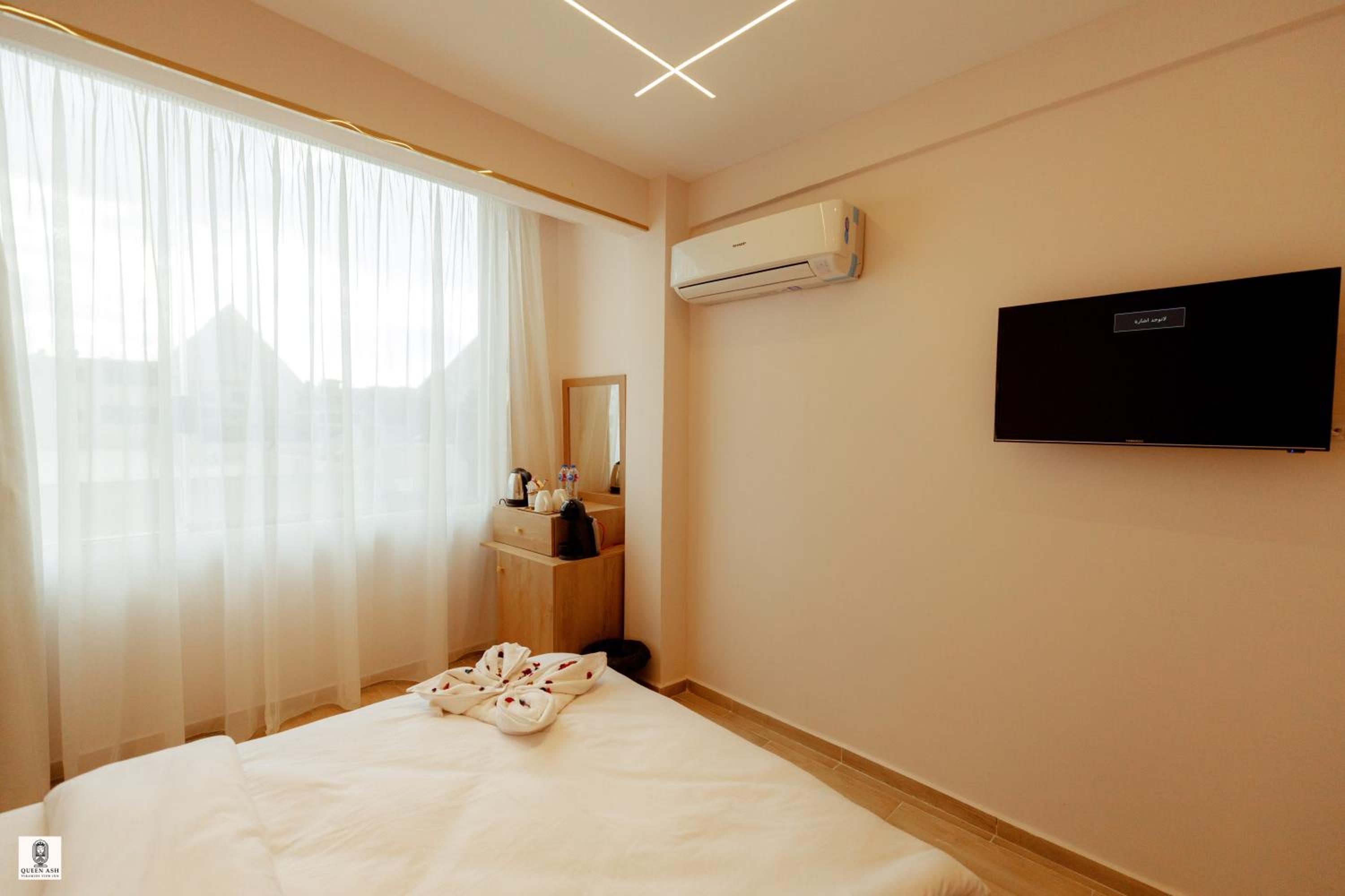 Enjoy breathtaking views of the iconic pyramids right from your room at Queen Ash Pyramids View Inn. Certain rooms even offer panoramic city views for a memorable stay.