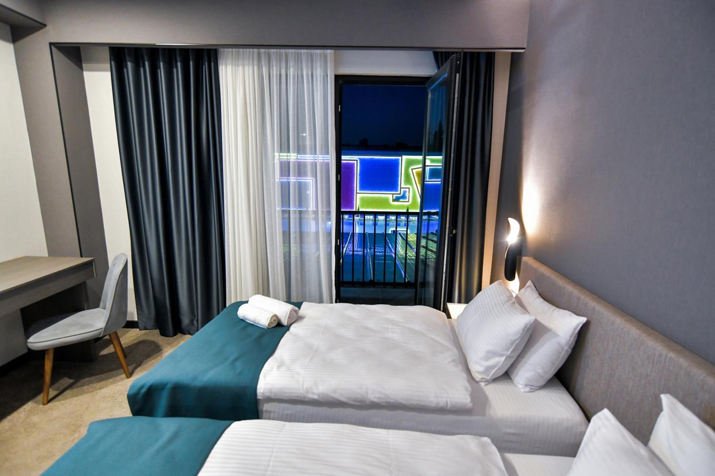 West Inn Georgia offers elegant 4-star rooms with balconies and modern amenities like air conditioning and flat-screen TVs. Each room features a private bathroom with premium toiletries, ensuring a comfortable stay for every guest.