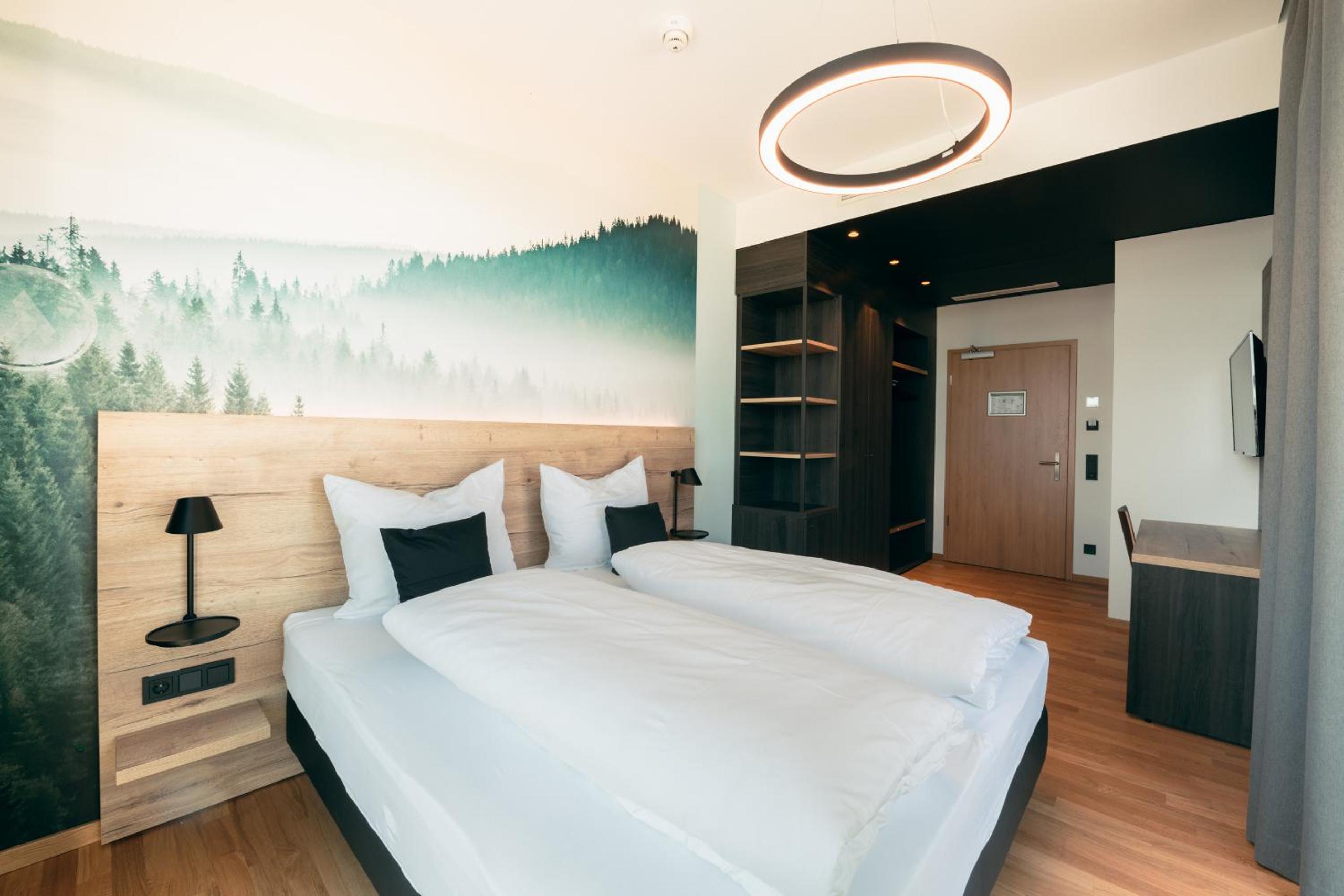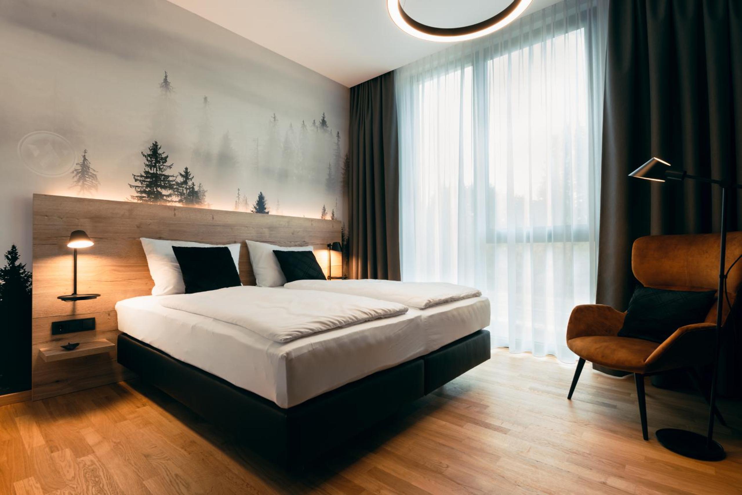 Ruhiges Zimmer mit edler Einrichtung und bequemen Betten.