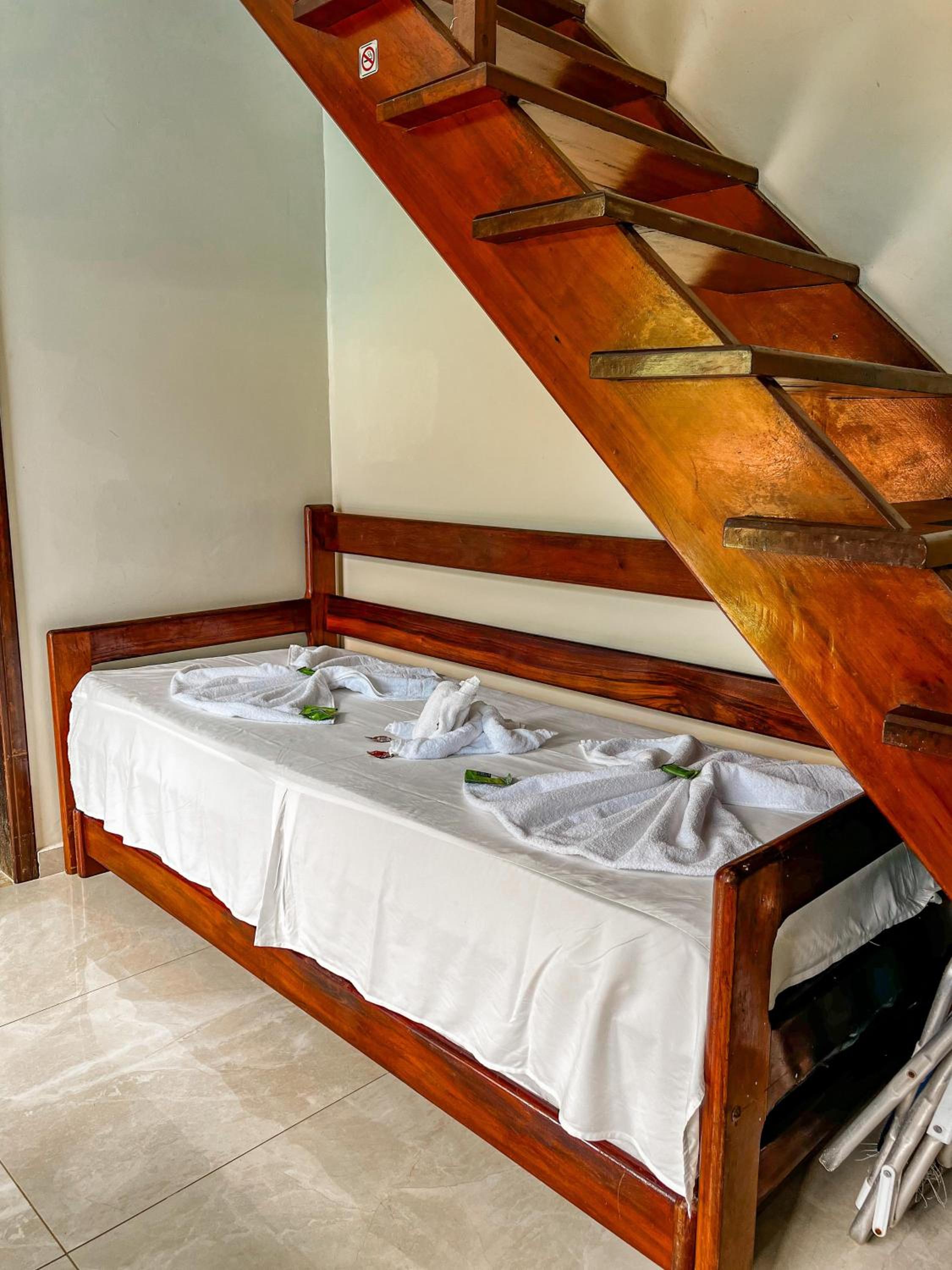 El desayuno con gran cantidad de moscas sobrevolando a los huéspedes y en varios casos, sobre la comida. Raro que no tengan un lugar cerrado o al menos alternativa para espantar/eliminar las moscas.