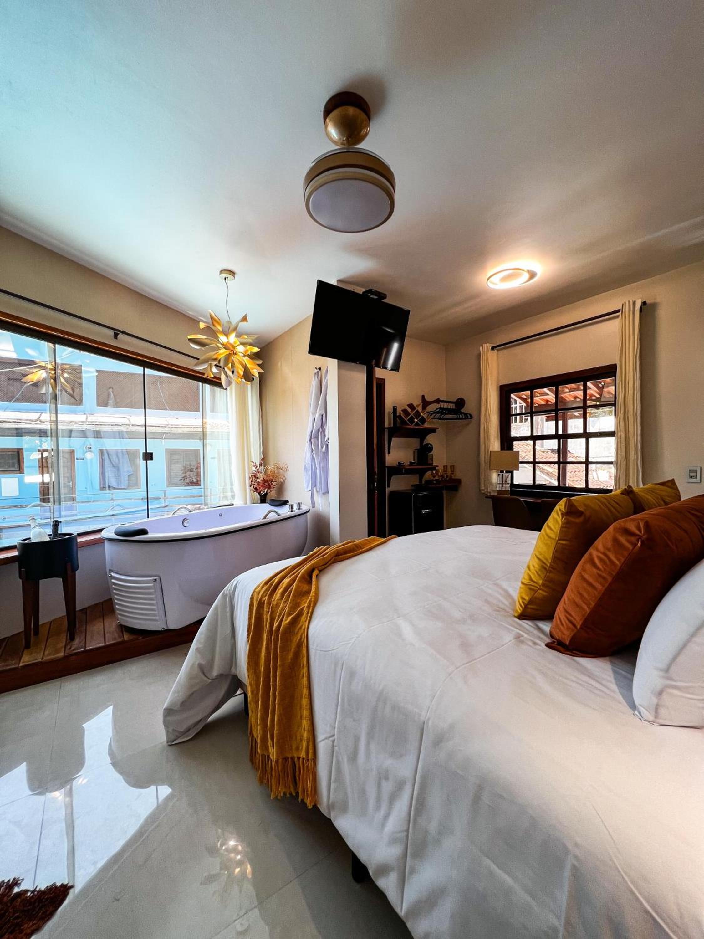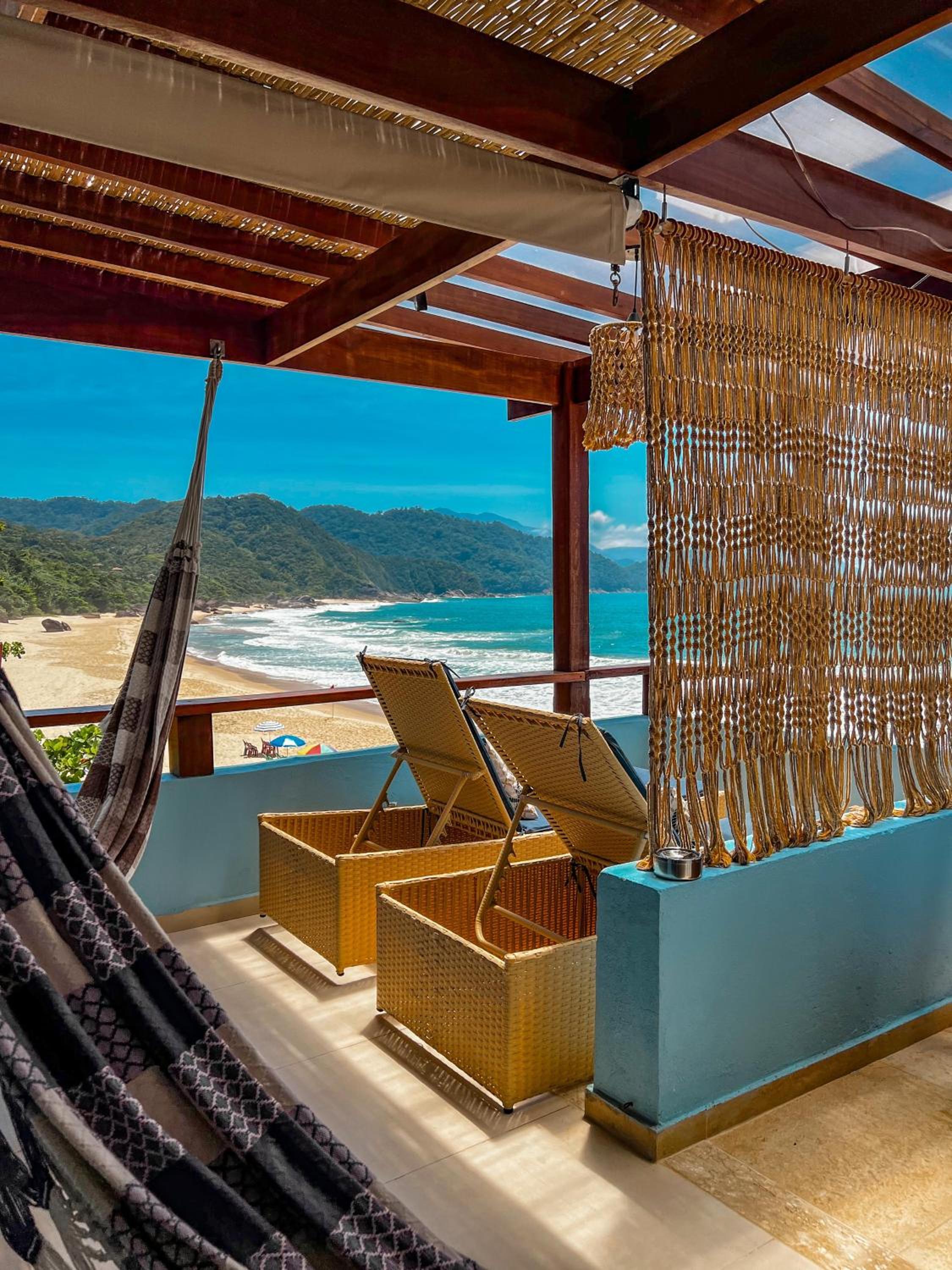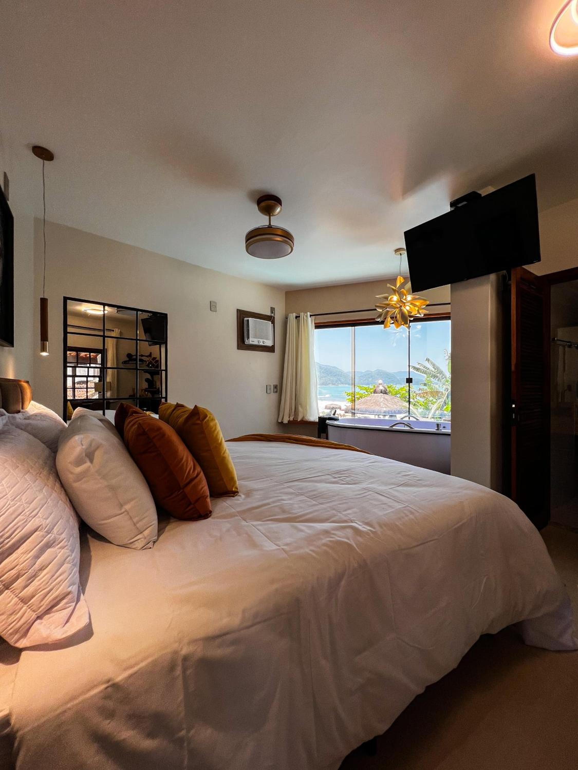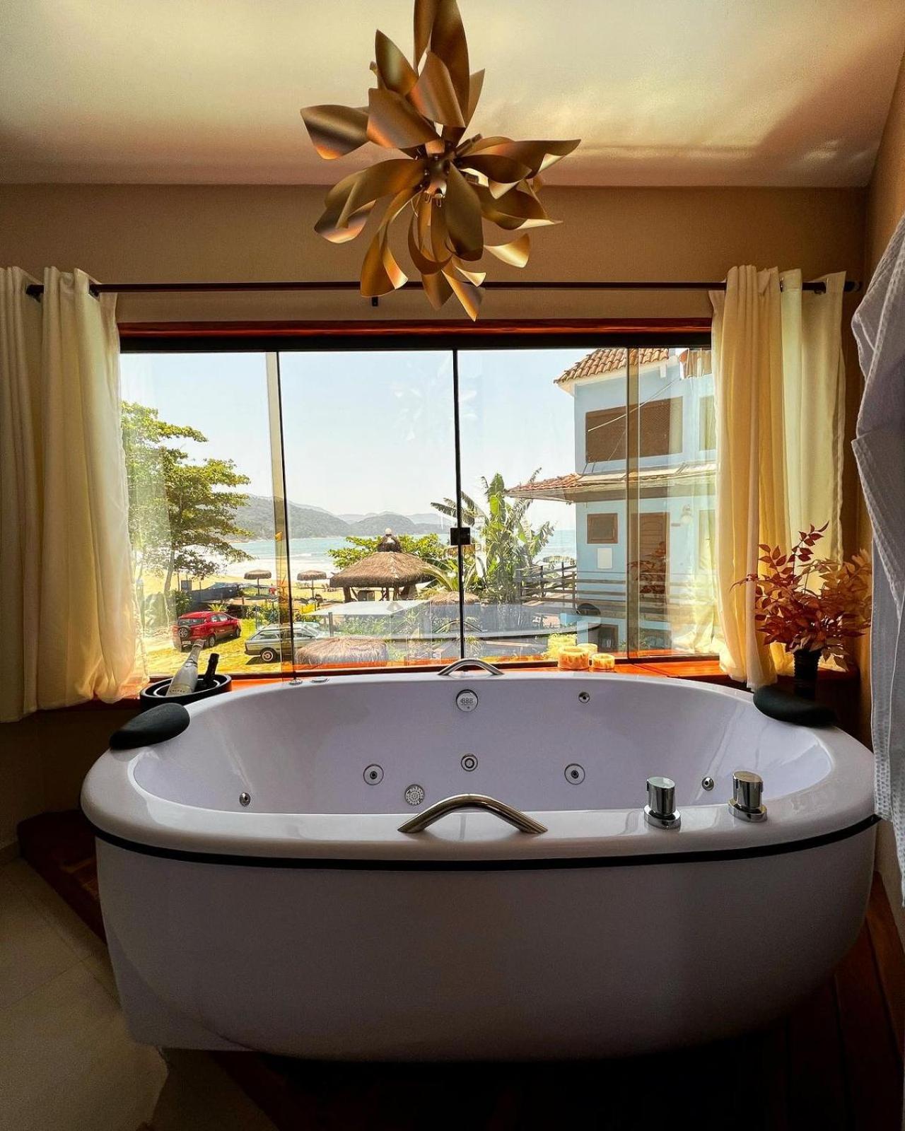 Quarto com banheira visual da praia