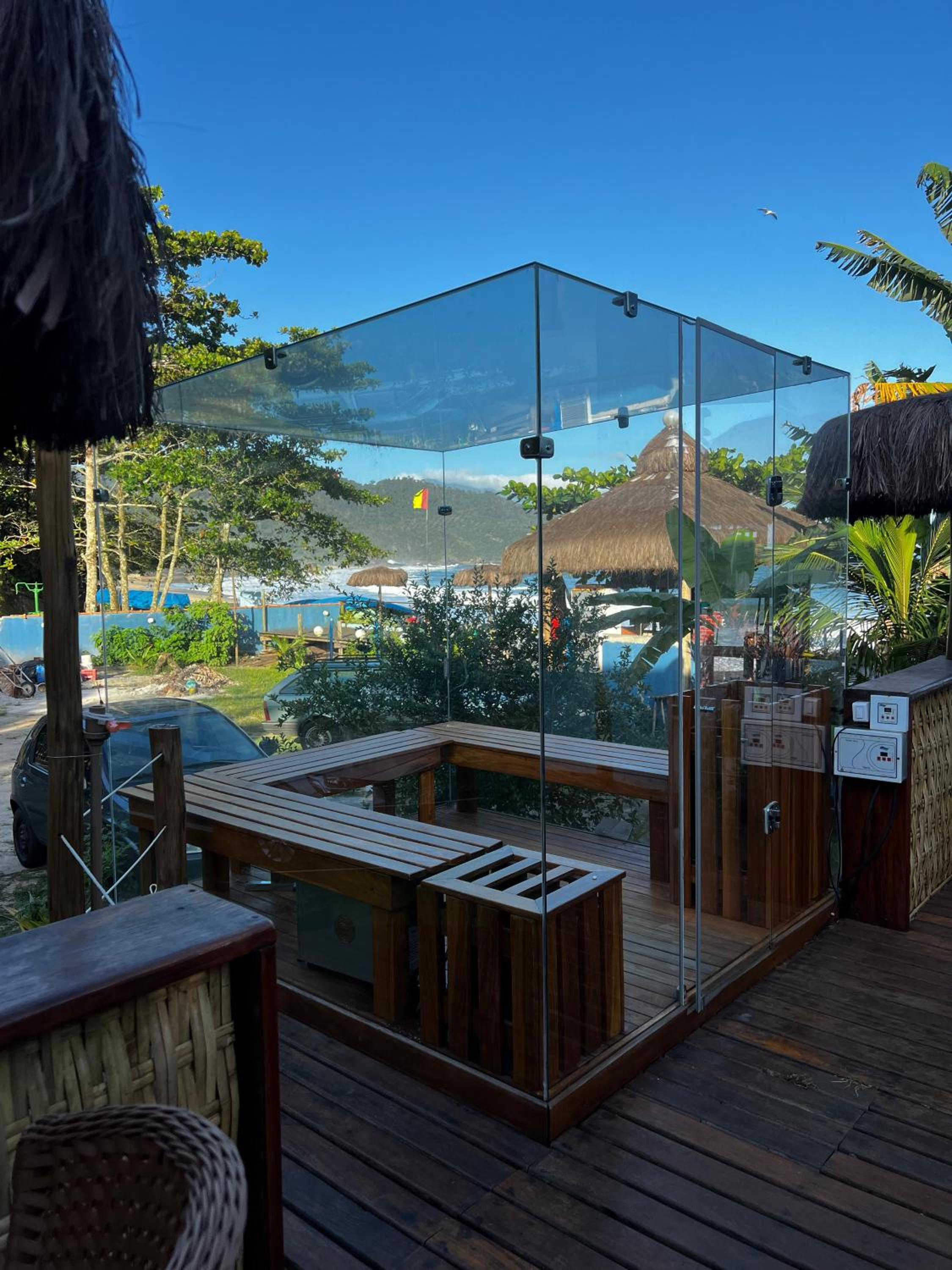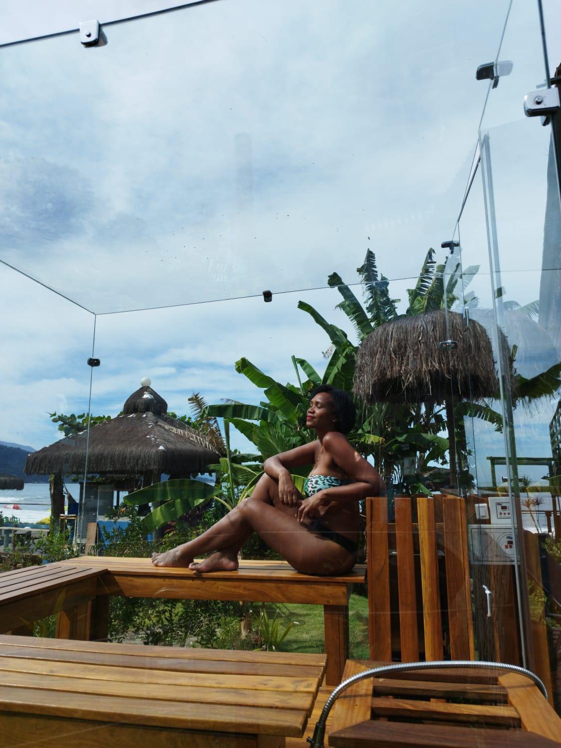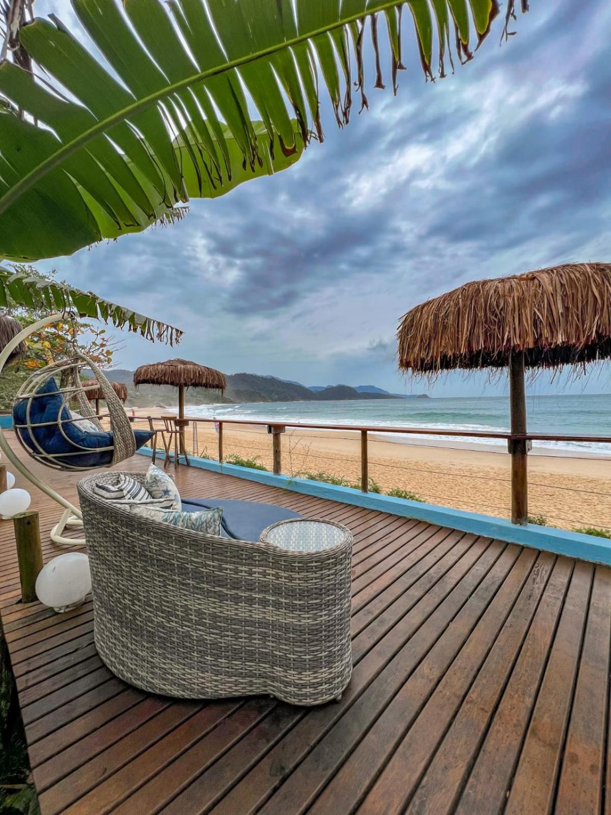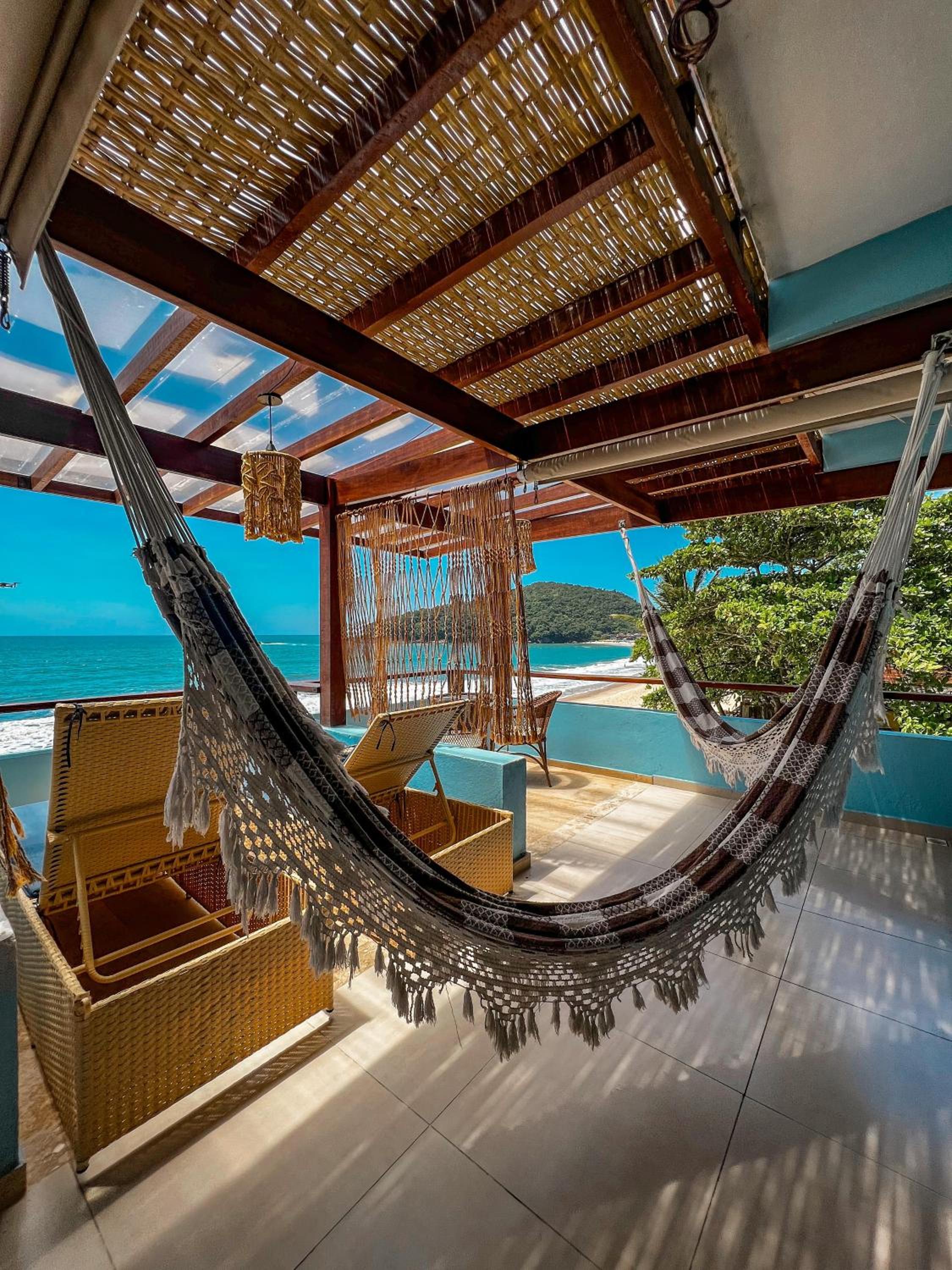 Quarto com banheira visual da praia
