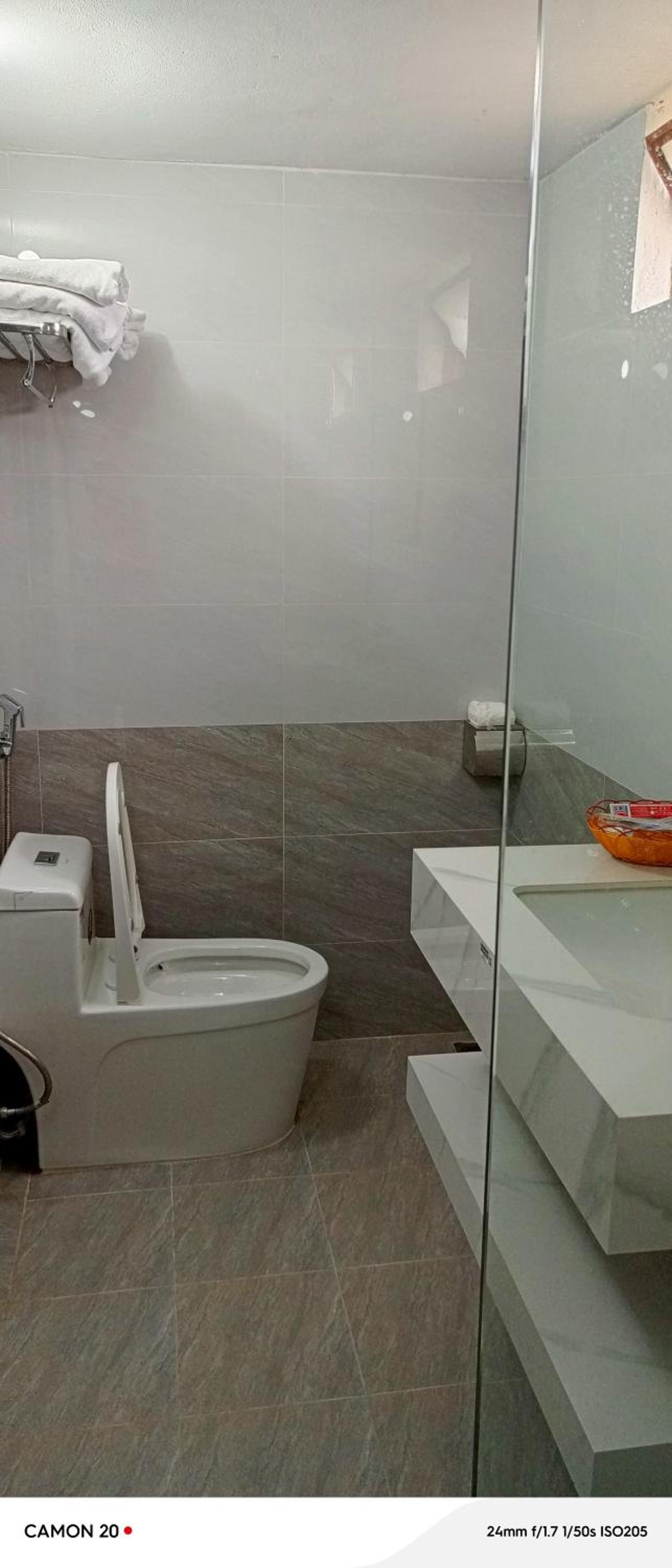 Nhà WC không có hút mùi, bồn rửa mặt thoát nước chậm.
