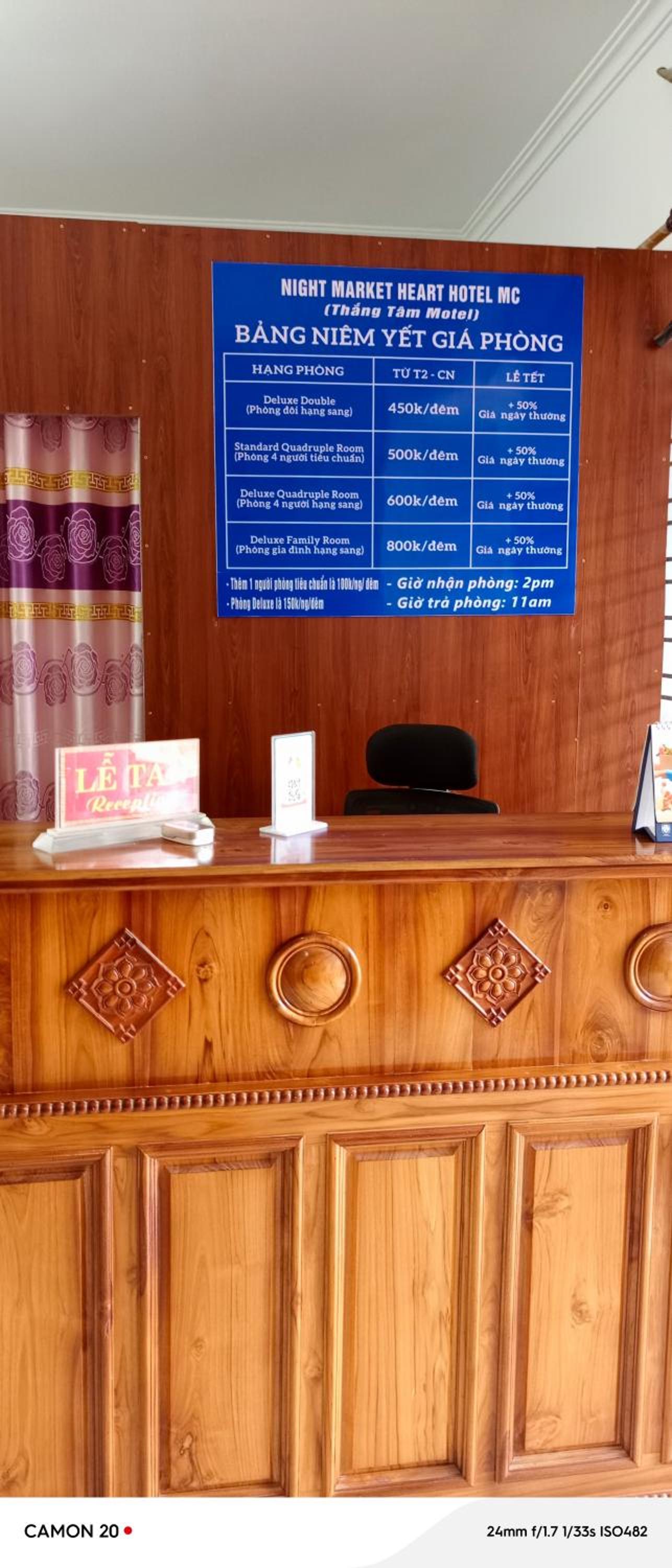 Nhân viên thân thiện - nhiệt tình - hỗ trợ hết mình, phòng ốc sạch sẽ, nước đầy đủ, có máy nước nóng lạnh, vị trí trung tâm, cách chợ đêm 3 phút đi bộ