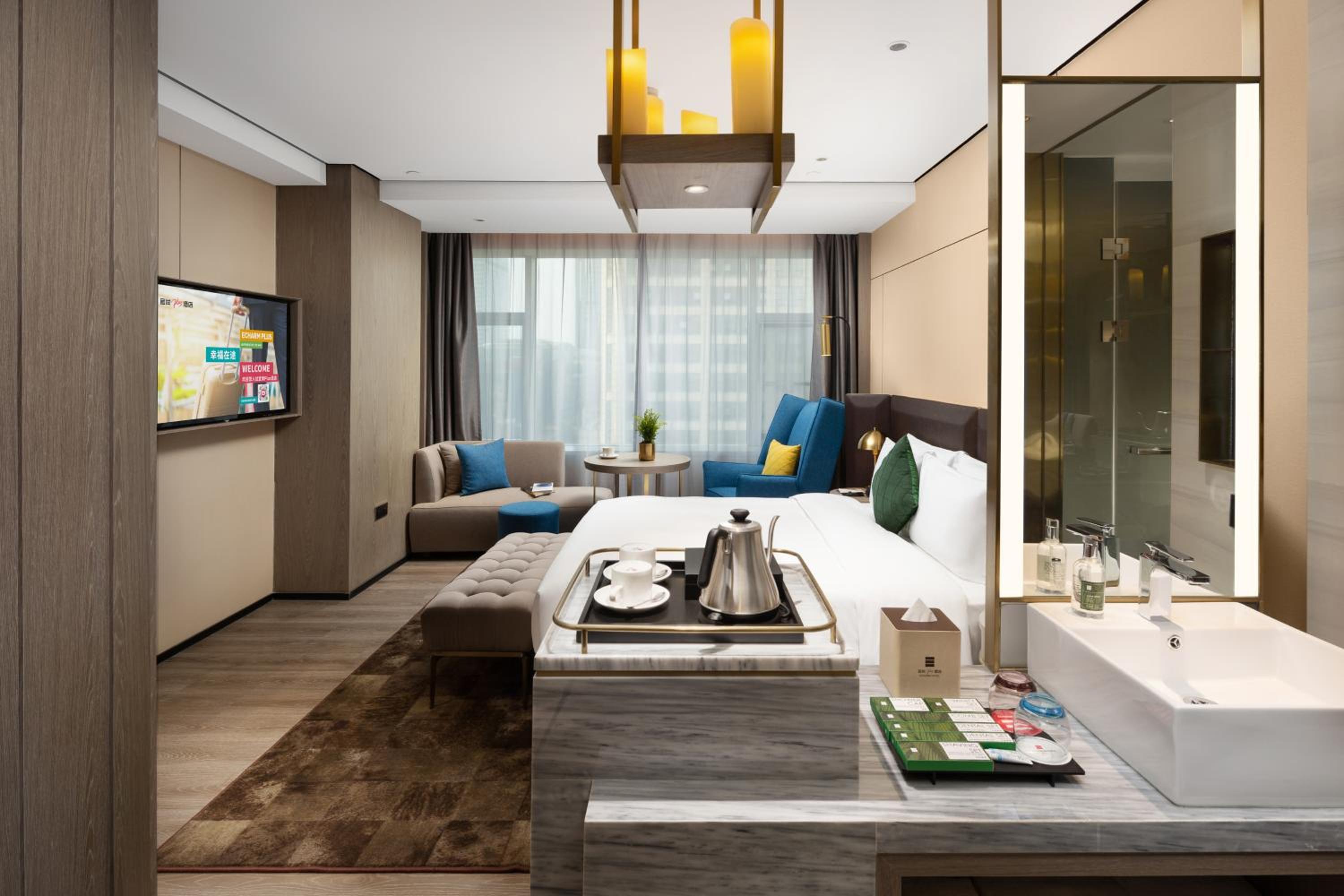 I recently stayed at Echarm Plus in Hangzhou, and it was absolutely fantastic! From the moment I arrived, the staff went above and beyond to make me feel welcome. The lobby is modern and stylish, and check-in was smooth and efficient. The bed was cozy, and everything was spotless! Highly recommended!