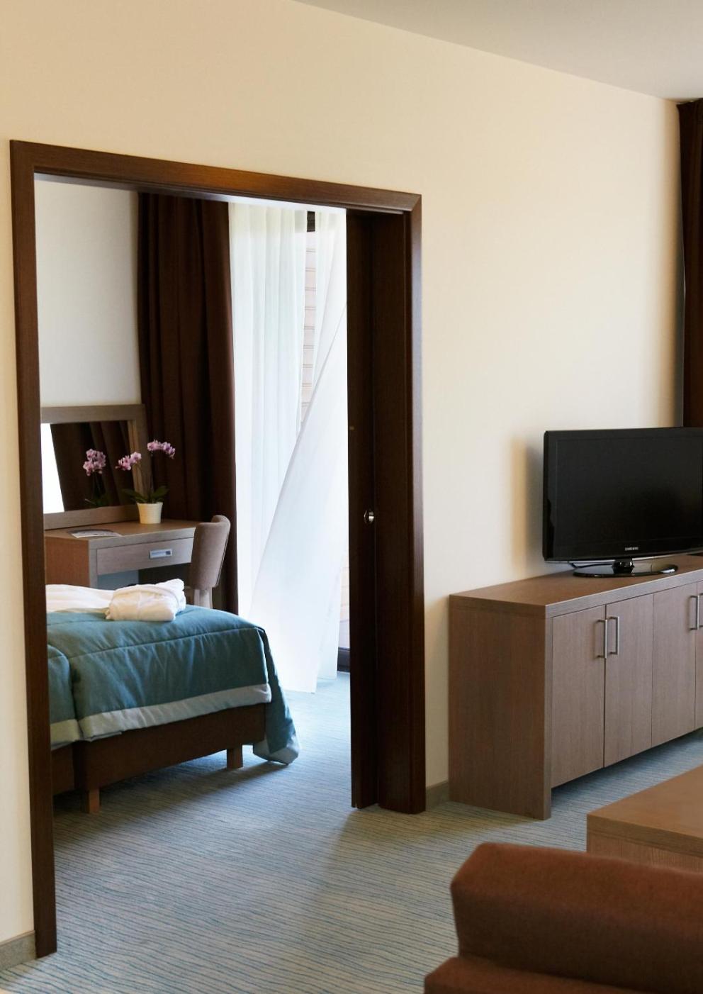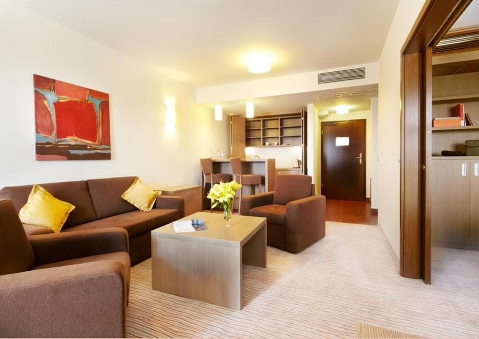 The Baltic Plaza Hotel Medi Spa in Kołobrzeg offers modern and elegant apartments with a living room, bedroom, and kitchenette. Enjoy cable TV and a sleek interior design for a comfortable stay.