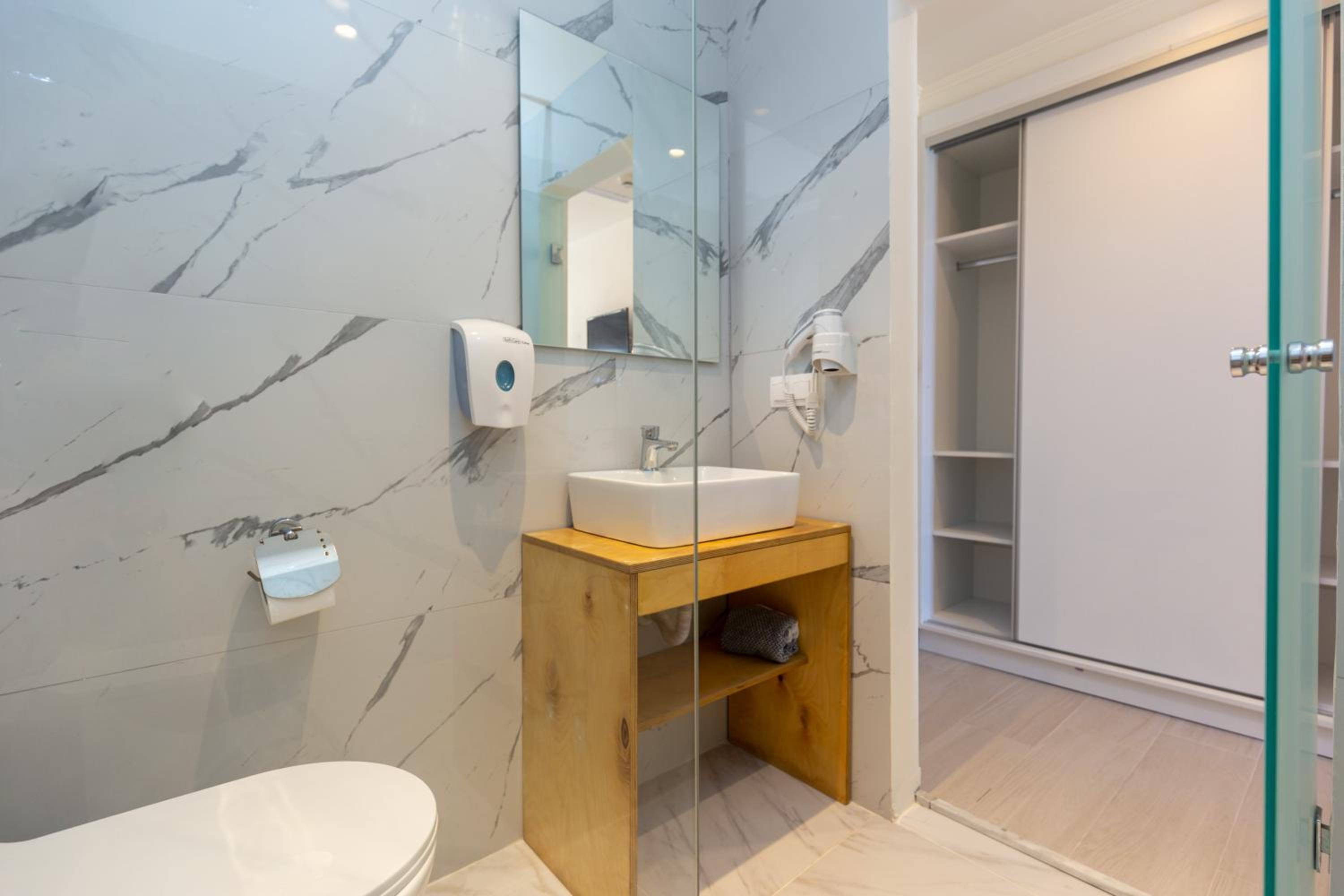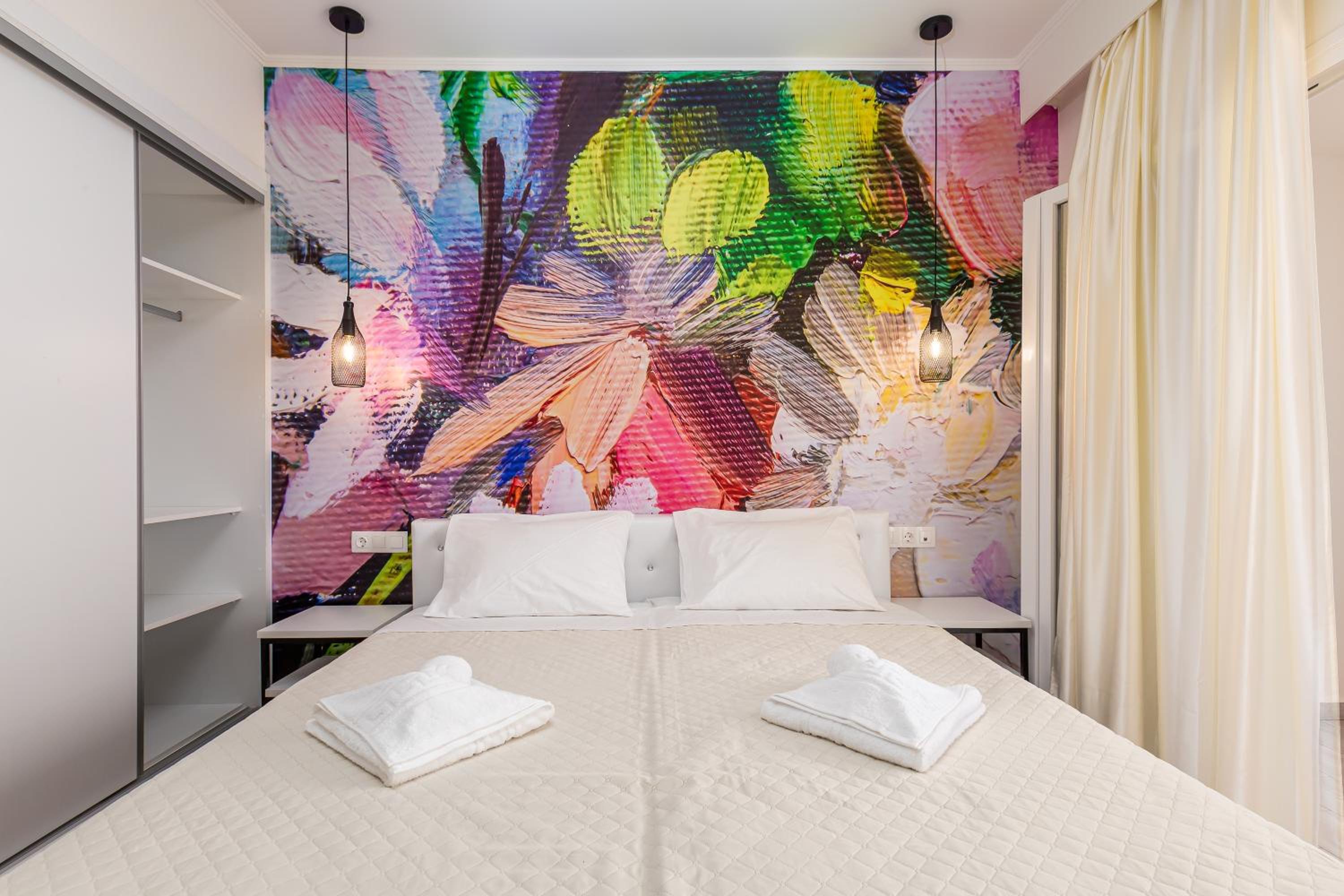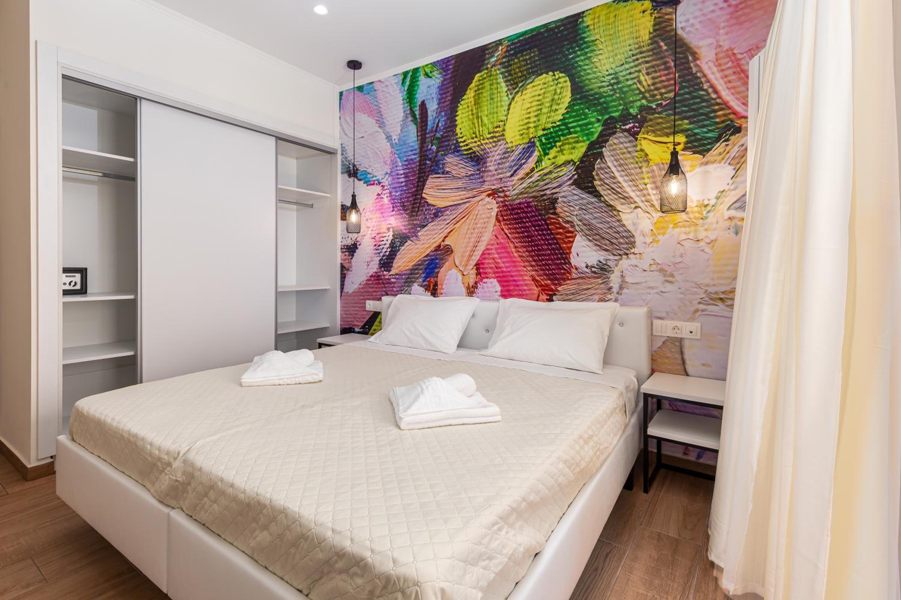 Indulge in modern comforts with flat-screen TVs, air conditioning, and private balconies offering stunning sea views. Unwind in style and luxury at Aqua Luxury Suites by Estia.