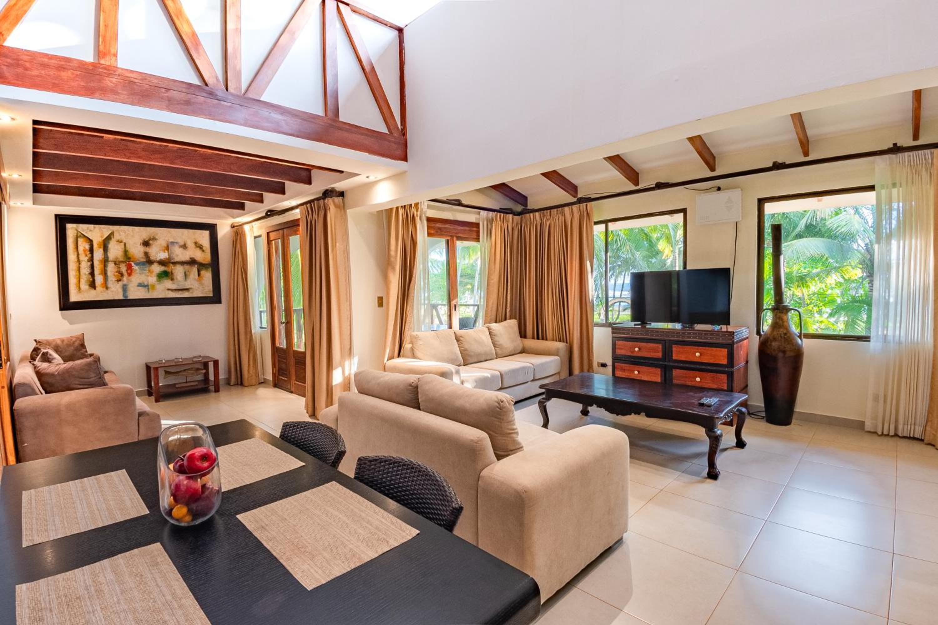 La habitacion estaba impecable, espaciosa y muy acogedora, con todo lo necesario para pasar un excelente finde semana, me gusto que la habitacion es independiente, con vista al mar, tiene smart TV, muebles muy elegantes, refrigerador y coffee maker, ademas de una deliciosa cama.