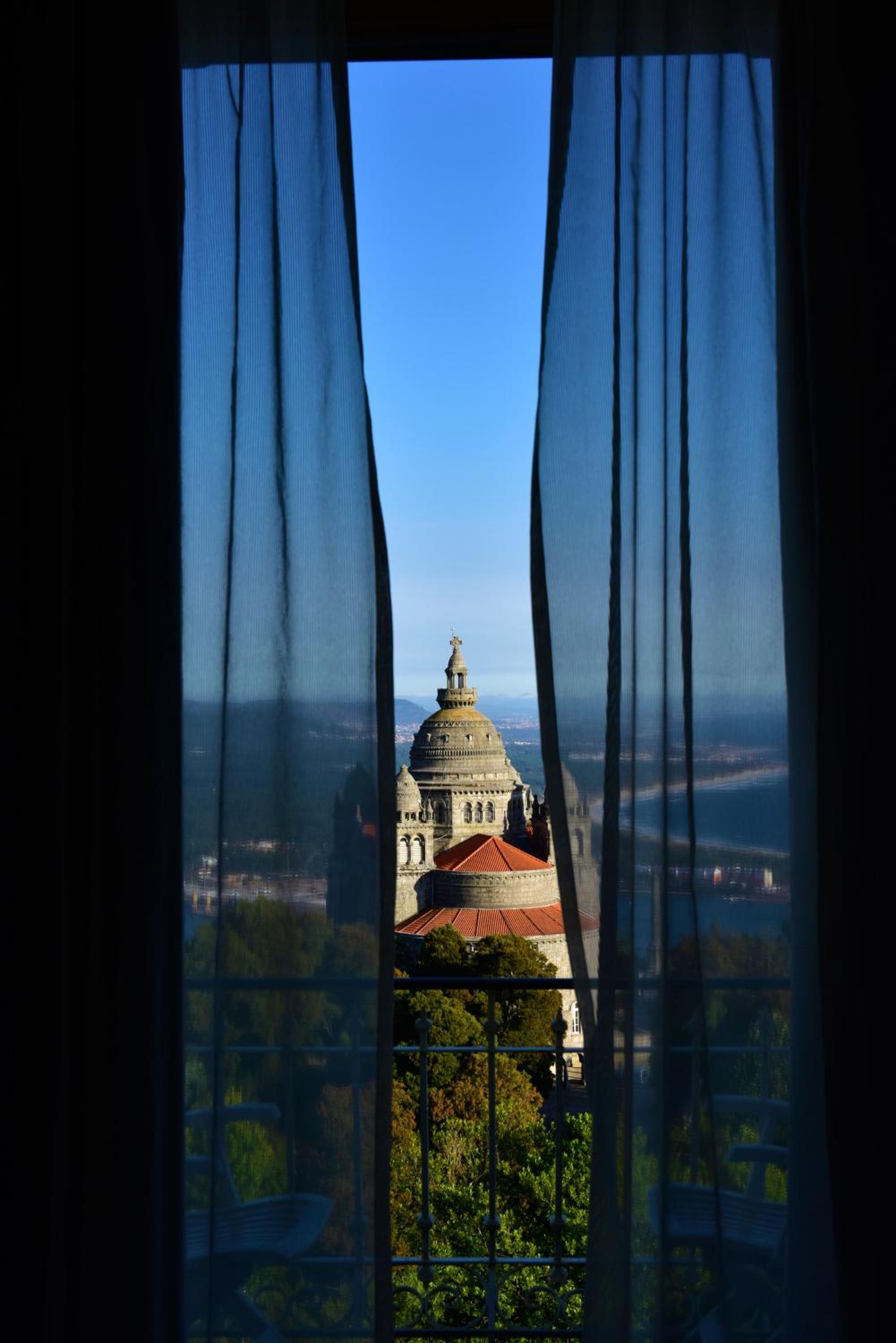 Primeiramente, o edifício é lindíssimo e localizado num ponto de elevada altitude, permitindo uma vista fantástica sobre Viana, sobre o rio Lima e o oceano, além de estar mesmo em frente ao Santuário de Santa Luzia.