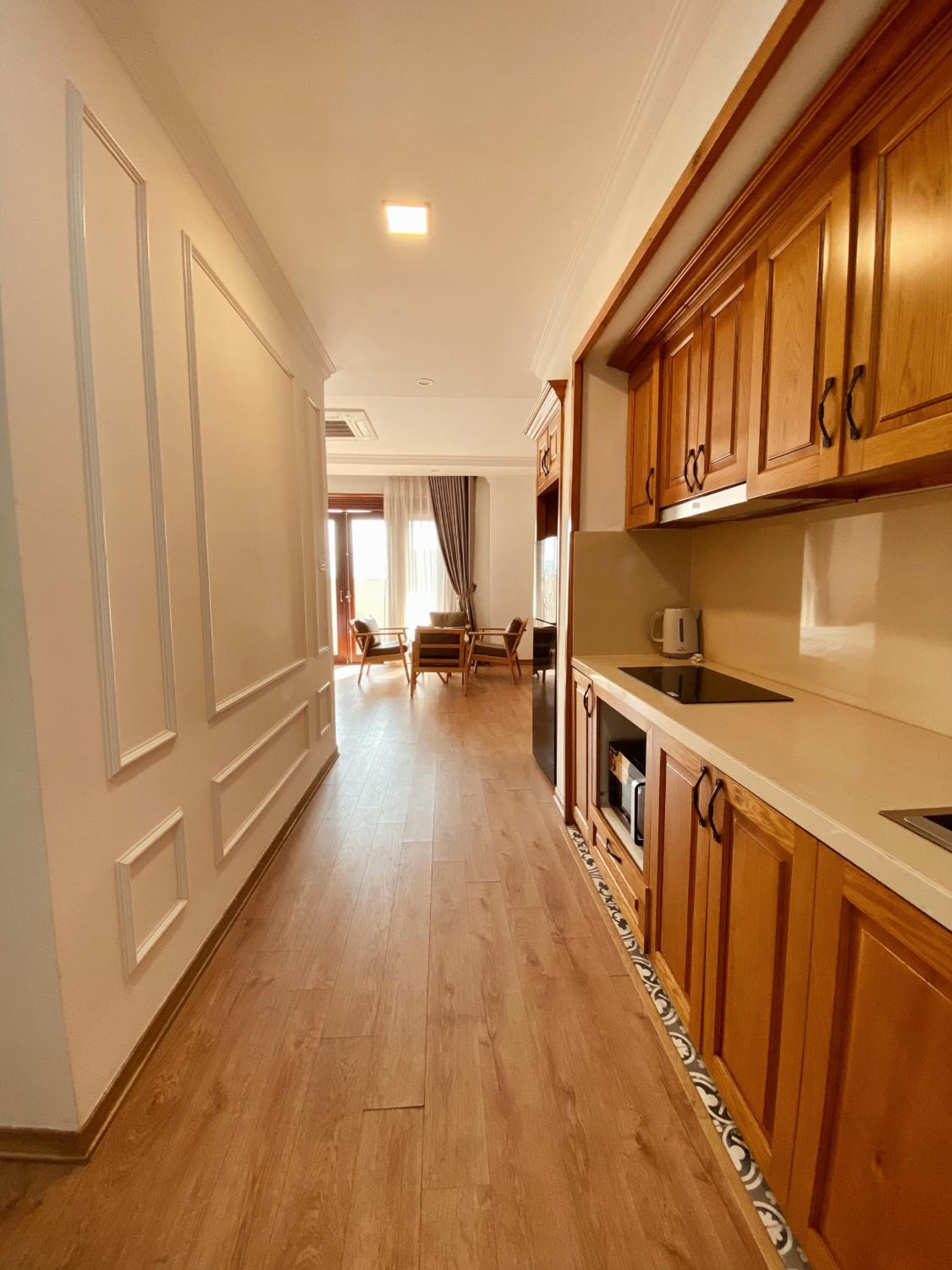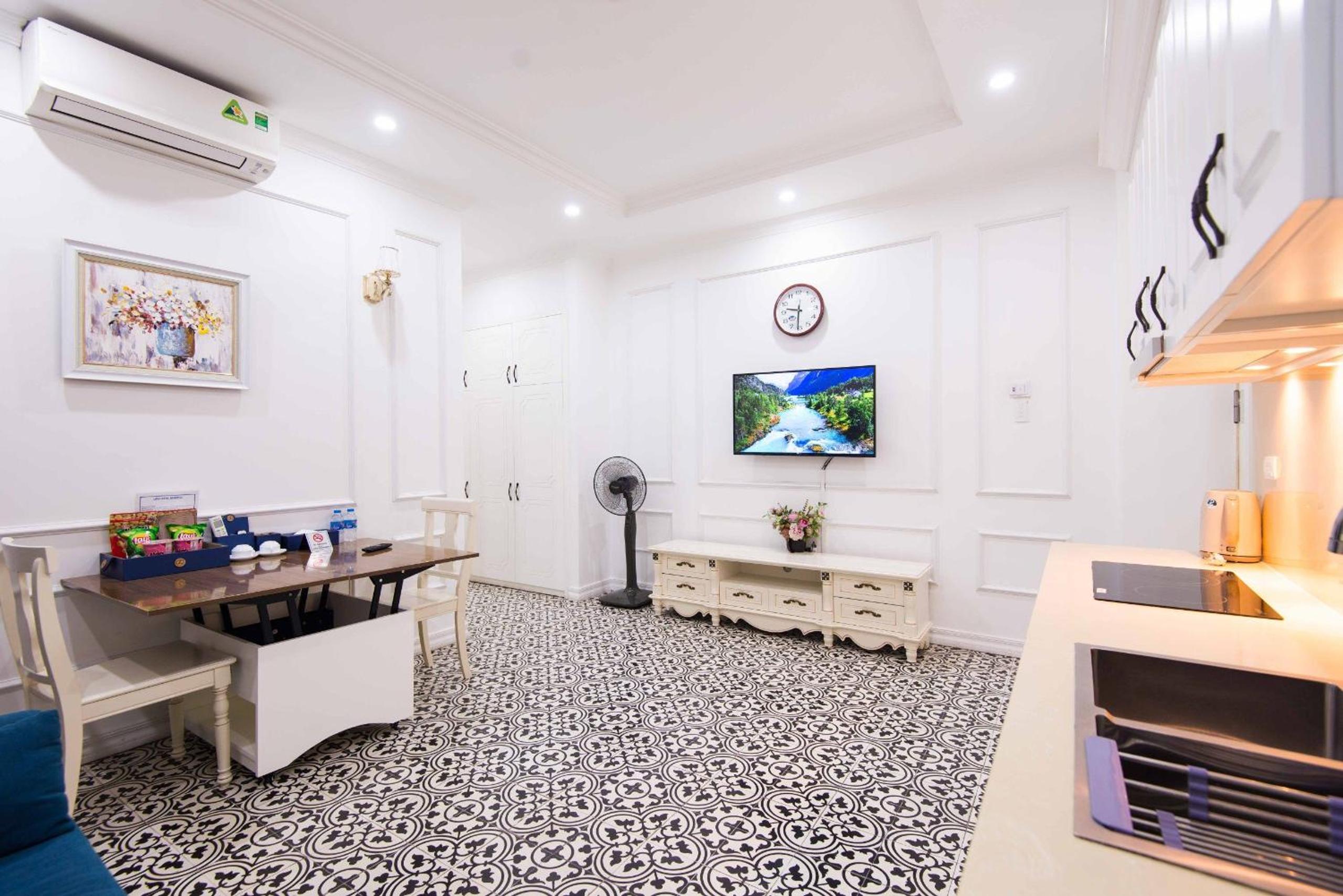 A huge apartment suite with all facilities working well. Excellent water pressure in the shower, good modern AC, and a comfortable bed. The room is quiet - we didn’t hear any traffic noise at all. Staff at reception were very helpful and even let us use the printer for printing visas for our flight. The location is close to one of Hanoi’s bus terminals, which is why we used it, and it is a very comfortable overnight stop if you are planning onward journeys - it was a quick journey to the airport, too.