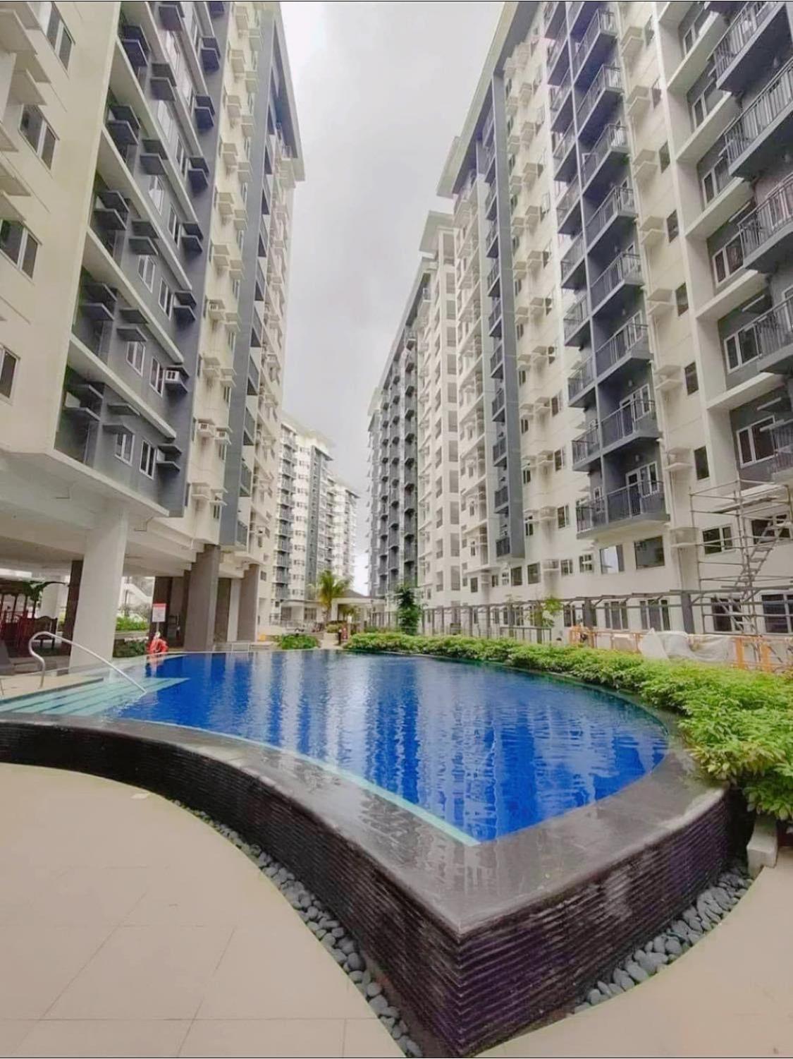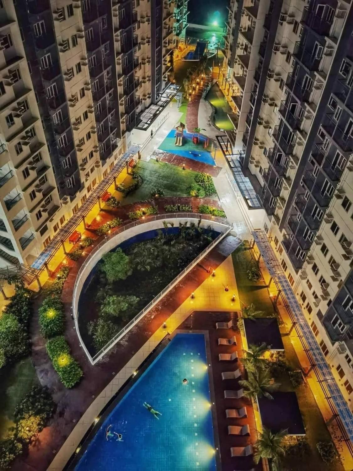There's no parking in front of the building since it's residents parking only. You will have to park at the SM. Living room window view is a wall and bedroom window view is other towers. The pool could use a bit of cleaning.