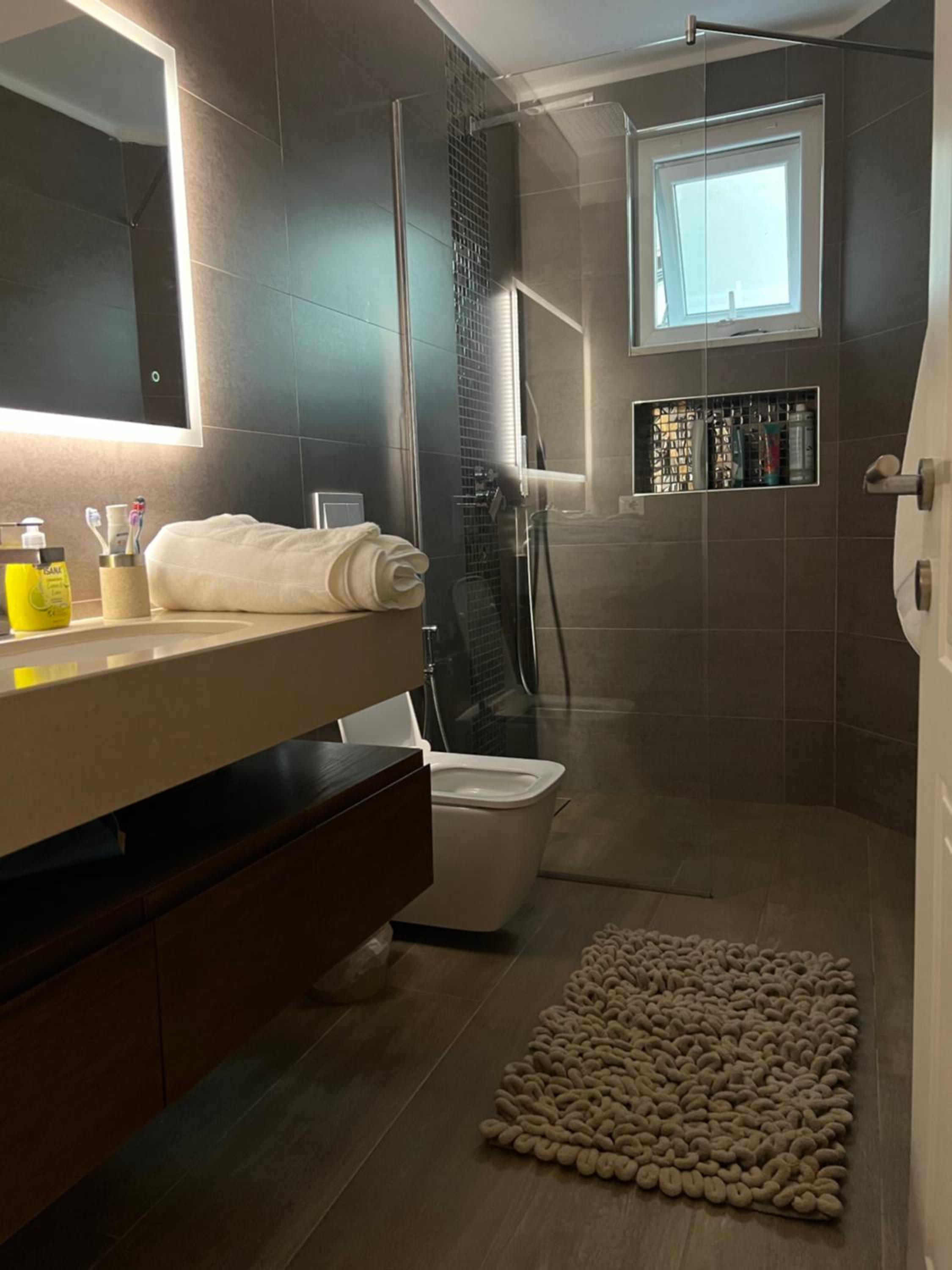 The apartment is spacious, modern and cozy at the same time. It has all facilities that someone may need in the kitchen, toilet and the rooms. The tv has already a Netflix account- very useful. Rooms are equipped with AC and really liked the walk in closet. Location is also perfect.