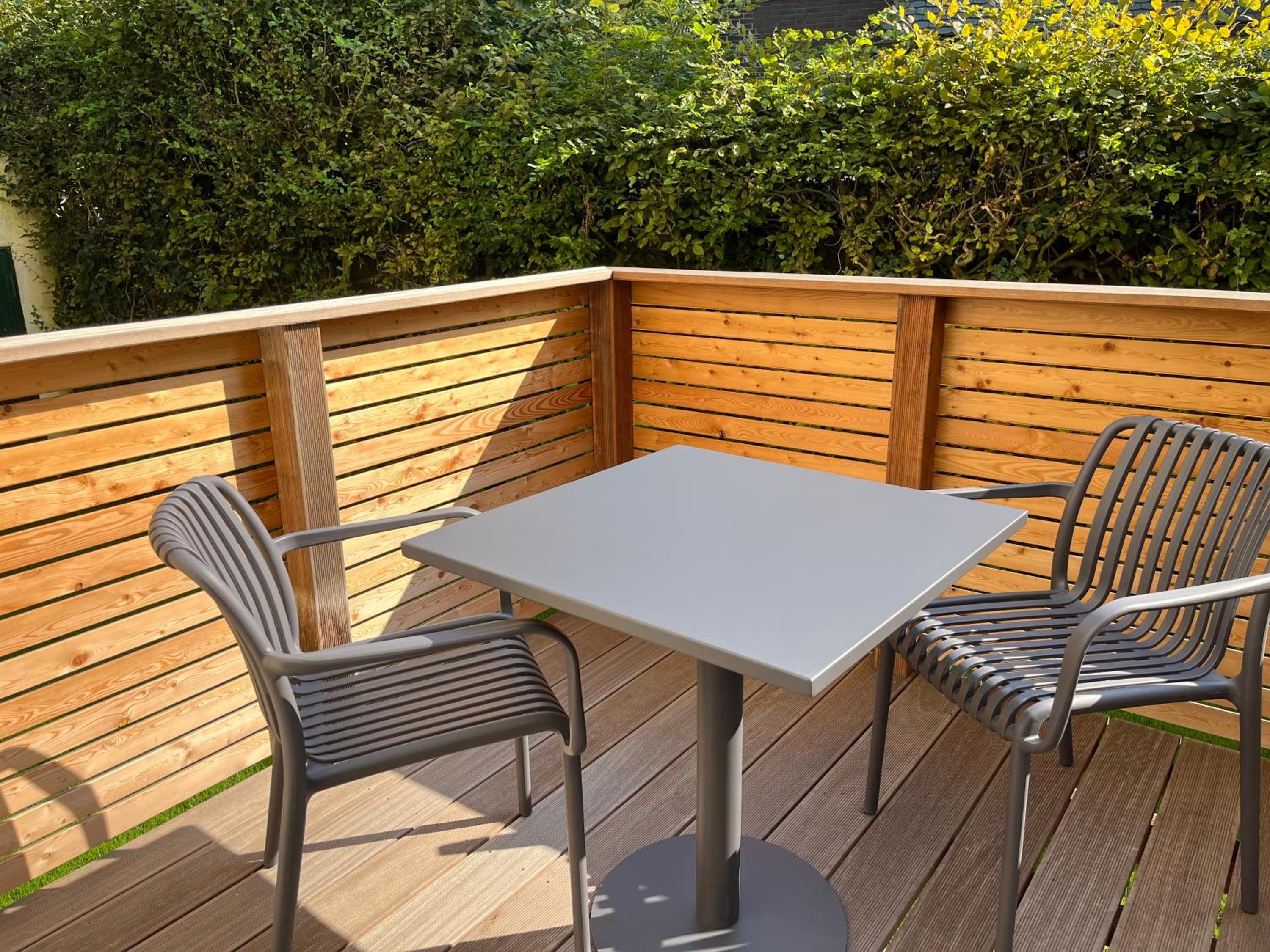 Guests can enjoy modern amenities including air conditioning, a fully equipped kitchen, and a private bathroom with a walk-in shower. The rooms also offer stunning garden views and a balcony for relaxation.