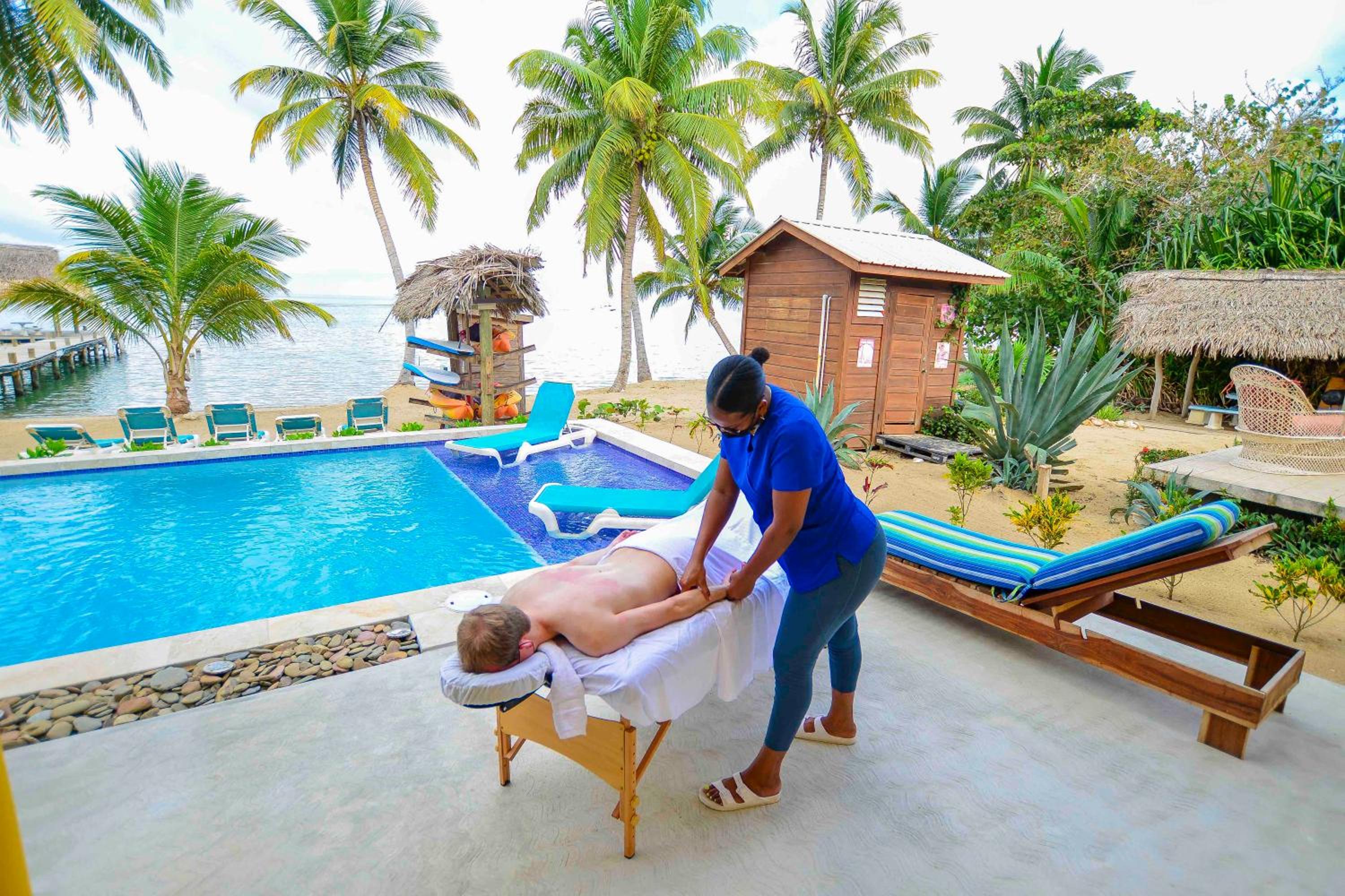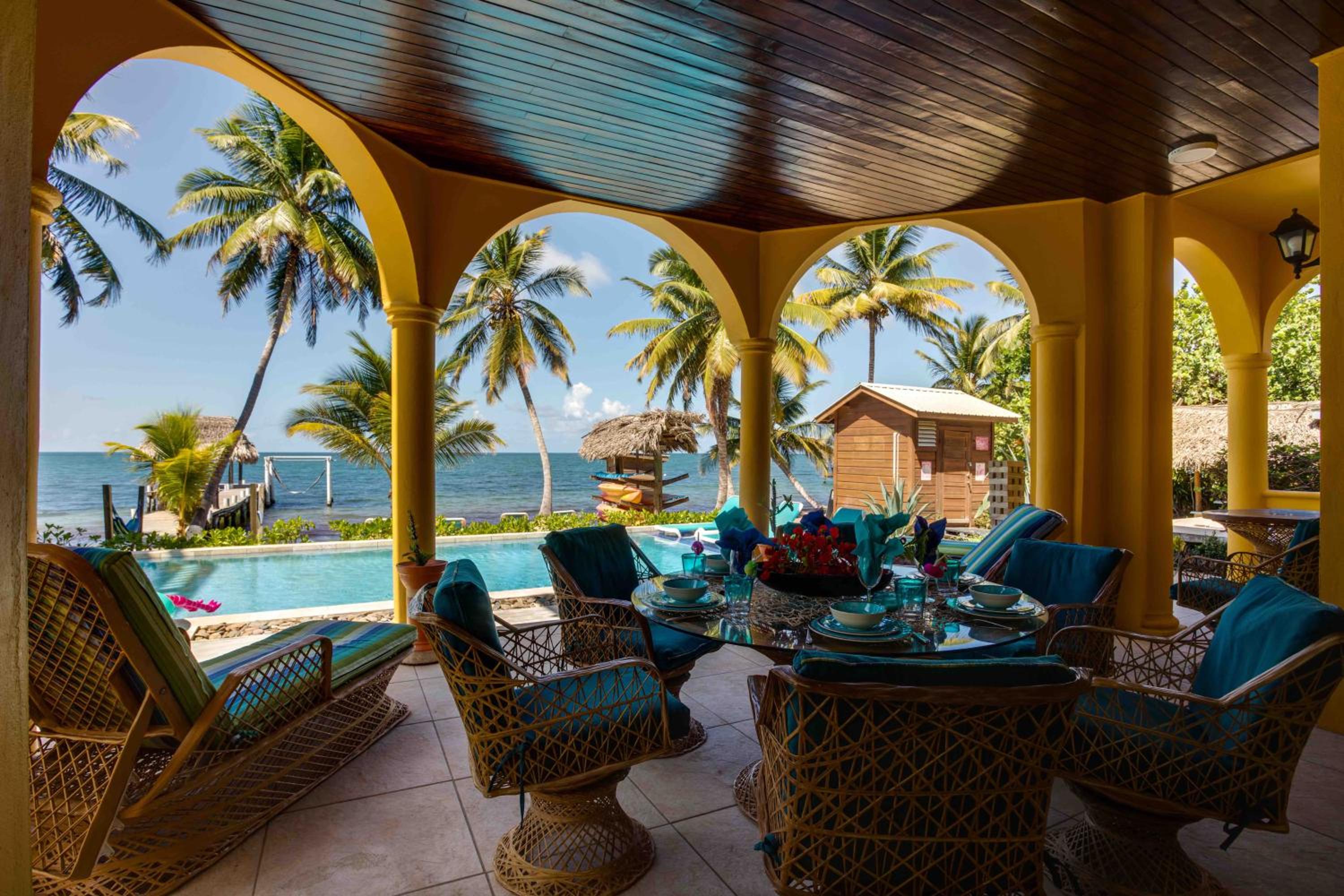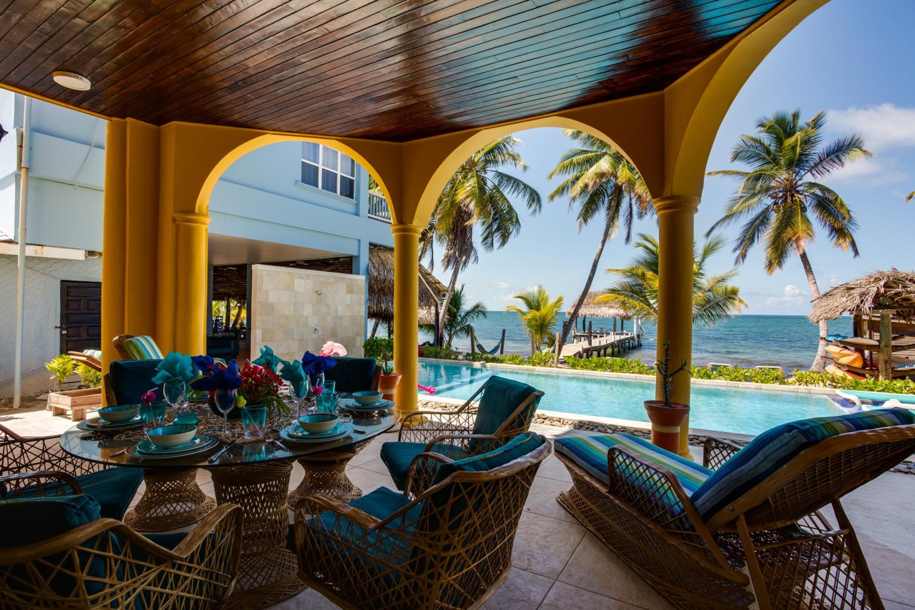 Indulge in the luxury of a private beach area and stunning sea views at Blue Parrot Beach House and Villas in Hopkins.