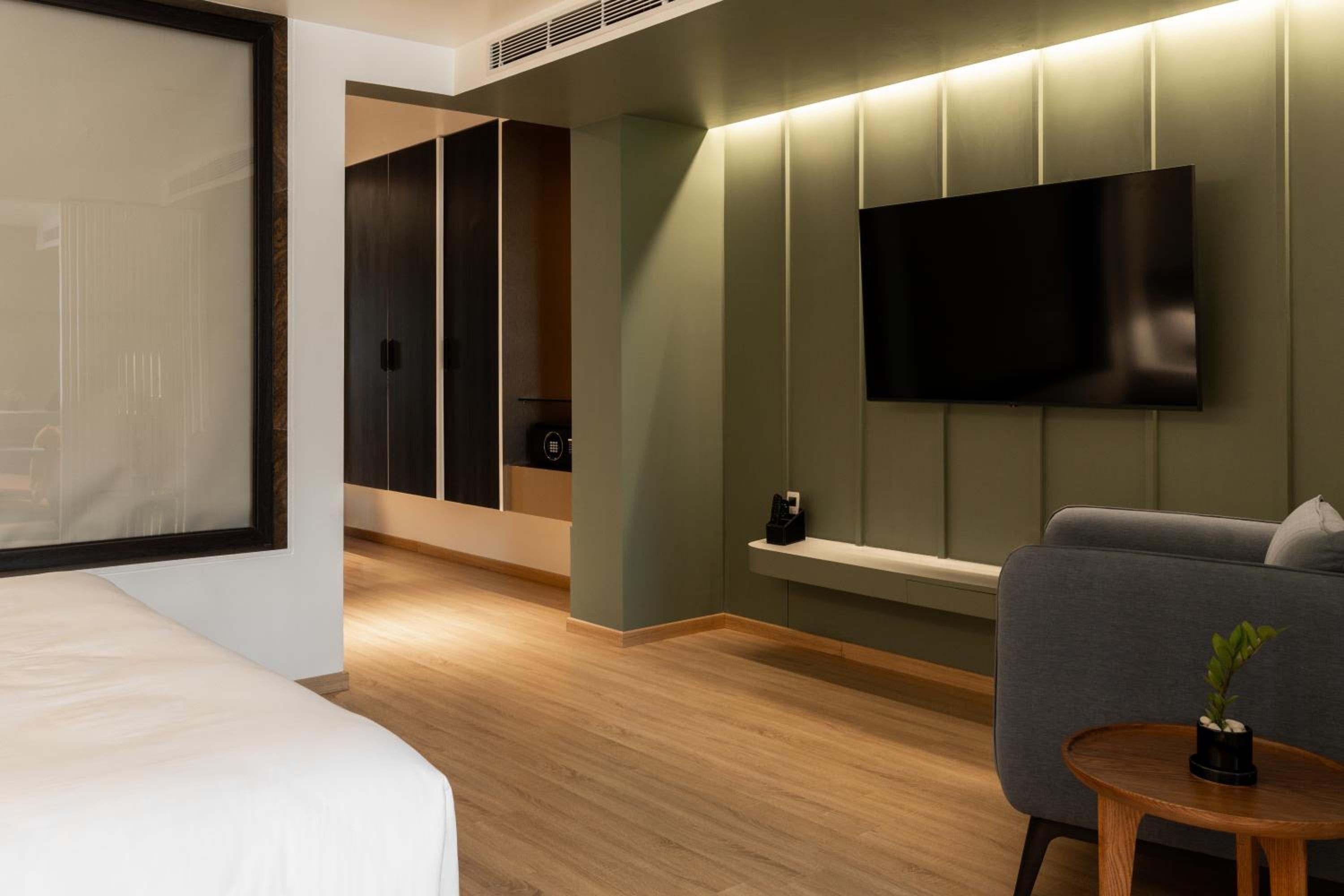 Guests can enjoy air-conditioned rooms equipped with modern amenities like a coffee machine, fridge, and flat-screen TV.