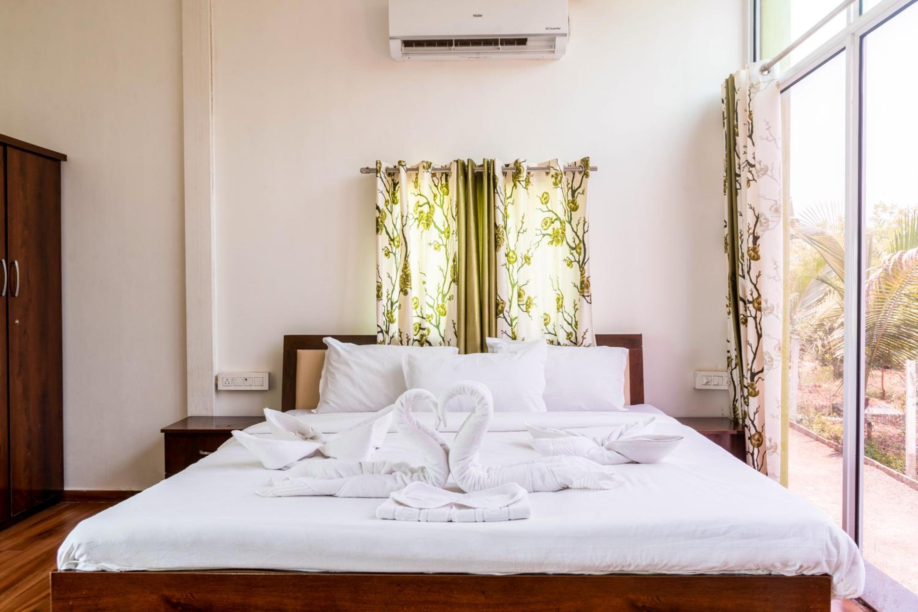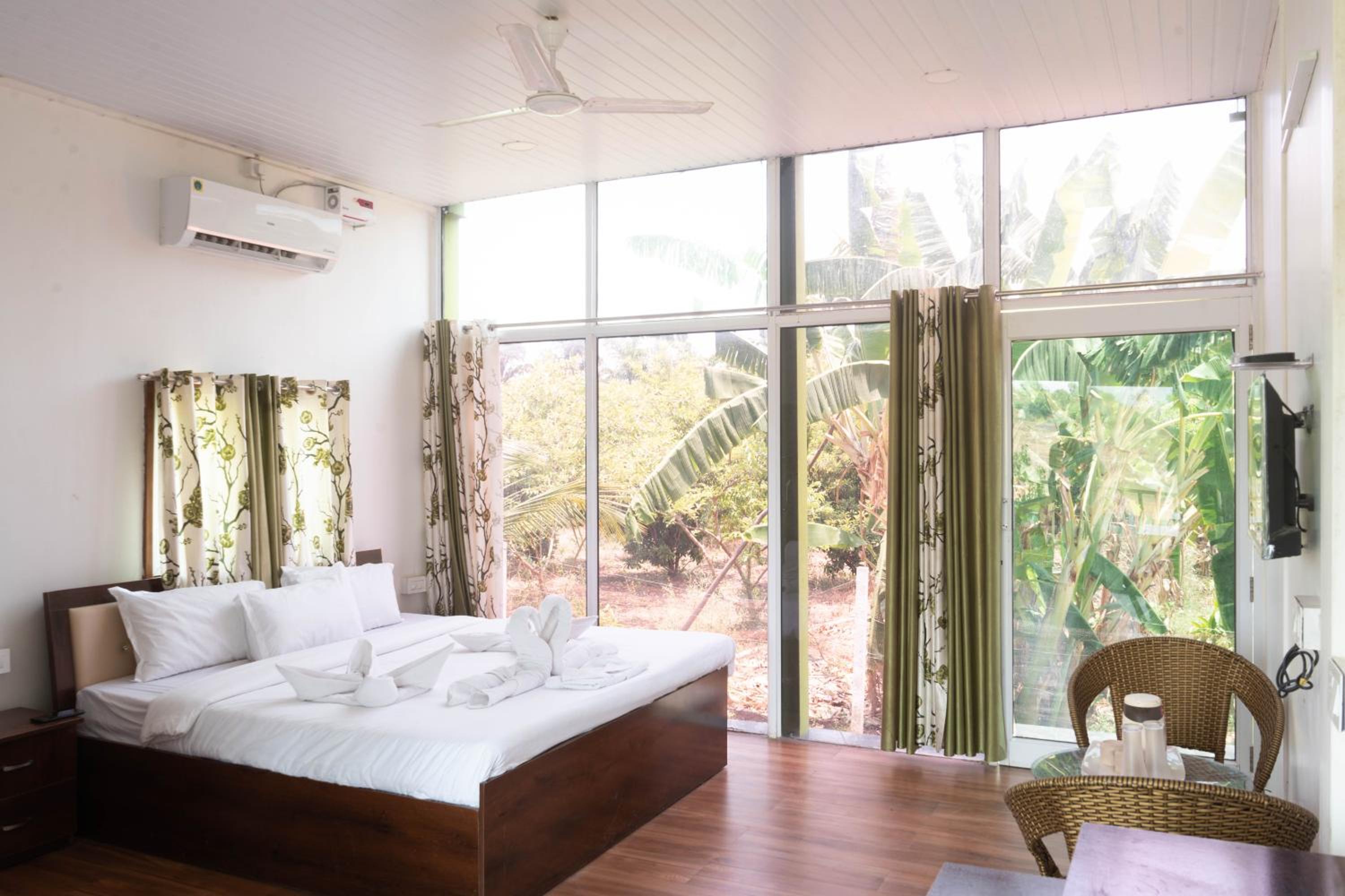 Relax in style in rooms featuring balconies, flat-screen TVs, and complimentary toiletries for a comfortable stay. The modern amenities and cozy ambiance ensure a relaxing retreat amidst nature.