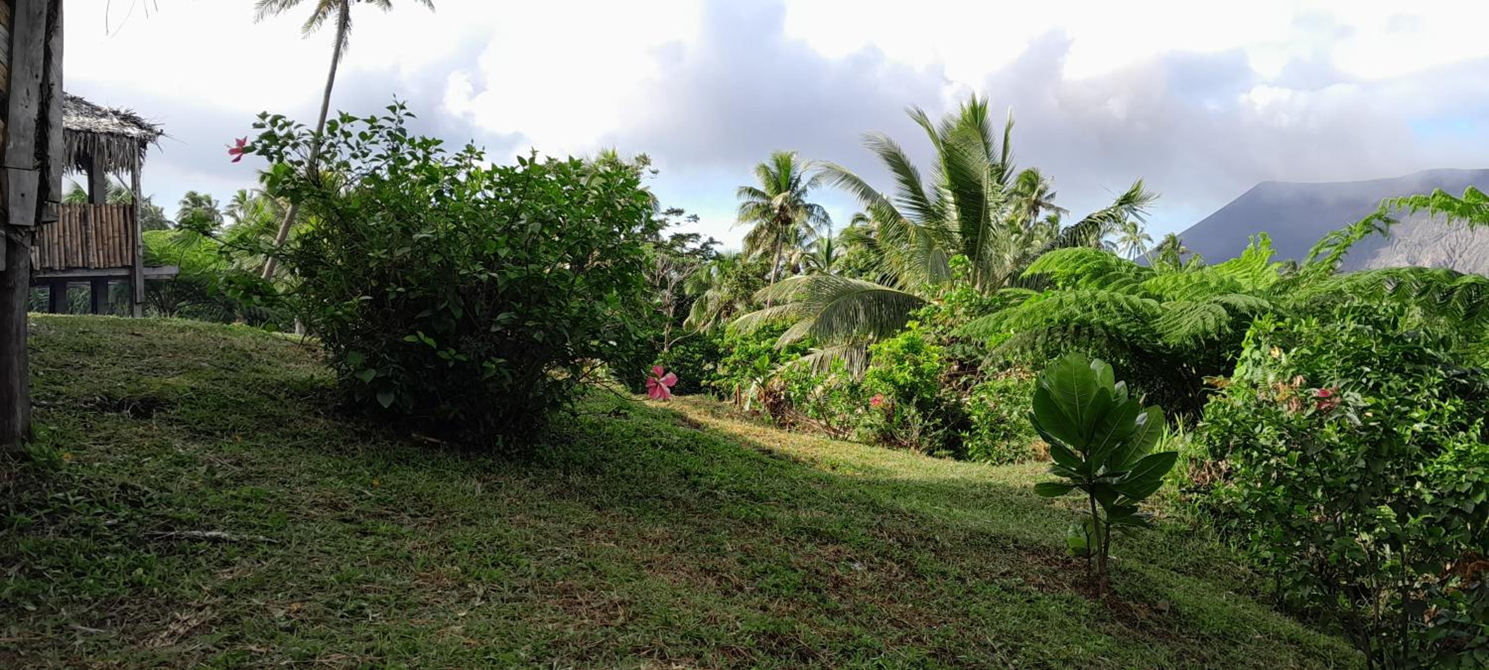 Located on a hill in the valley. Down the hill runs a river which you will hear add to this the regular rumbling of the Yasur Volcano and the extremely green jungle that surrounds the volcano you can imagine what the world would have looked like Millions of years ago. All that was missing was the Dinosaurs 🦖.
