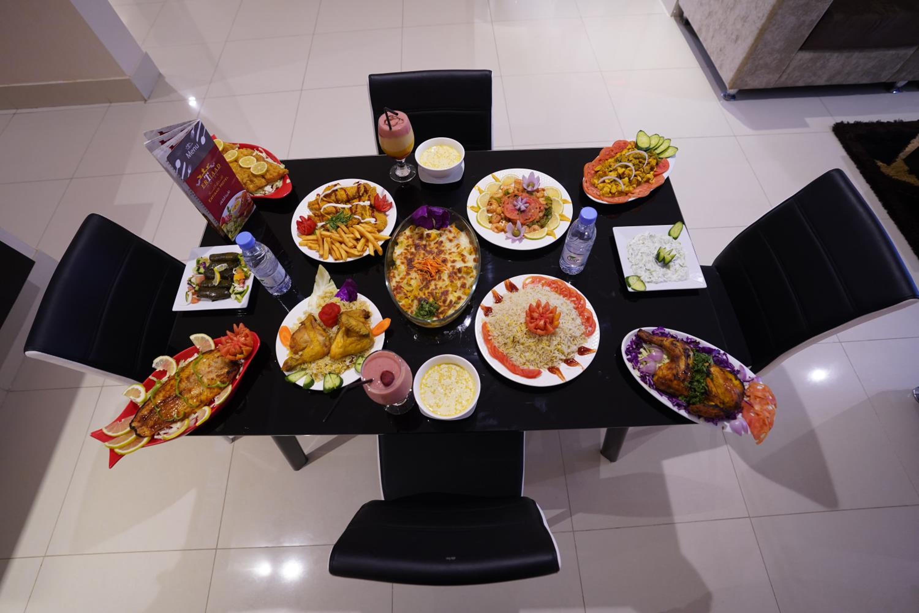 Start your day with an à la carte, continental, or American breakfast served daily. Additionally, guests can unwind at the bar or utilize the business center during their stay. - Book now for an unforgettable experience at Hotel and Apartments Al Raqi Mall Artiaad!