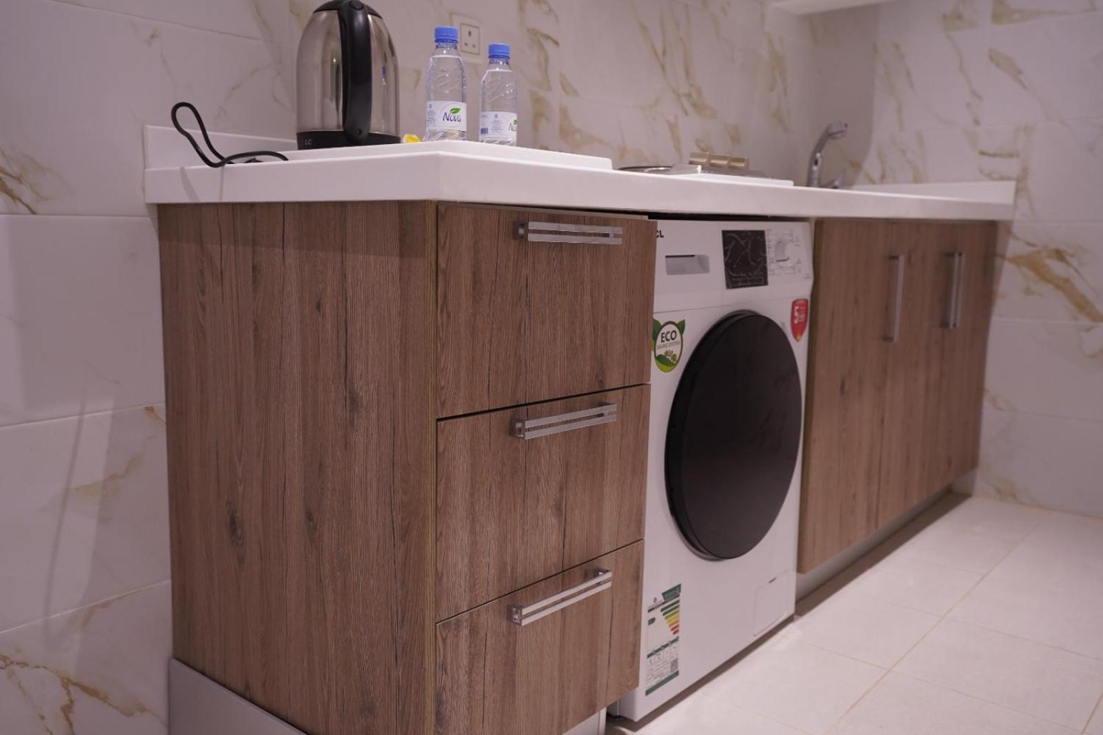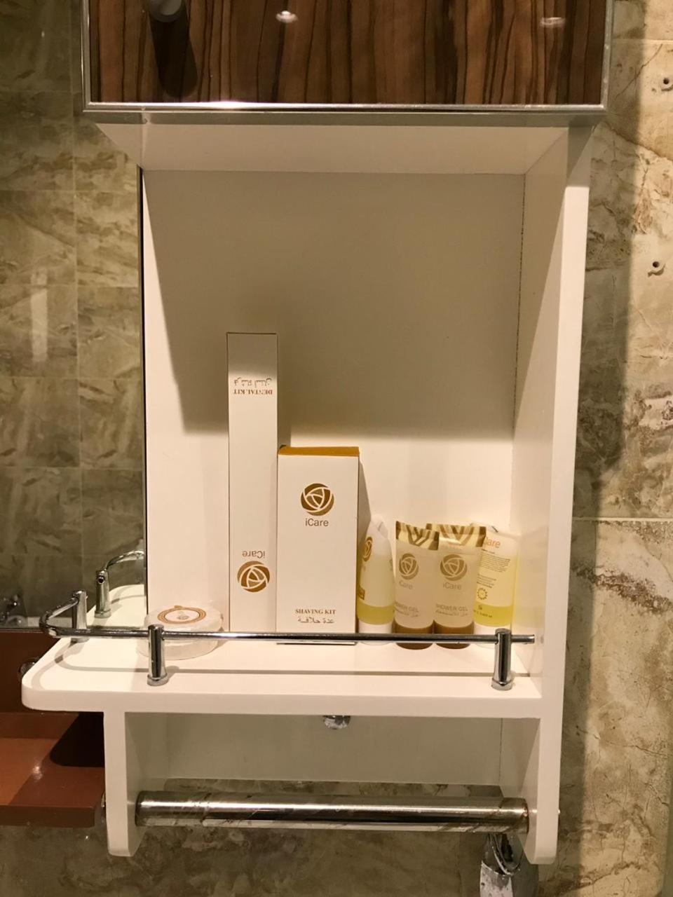 فقط موجود موقد وثلاجه وأدراج فارغه لحد دورات المياه متهالك يوجد رائحة قويه لماده تنظيف قويه ومزعجه الفوط غير نظيفه