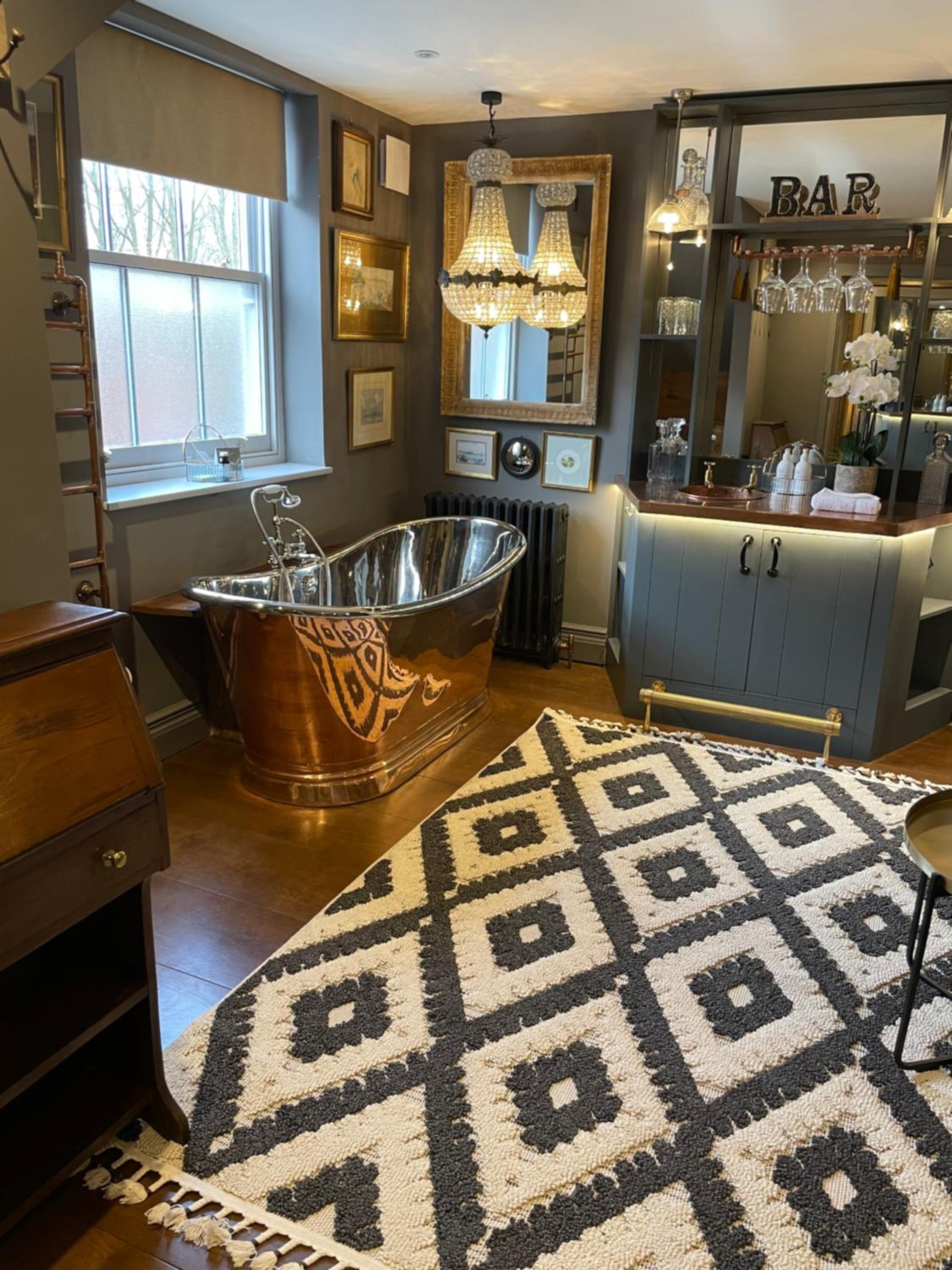 The room was beautiful and it was in an ideal location. The copper bathtub was stunning