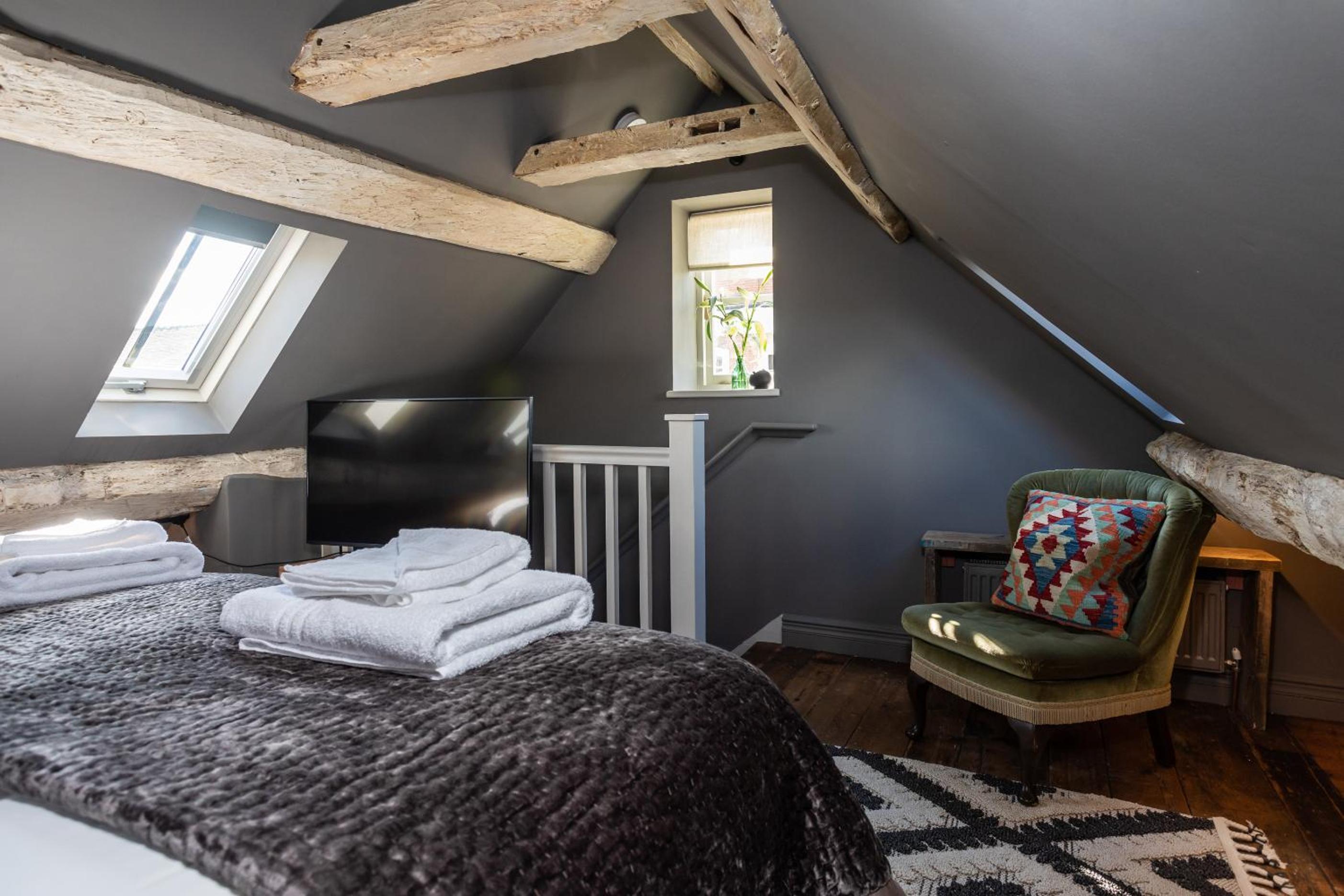Toilet facilities in a communal space, fridge access in eaves, inaccessible tea/coffee making in eaves, teamaking upstairs but water supply downstairs, had to get out of bed to switch lights on/off, proximity to late night noisy pubs/clubs, limited crockery and cutlery.