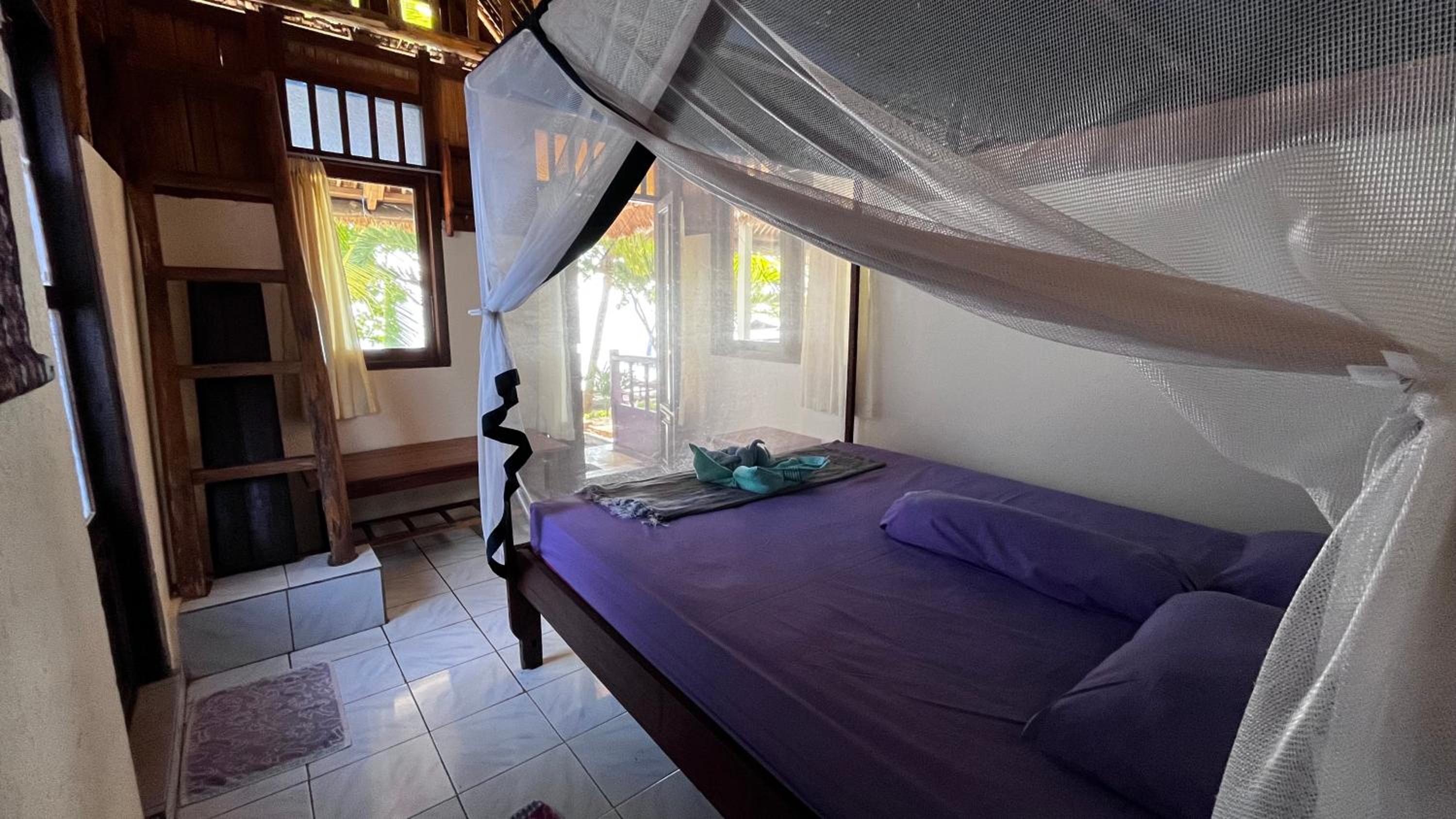 Nice simple accomodation with nice places to chill. Nice host. Easy to arrange boat trip. Dinner together with other guest (100k pp). Not all rooms (newer ones) online so book with host directly.