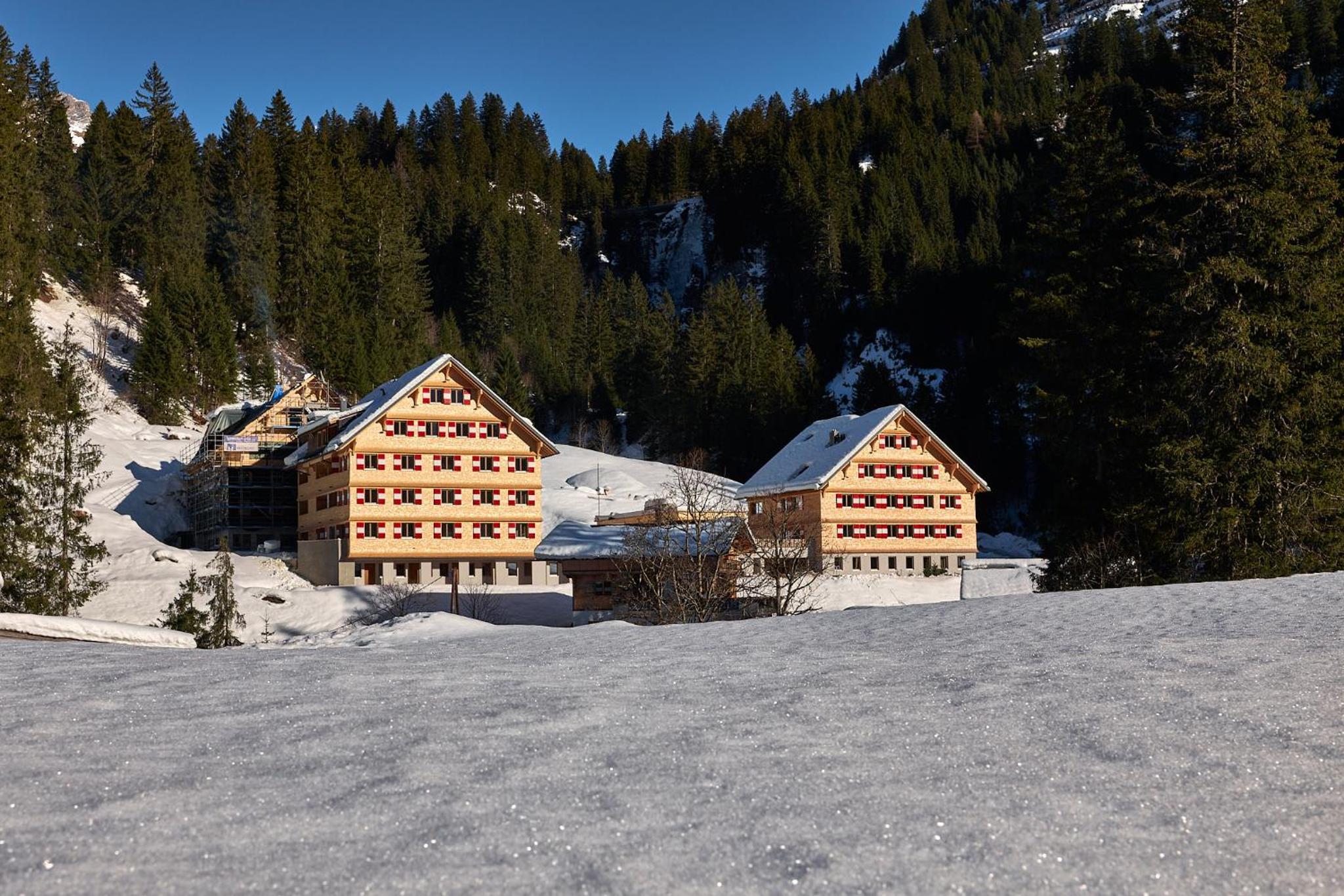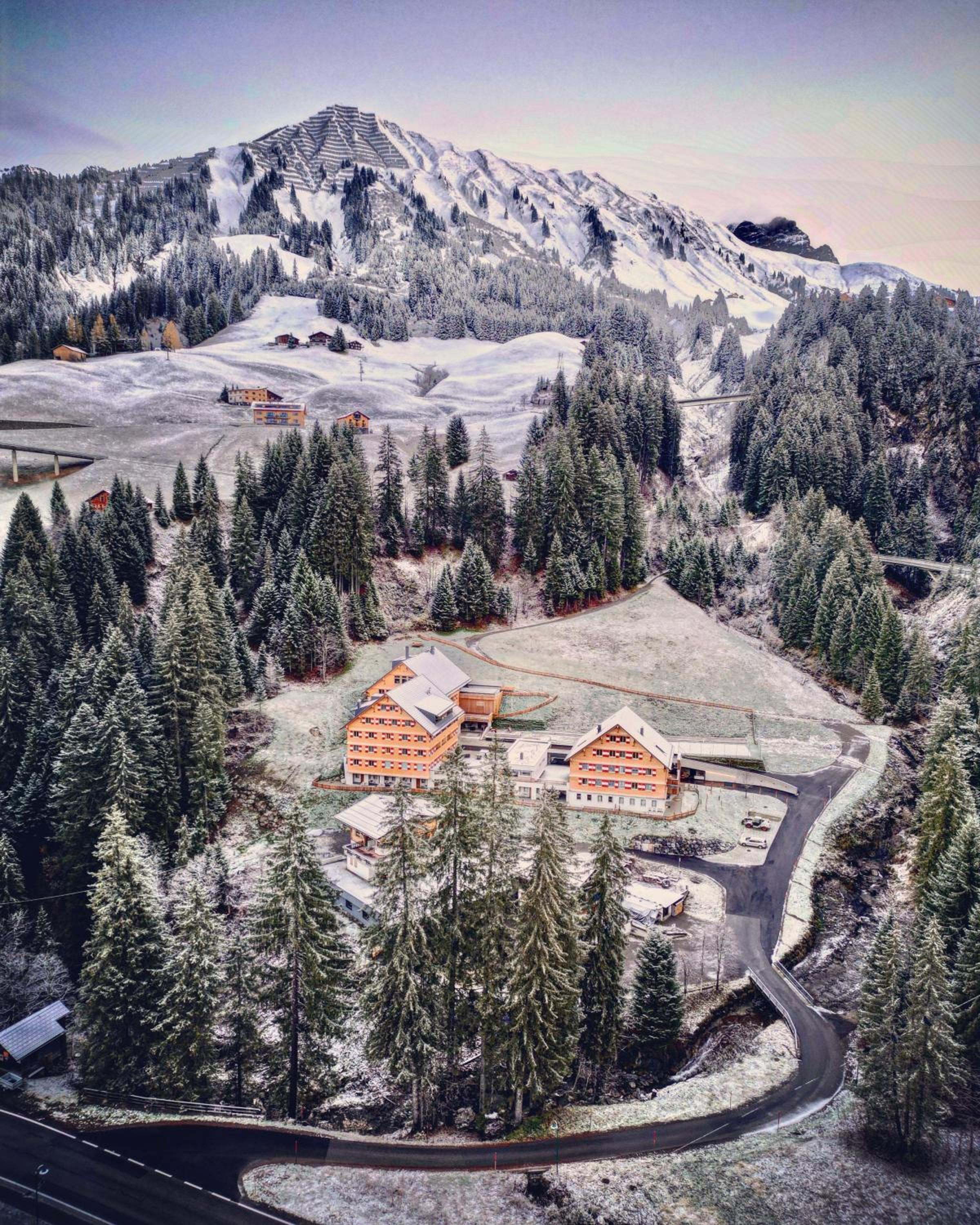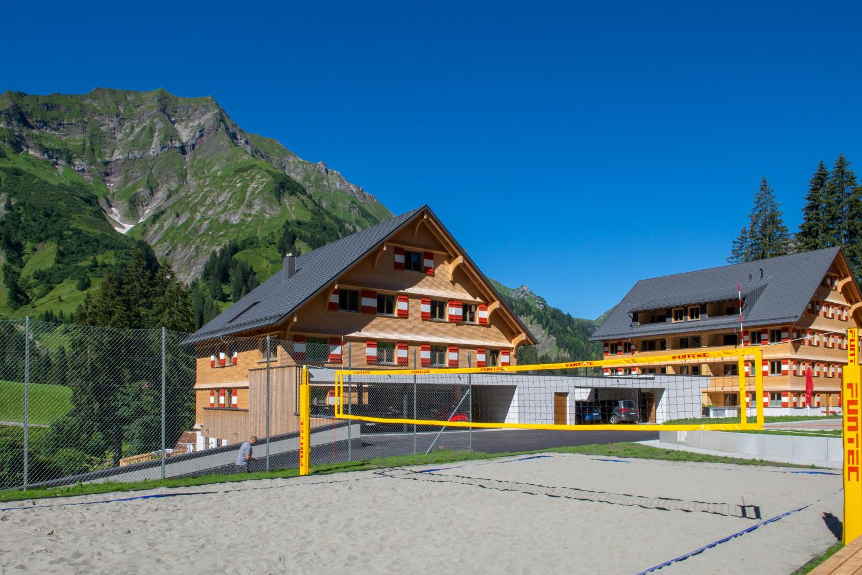 Der 2022 am Ortsrand errichtete Hotelkomplex ist in drei holzverkleidete Bauteile gegliedert, die sich in die Landschaft einfügenden "Berghäuser". Der großzügige Umgang mit gutem Holz im Innenausbau wertet Apartments und Allgemeinflächen auf. Das Auto kann in der modernen Tiefgarage bleiben, denn der Haltepunkt des Skibusses liegt nur 100 m entfernt. Die Skigebiete Lech/Zürs sind schnell erreichbar.