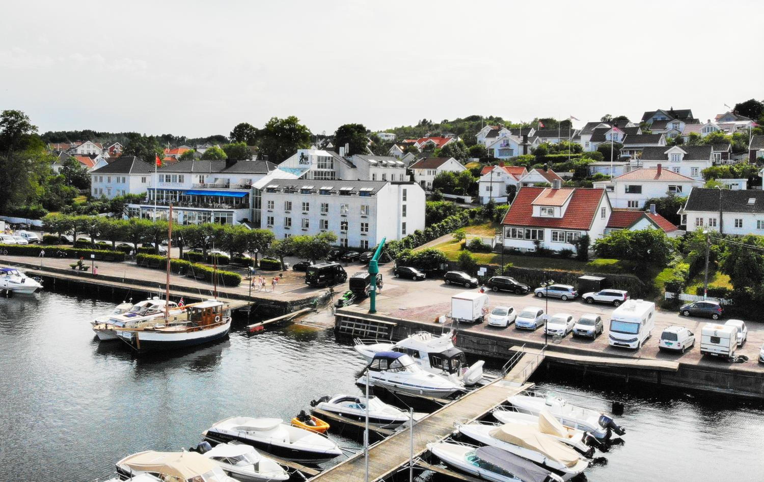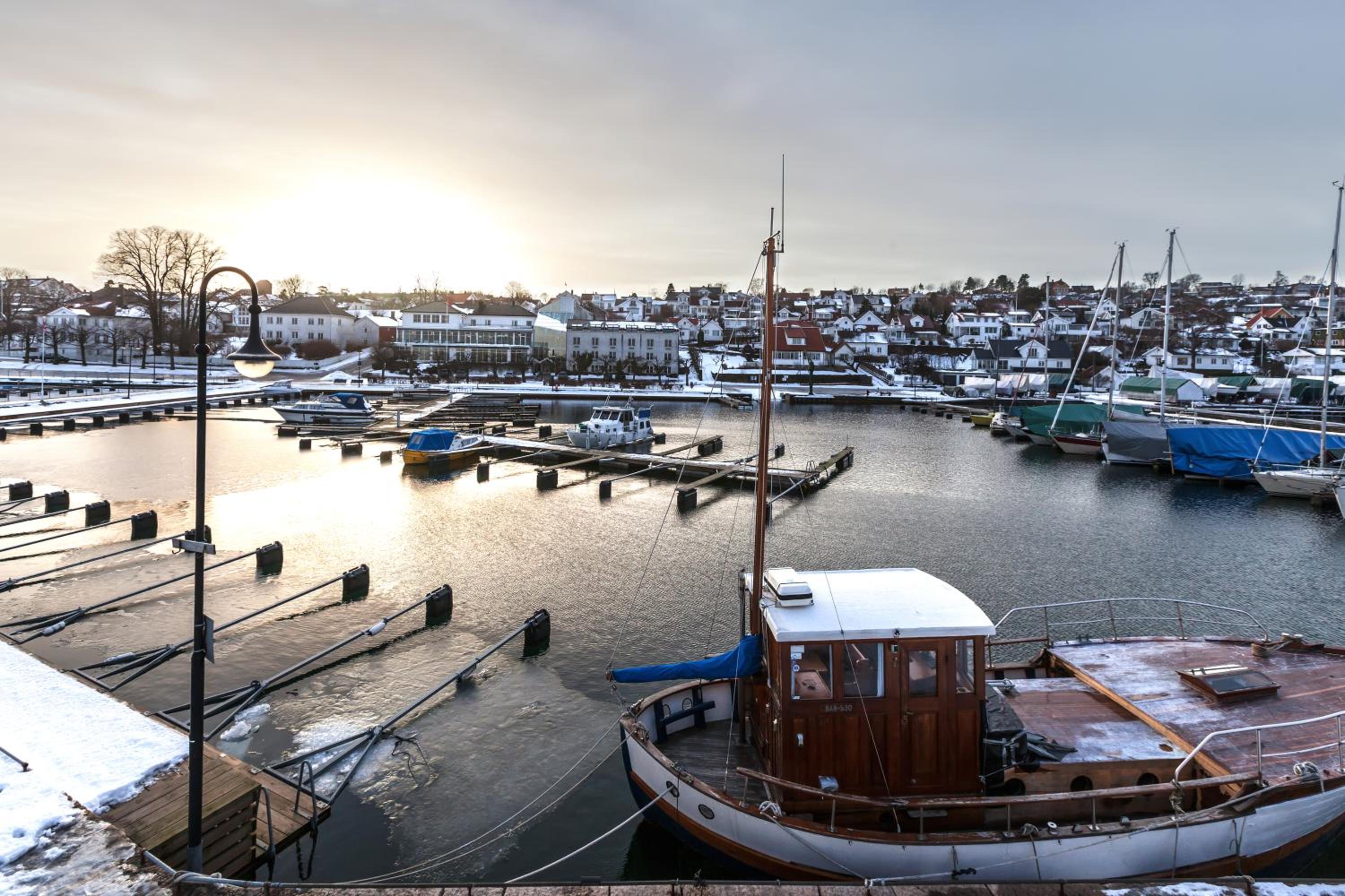 Historic Charm and Tranquility: Unwind at our bar and spacious outdoor terrace, overlooking the historic harbour. Immerse yourself in the rich cultural heritage while enjoying a peaceful and relaxing ambiance. Book your stay now for an unforgettable seaside retreat at Grand Hotel Åsgårdstrand - Unike Hoteller.