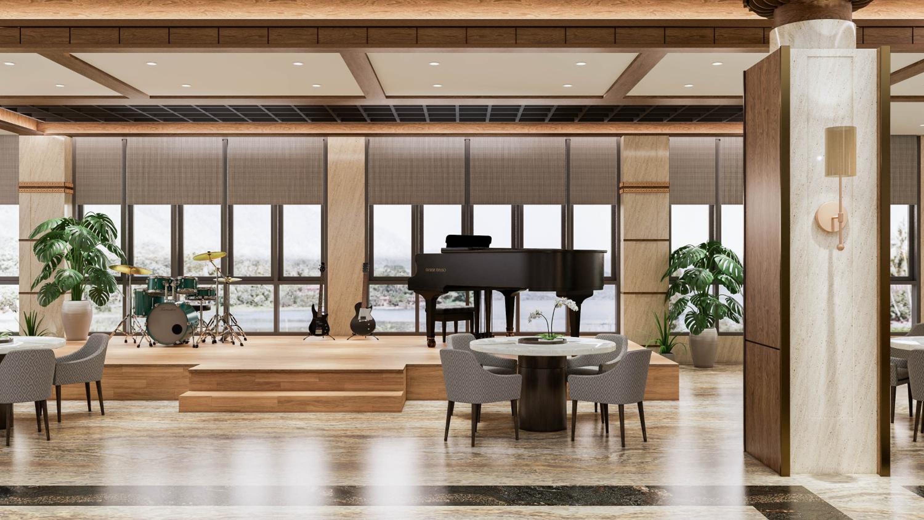 Stunning Views and Relaxation: Enjoy breathtaking mountain views from the terrace in every room and unwind by the outdoor swimming pool, surrounded by lush gardens.