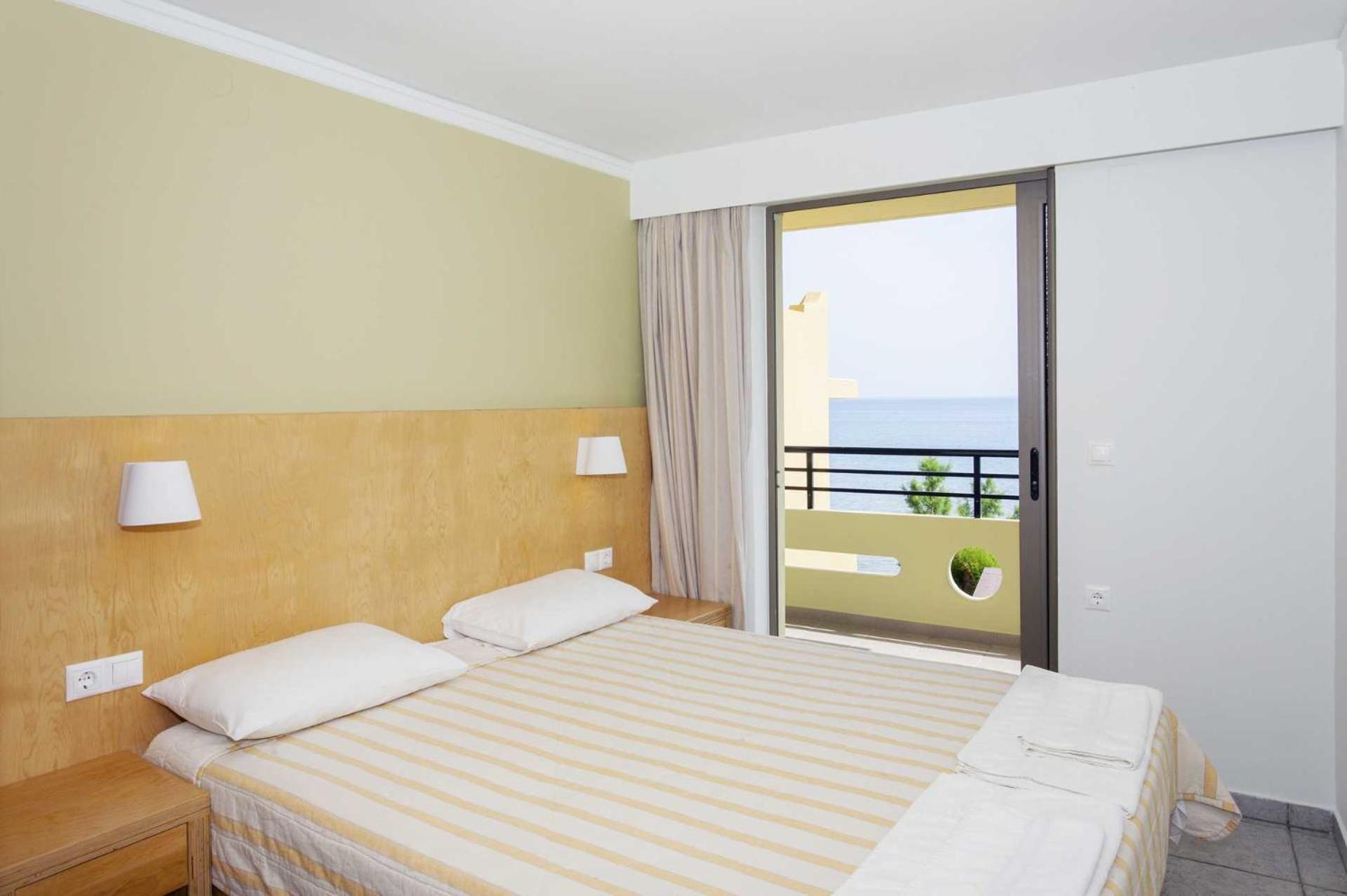 Közvetlen tengerparti szállás, mi a legjobb elhelyezkedésű apartmant kaptuk, két erkély is volt, mindkettő a tengerre nézett, tágas, kényelmes apartman, két hálószobával.