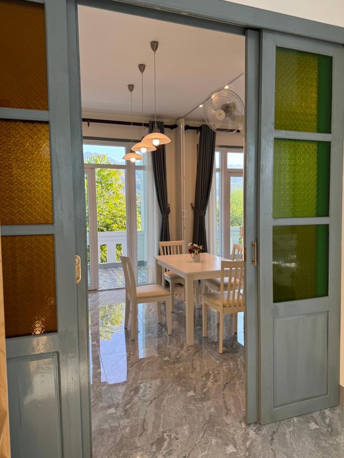 The property is outside the old town (although not too far) so you need transport to get to town but it also means that it is quieter at night. Our room was on the ground floor so we did not have views of the mountains and rice fields but we did enjoy those at breakfast on the top floor.
