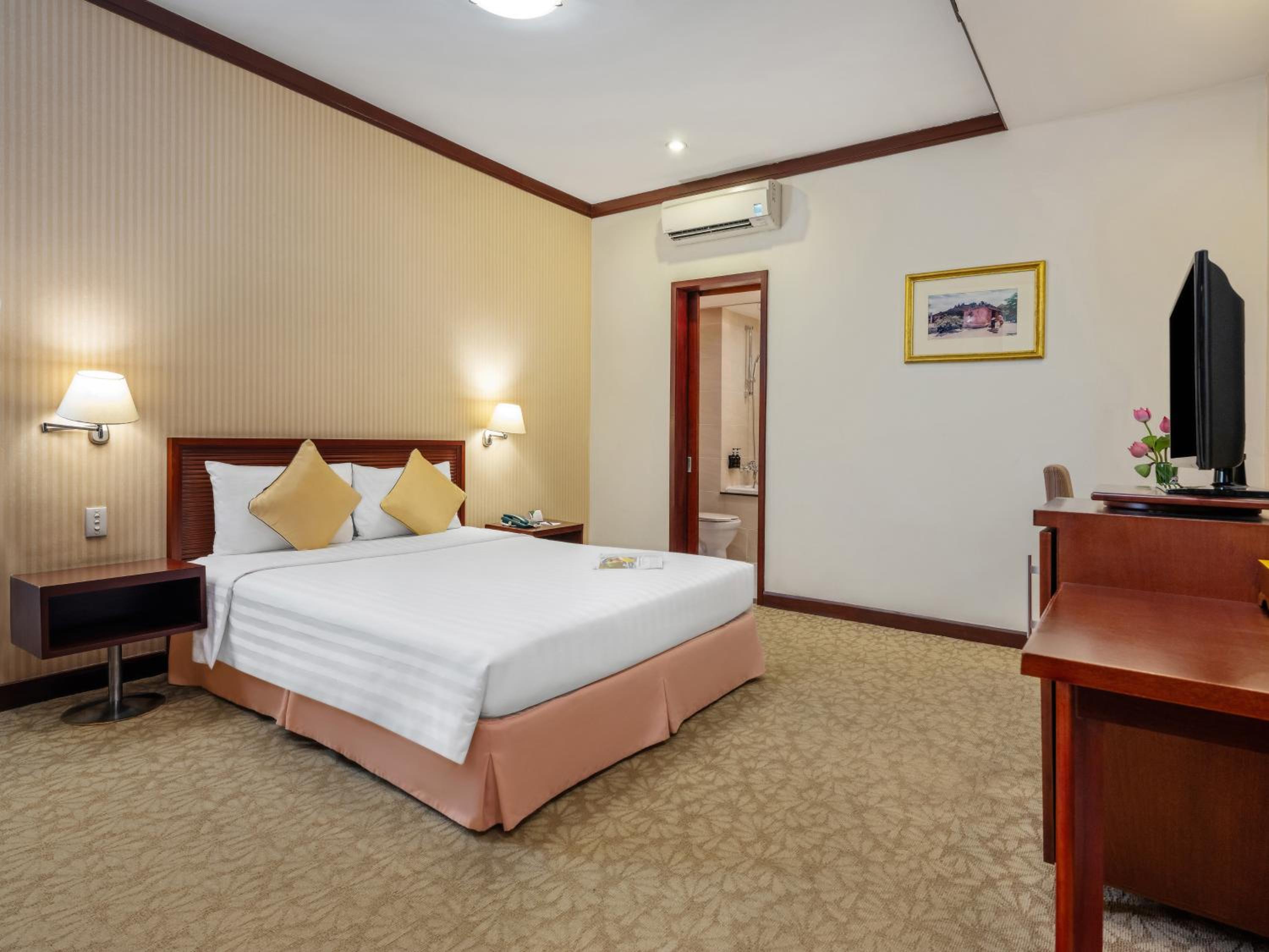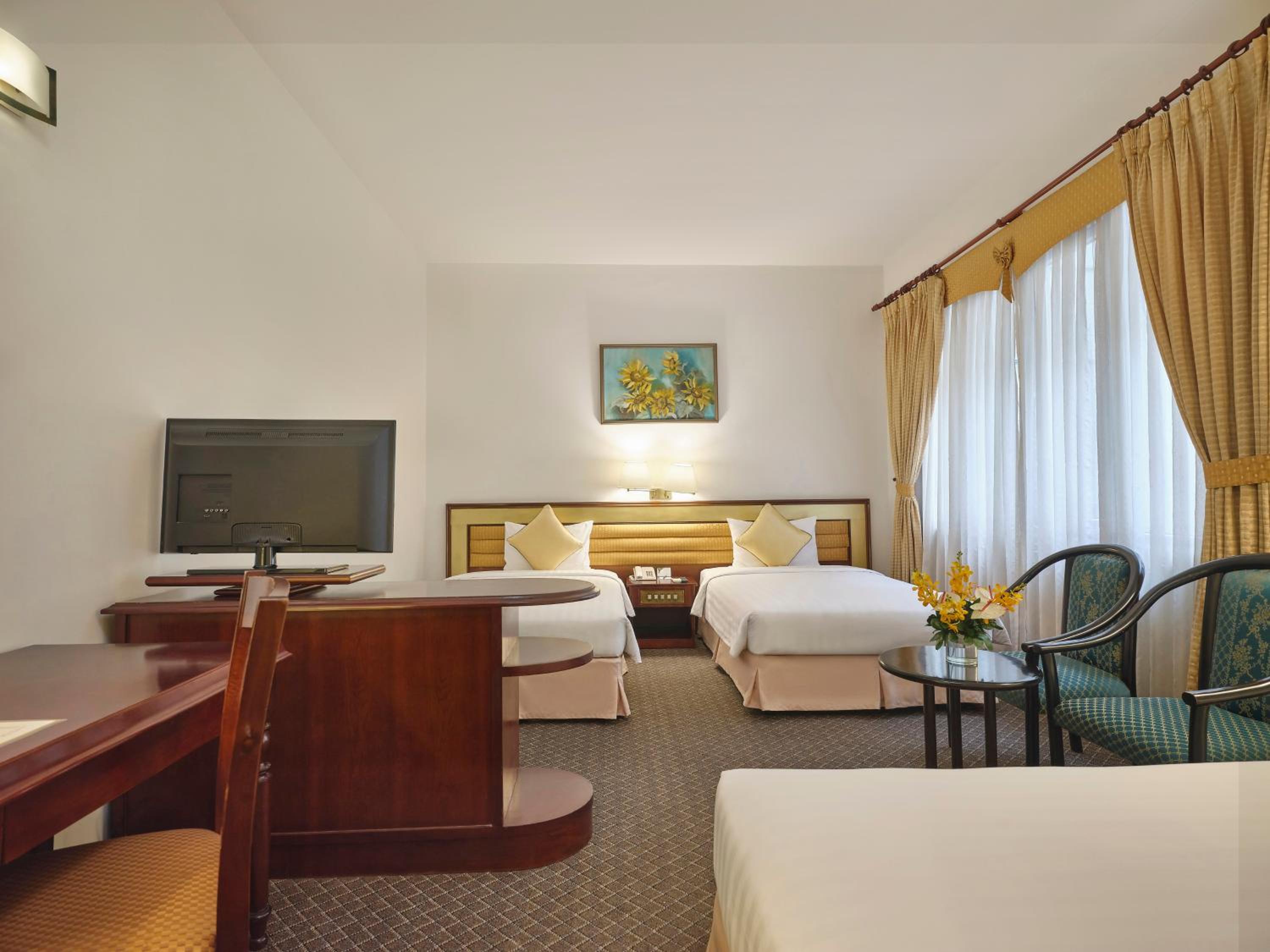 Guests can unwind and rejuvenate at the hotel's fitness centre, spa, and sauna. Indulge in soothing massages or a relaxing spa bath after a day of exploring the vibrant city of Saigon. The attentive staff is always ready to assist, providing concierge services and trip planning guidance.