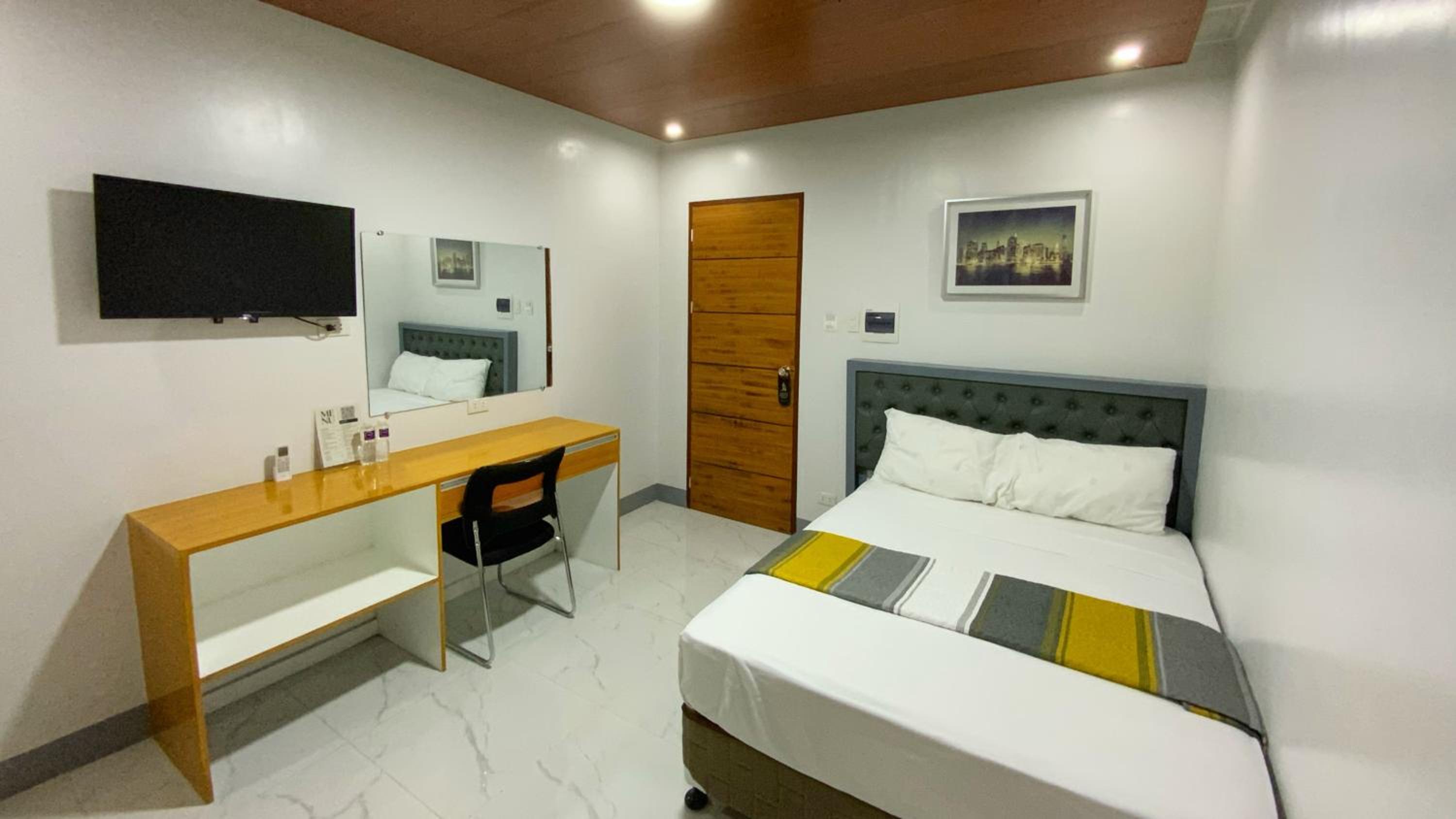 There are no bedside table and you can read this comment from previous clients with the same complain that atleast there is a bedside table and a lampshade. Just to be aware, no window in the bedroom...I like a window to atleast look out. The water in the wash sink is like only a droplet. So so so slow. They should inspect this and improve. The Internet is good during the day but at night, it is very unstable. It keeps logging you off. I hope you take note of these and make some improvements because it is a nice building.