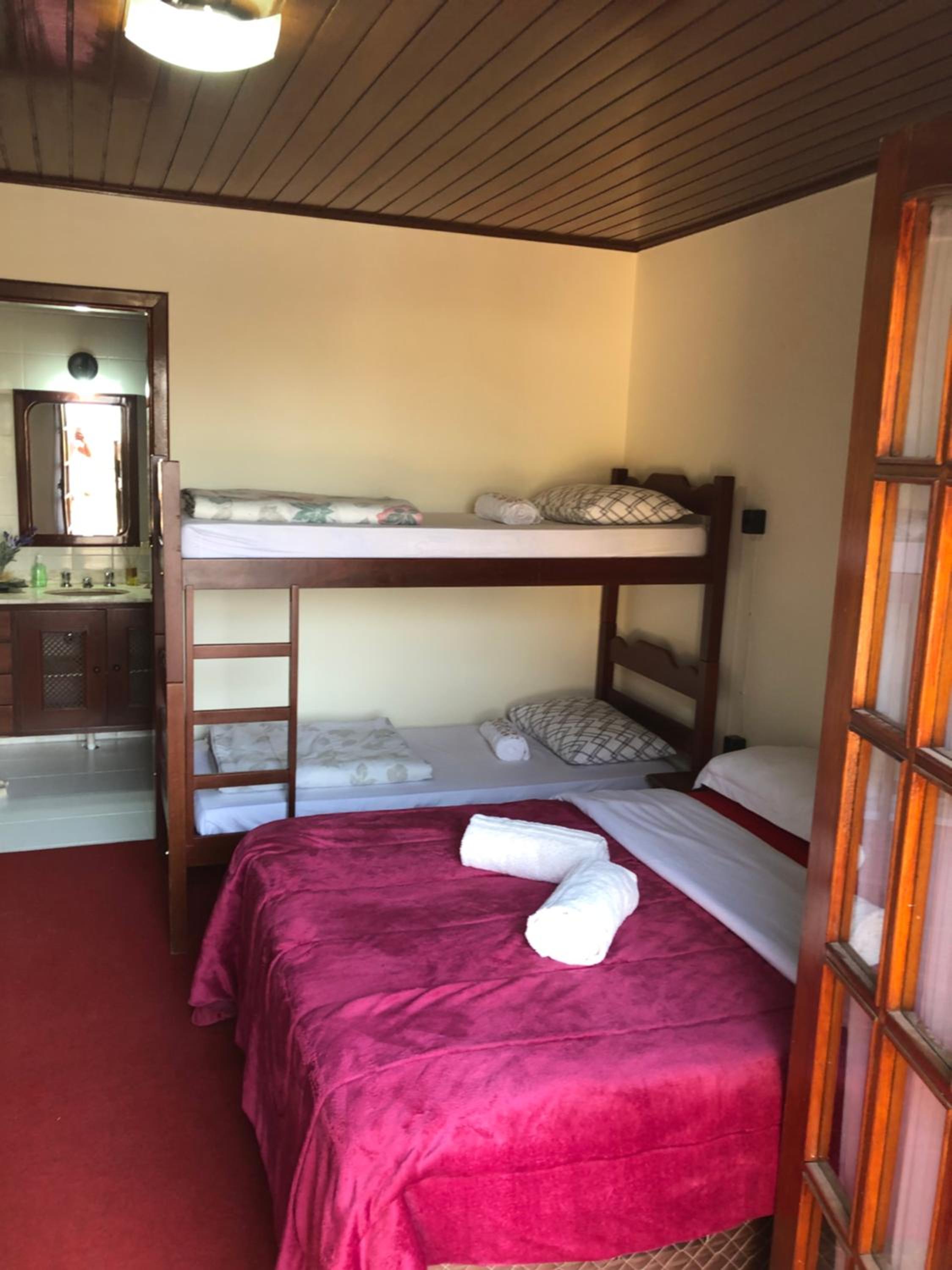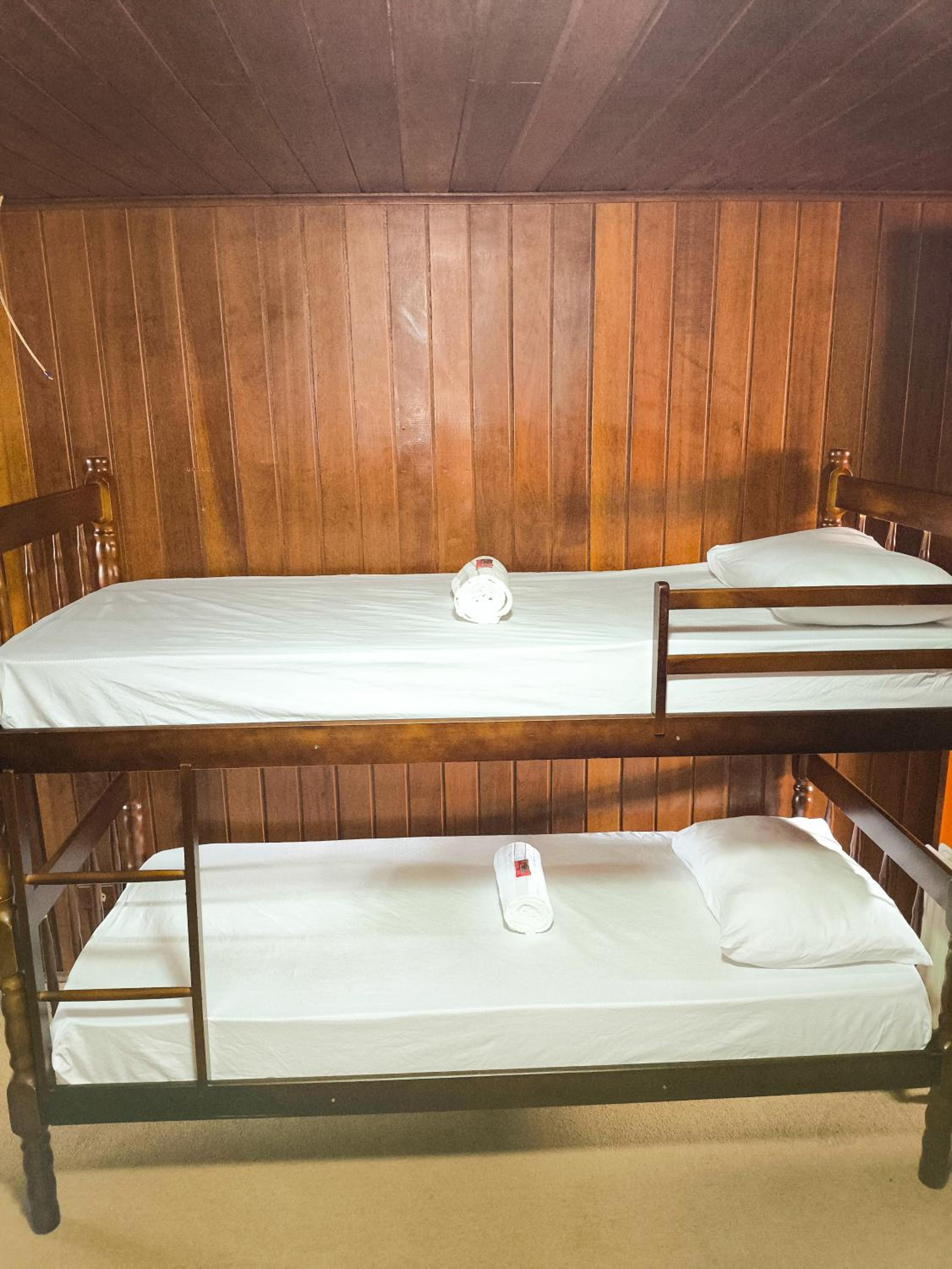 Quartos espaçosos com camas confortáveis e banheiros super limpos.