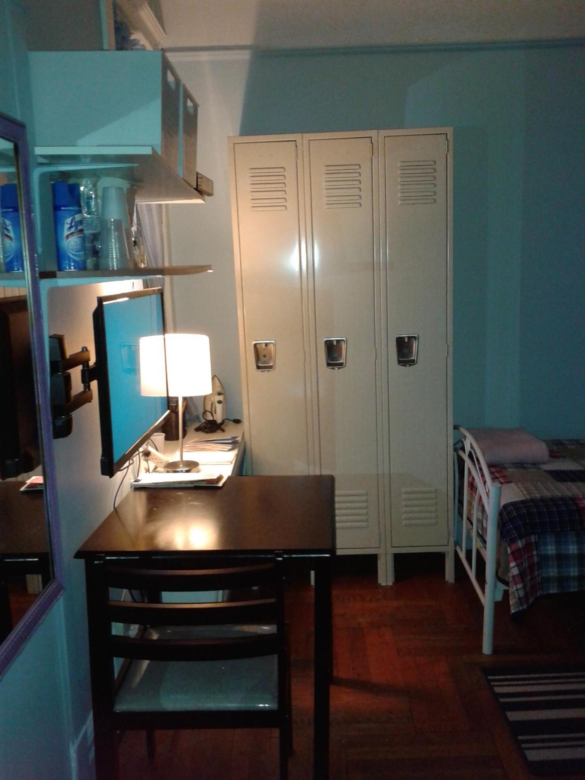 La disponibilidad de productos para el baño, mejor surtido que en mi casa, también accesible con medicamentos de emergencia. Disponibilidad para la cocina y utensilios, una nevera pequeña en la habitación con productos de primera mano para desayunar o merendar, y todo incluido con el precio del hospedaje.Un baño compartido que siempre estuvo disponible.