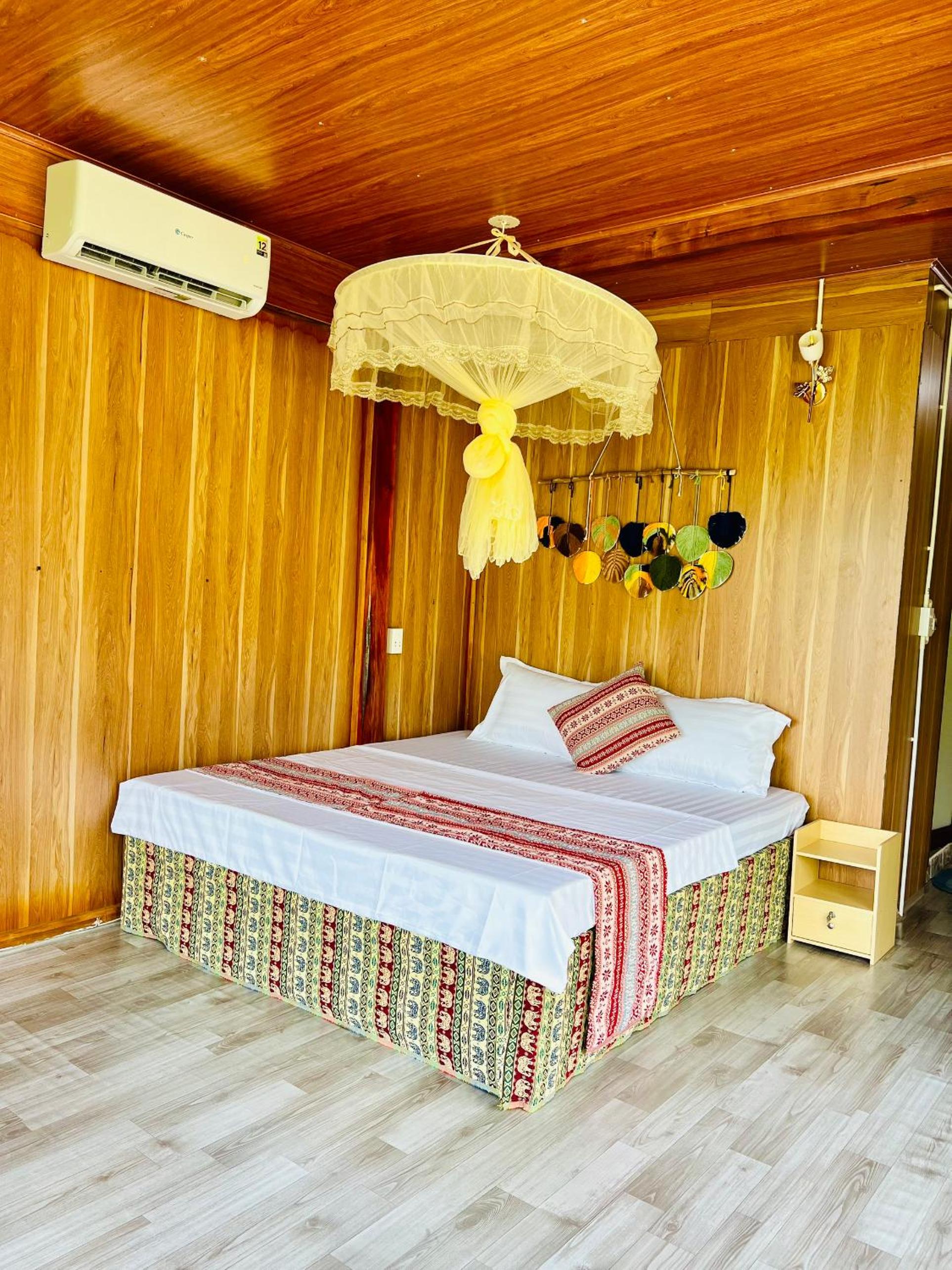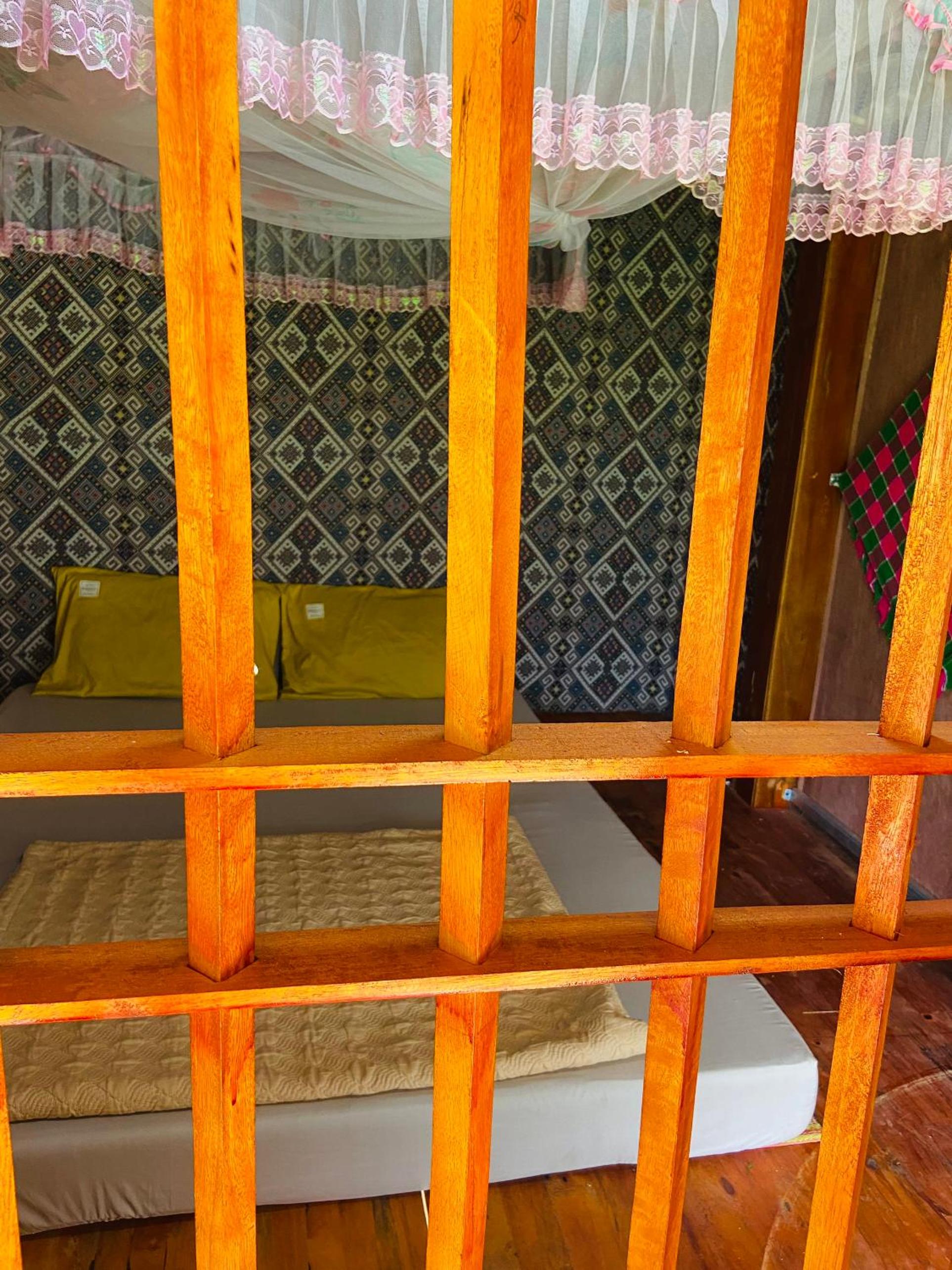 You should be aware that the accommodation here is essentially a wooden/bamboo house on stilts. The rooms are separated by a thin sheet of plywood and there are gaps around the doors and windows. This means there is zero sound proofing, and you hear everything. Every whisper your neighbours make, or what they are listening to in their phones, or the neighbourhood dogs barking etc etc you hear it all. It's not that it's a noisy place, it is on the outskirts of the village, but as I say, you hear everything. Felt a bit like camping.