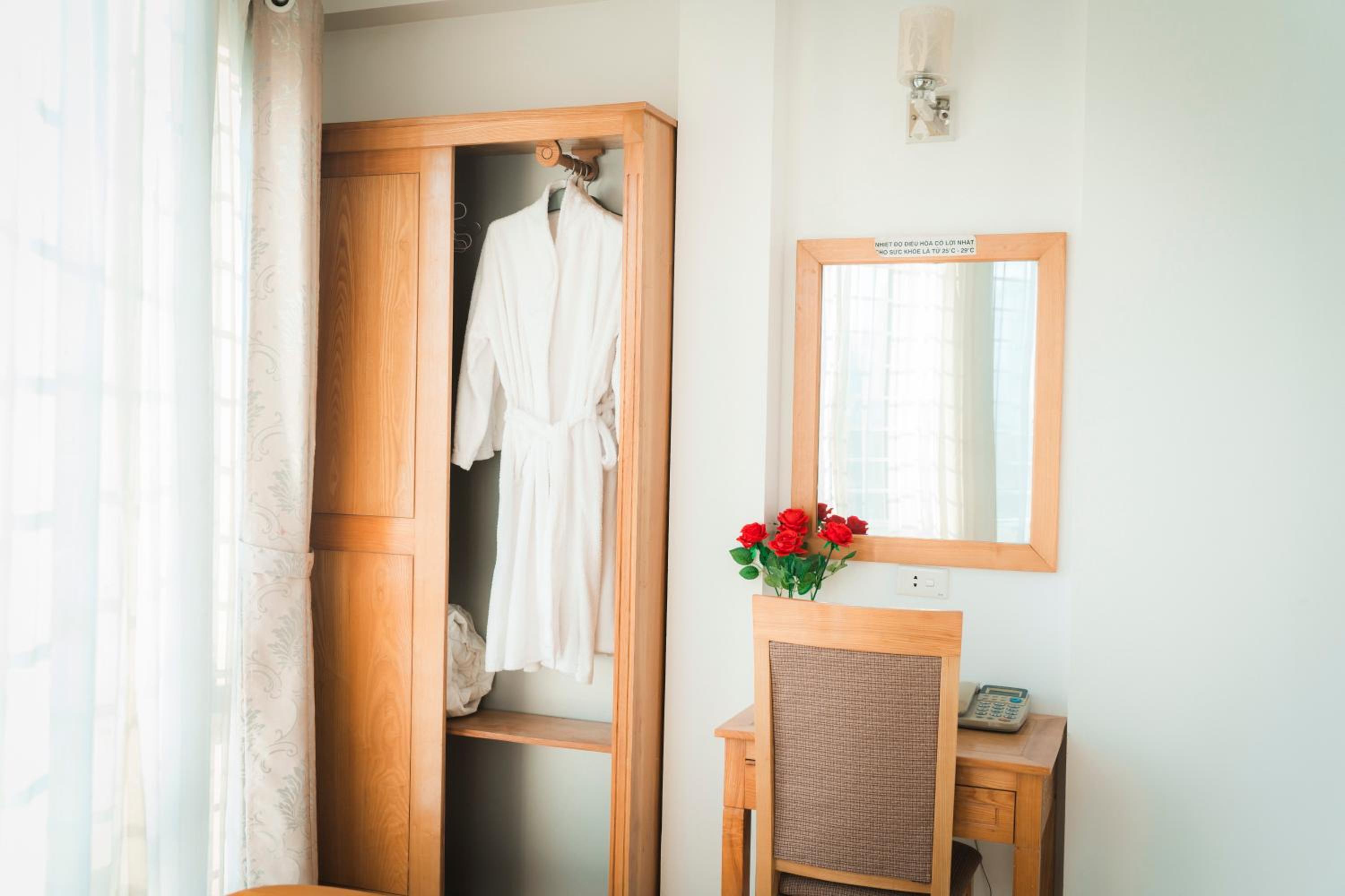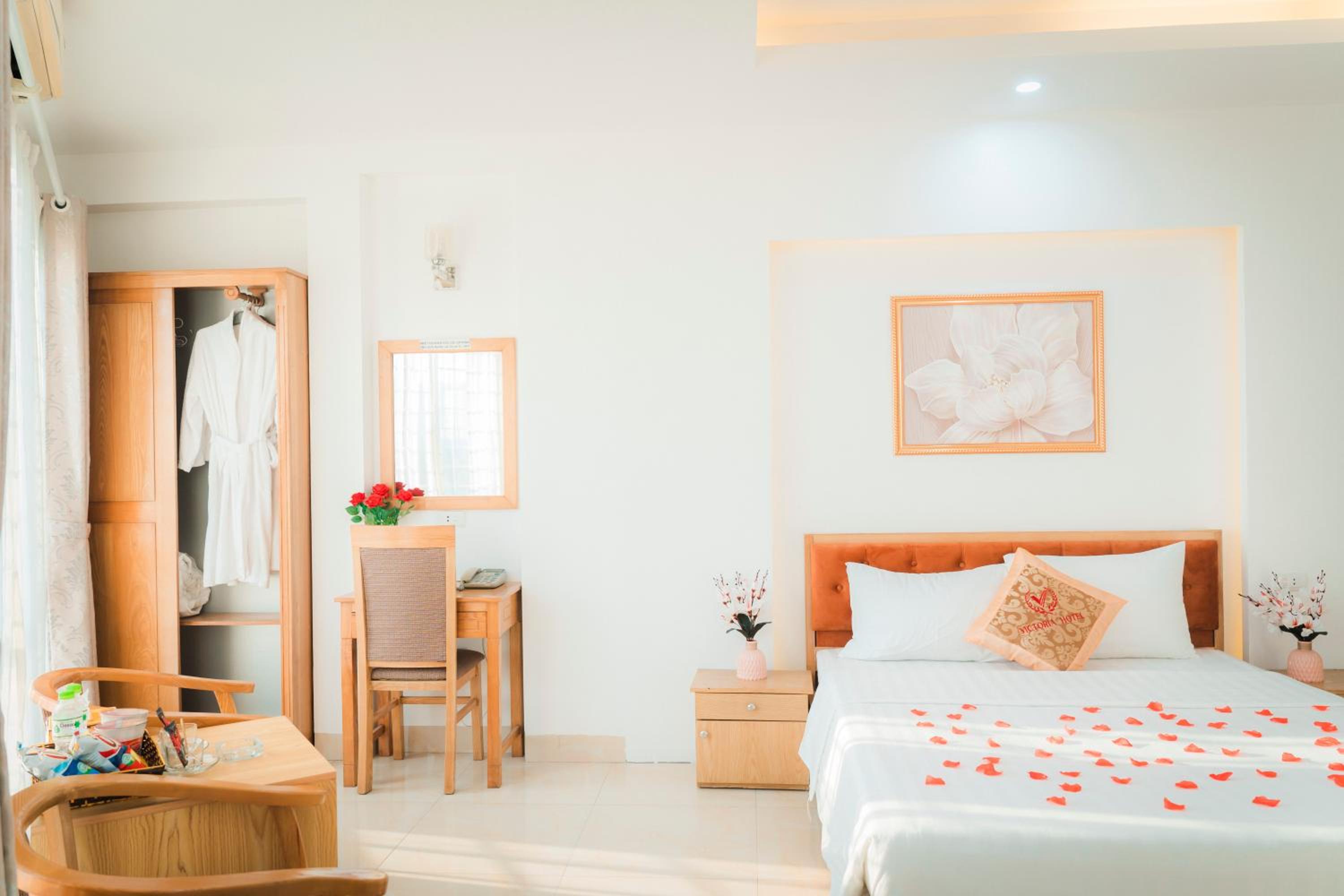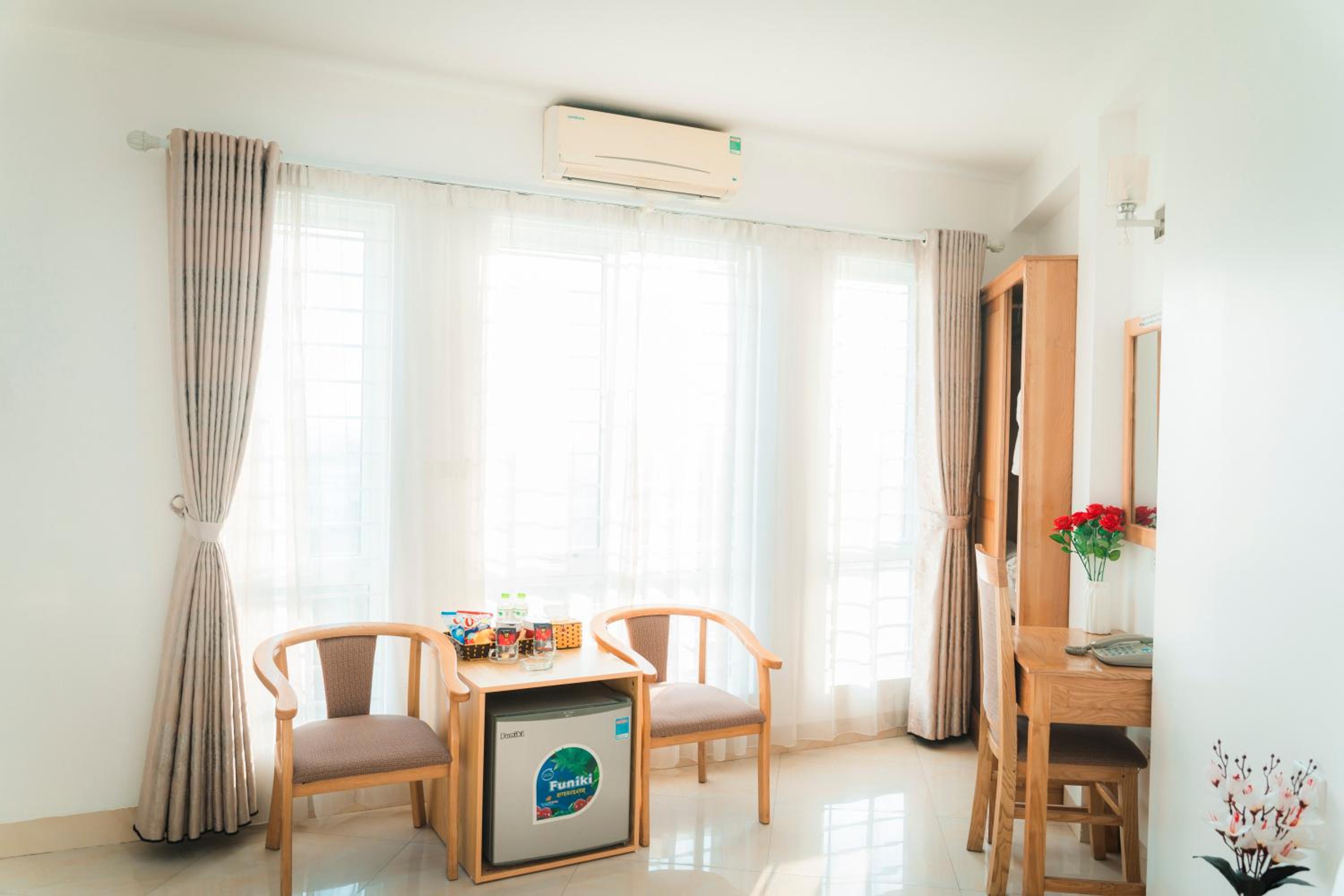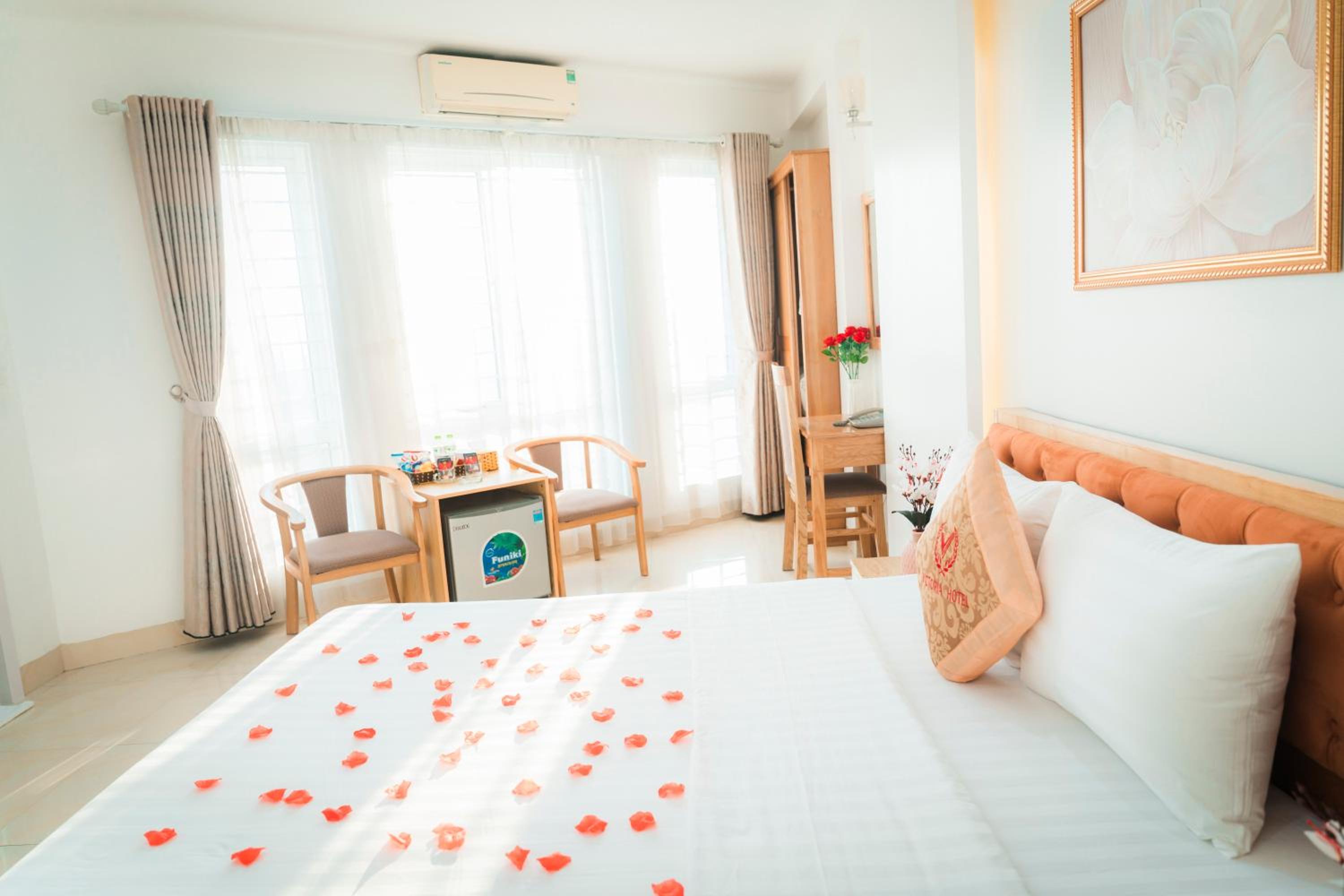 Guests can enjoy air-conditioned rooms equipped with modern amenities like a flat-screen TV, minibar, and a private bathroom, ensuring a comfortable stay at Victoria Hotel Me Tri.
