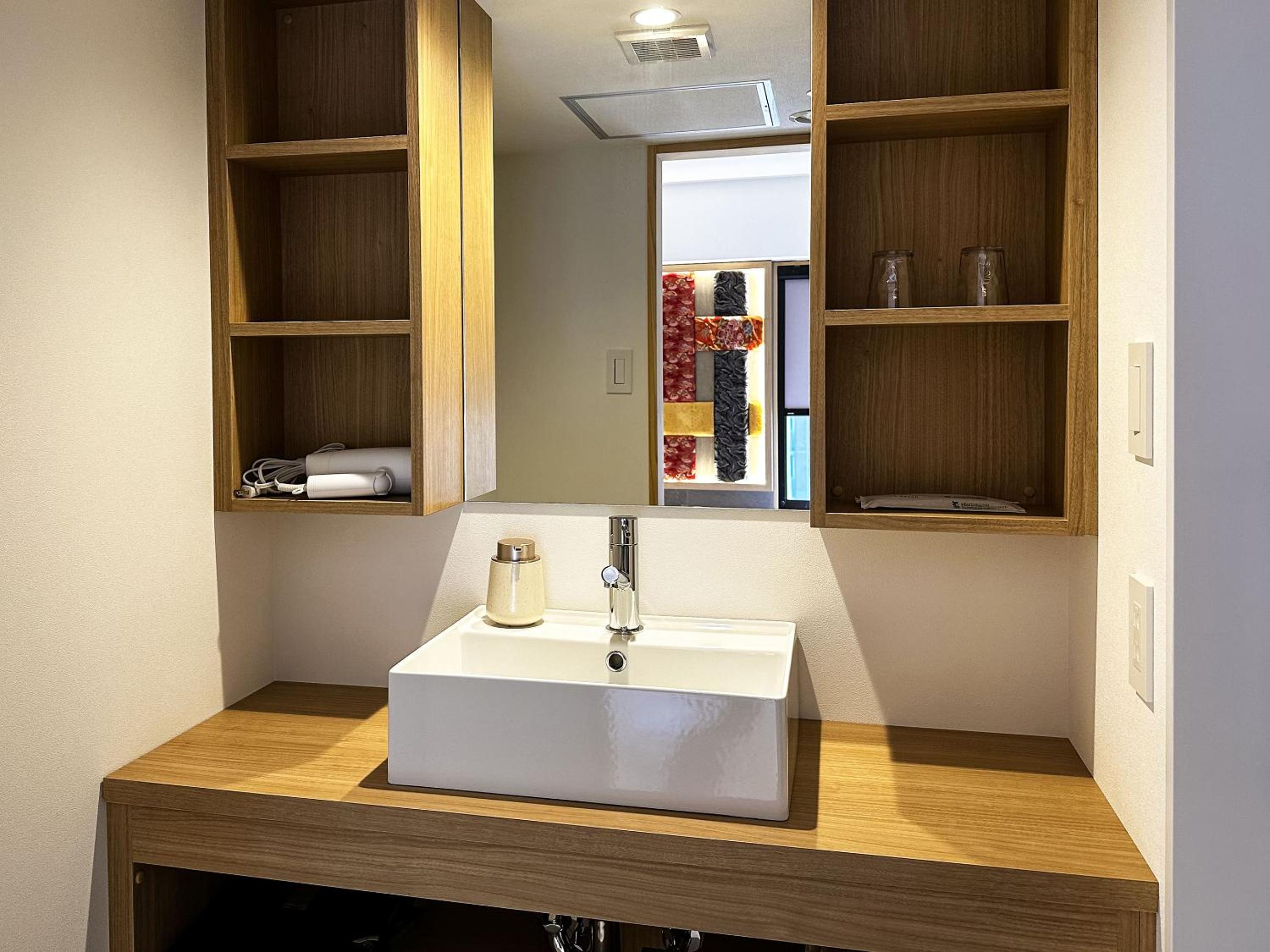 部屋にアメニティを置かず、全てフロント横で自分で取るスタイル