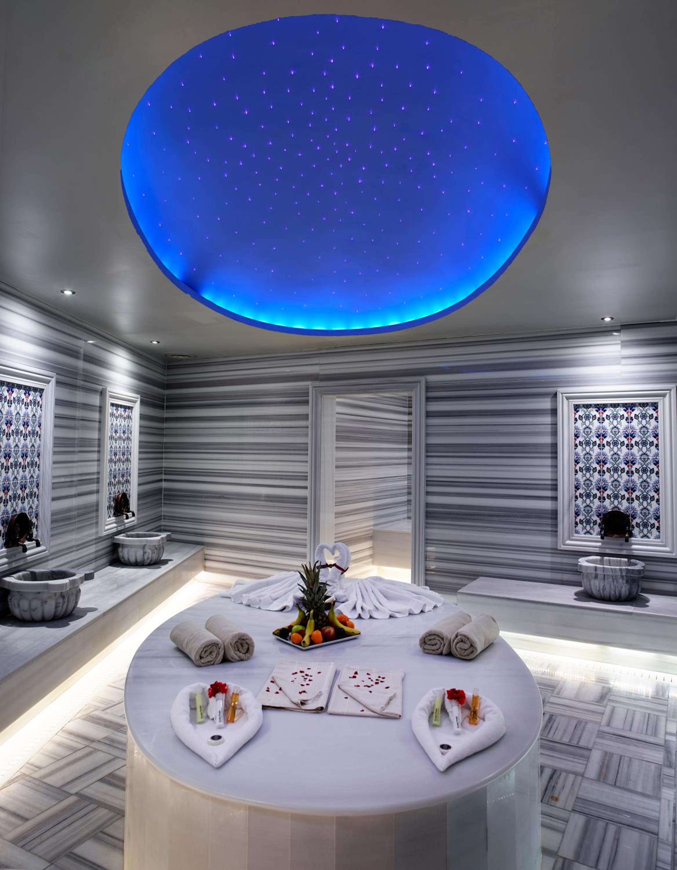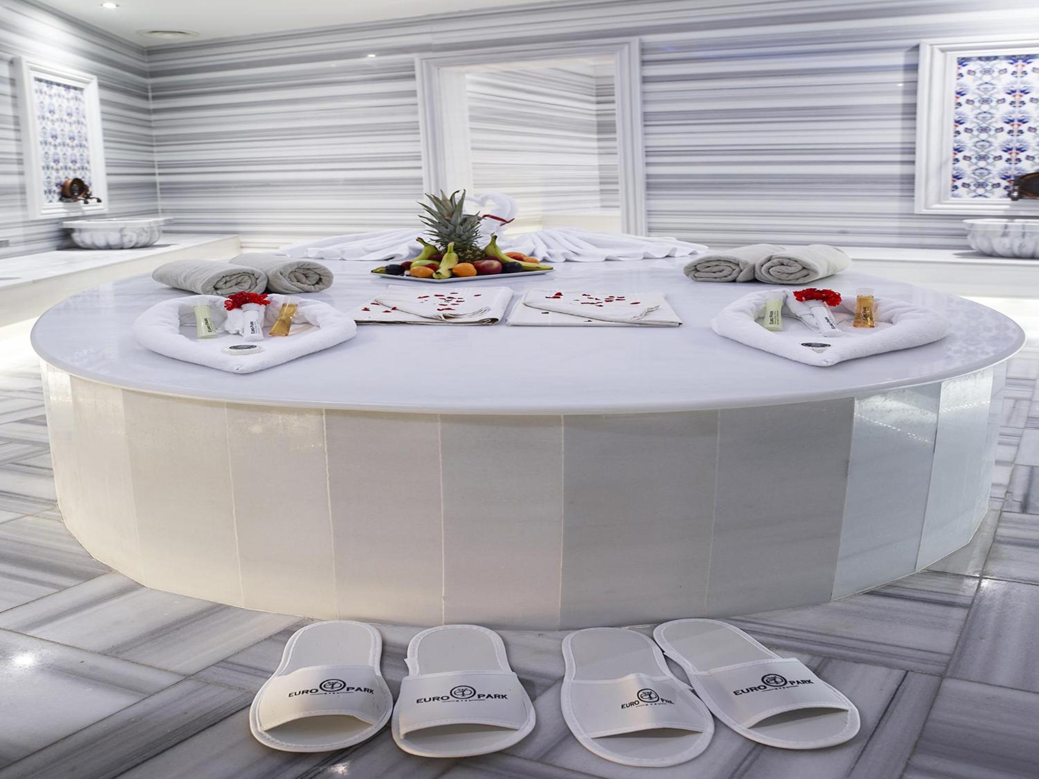 Euro Park Otel offers a range of luxurious amenities including a gym, sauna, massage and spa facilities, and a traditional Turkish bath. Guests can unwind and relax in style during their stay.