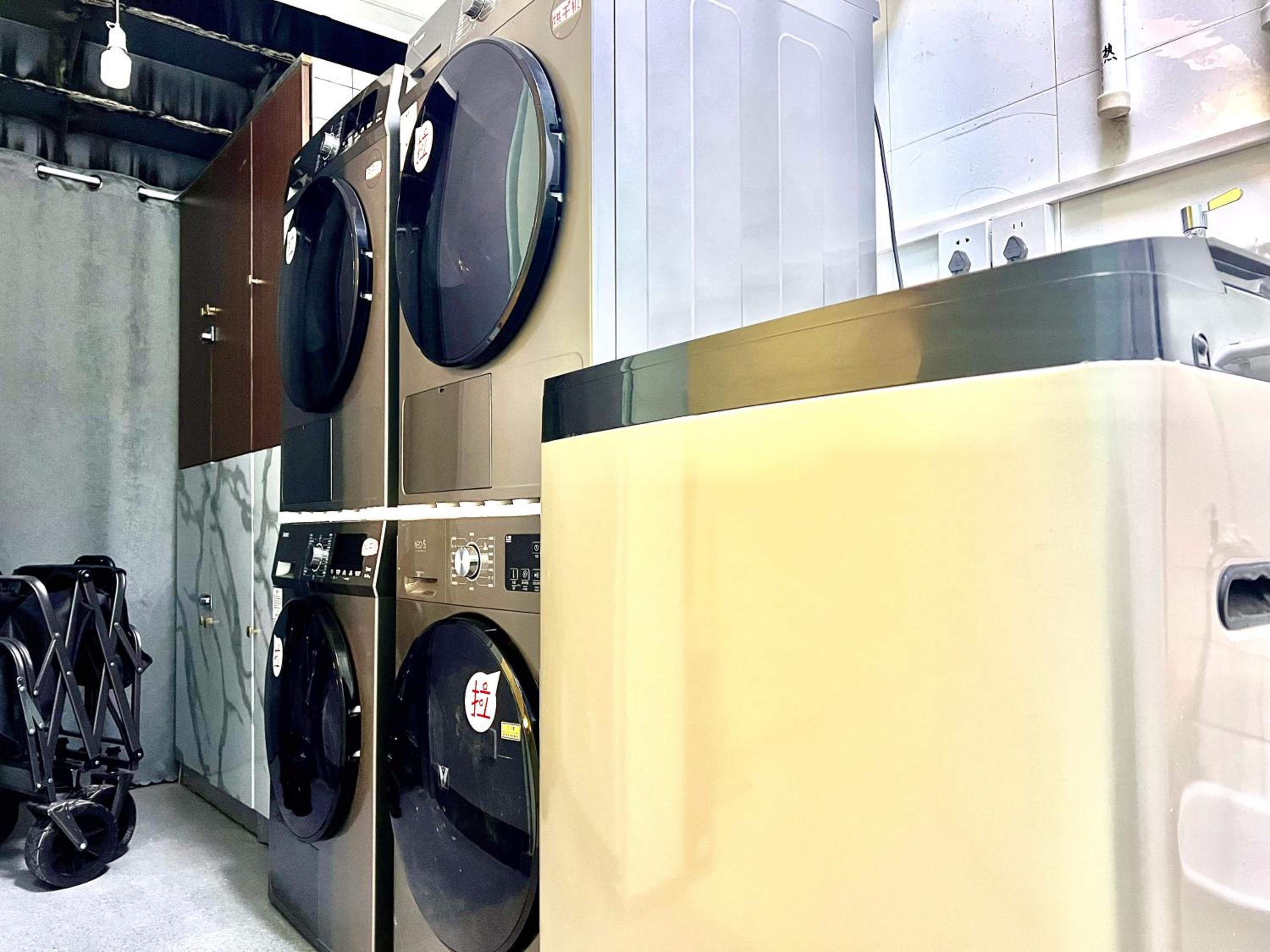 Pratique d'avoir accès au réfrigérateur et four à micro-ondes, pratique de pouvoir faire des lessives.